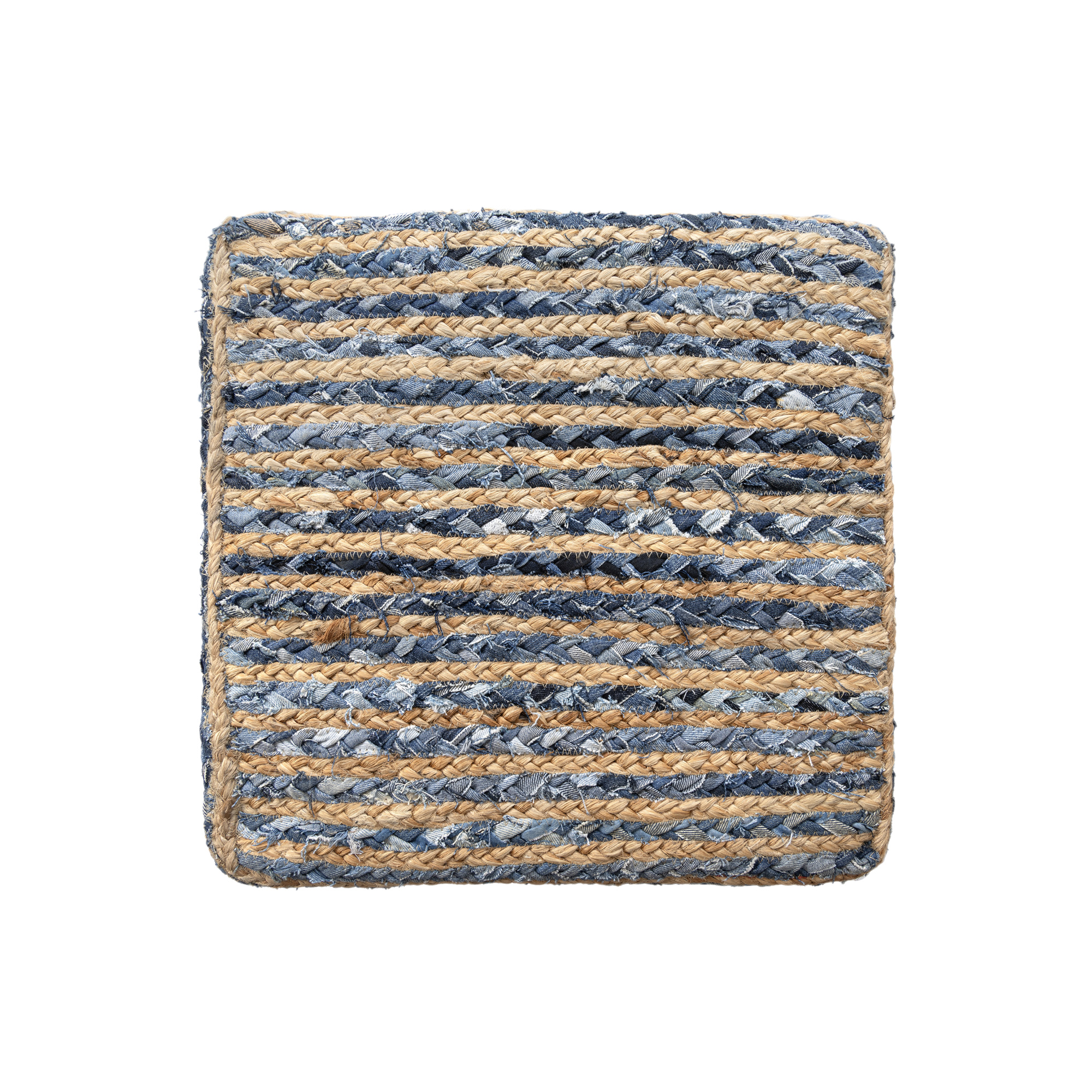 Transform your space with this stylish and functional square ottoman pouf. Hand-braided in India from a durable blend of 60% cotton and 40% jute, it offers both comfort and long-lasting quality. The striped pattern in denim, beige, and blue tones adds rustic charm, perfectly complementing farmhouse or coastal-inspired interiors. Filled with EPS balls, it provides a soft and supportive feel, making it ideal as extra seating, an ottoman, or a decorative accent in any indoor space.
