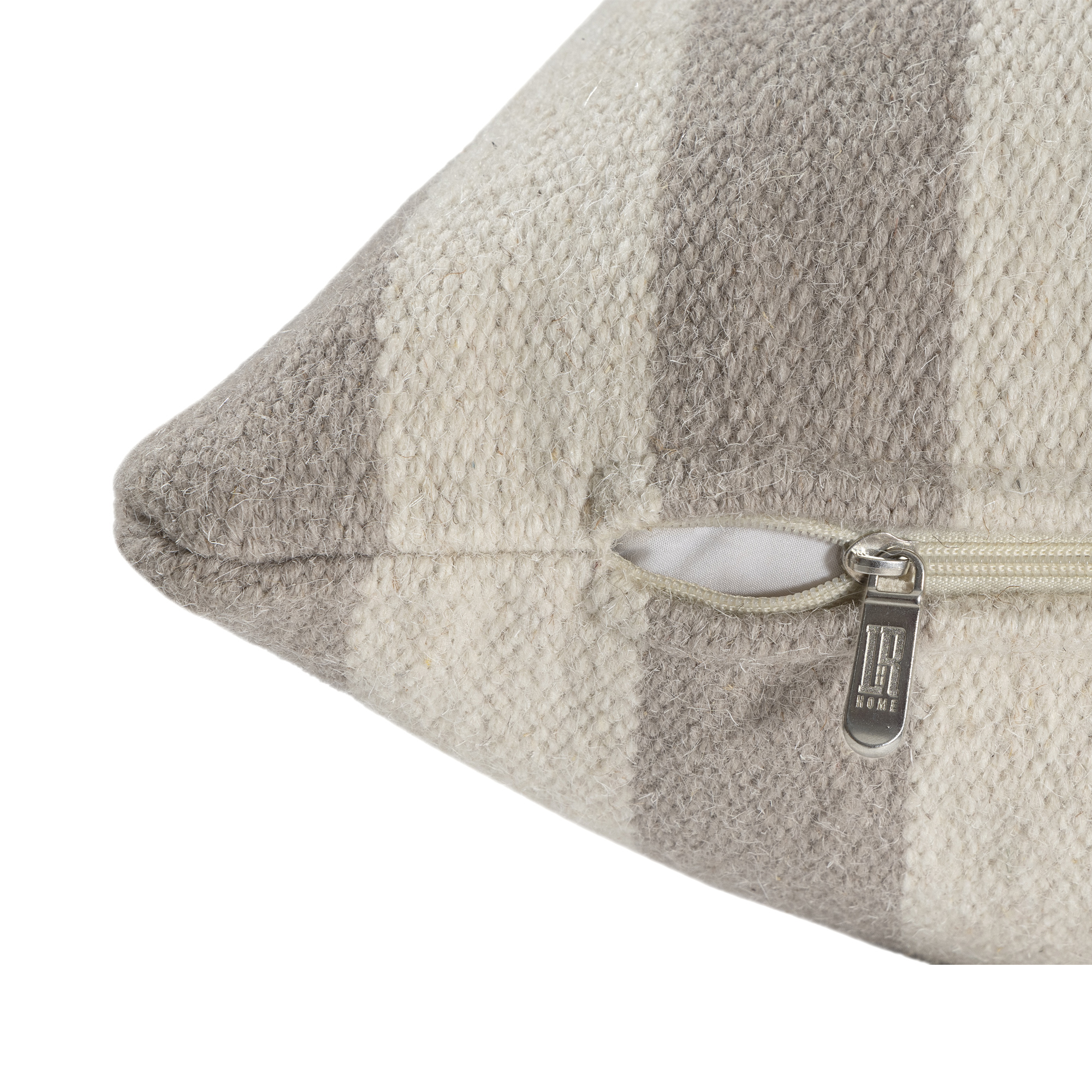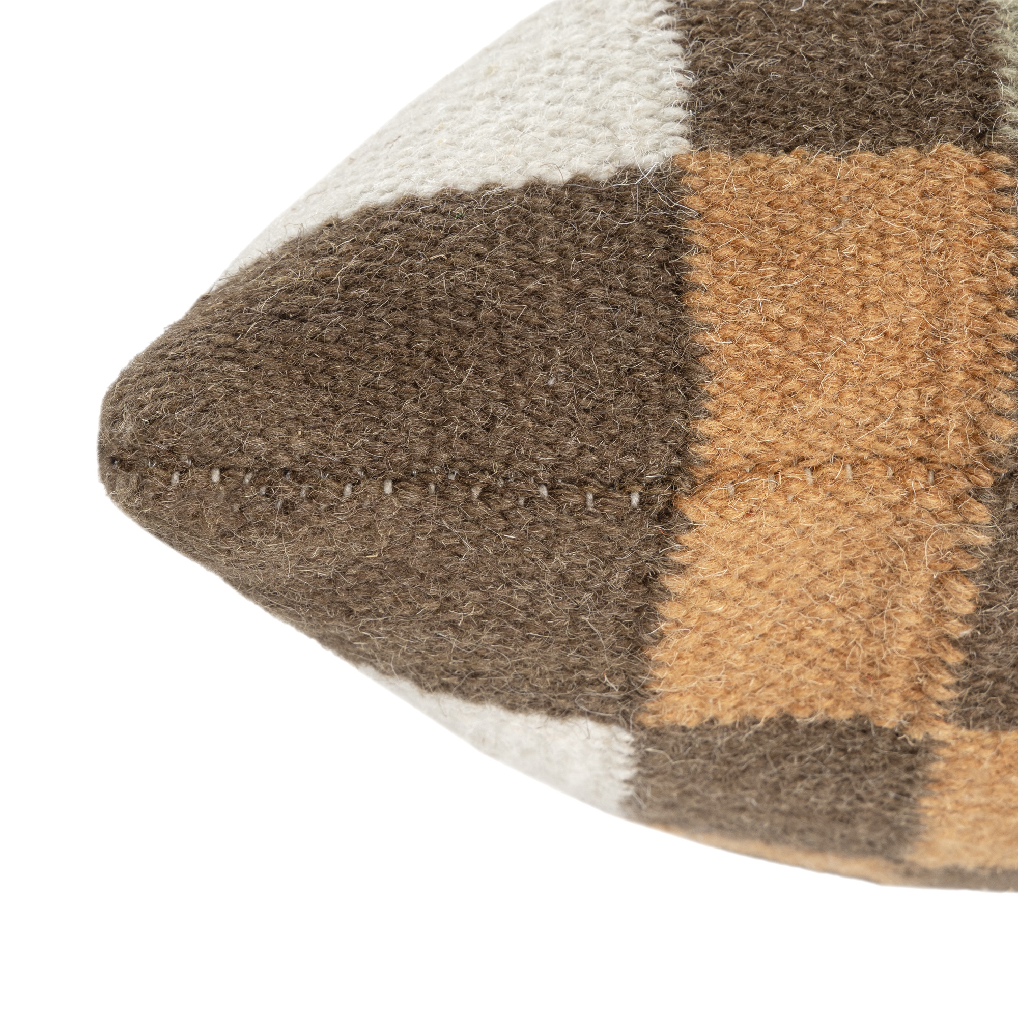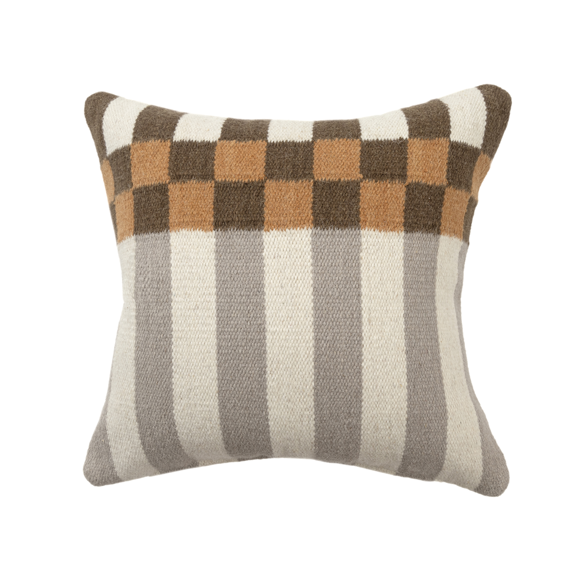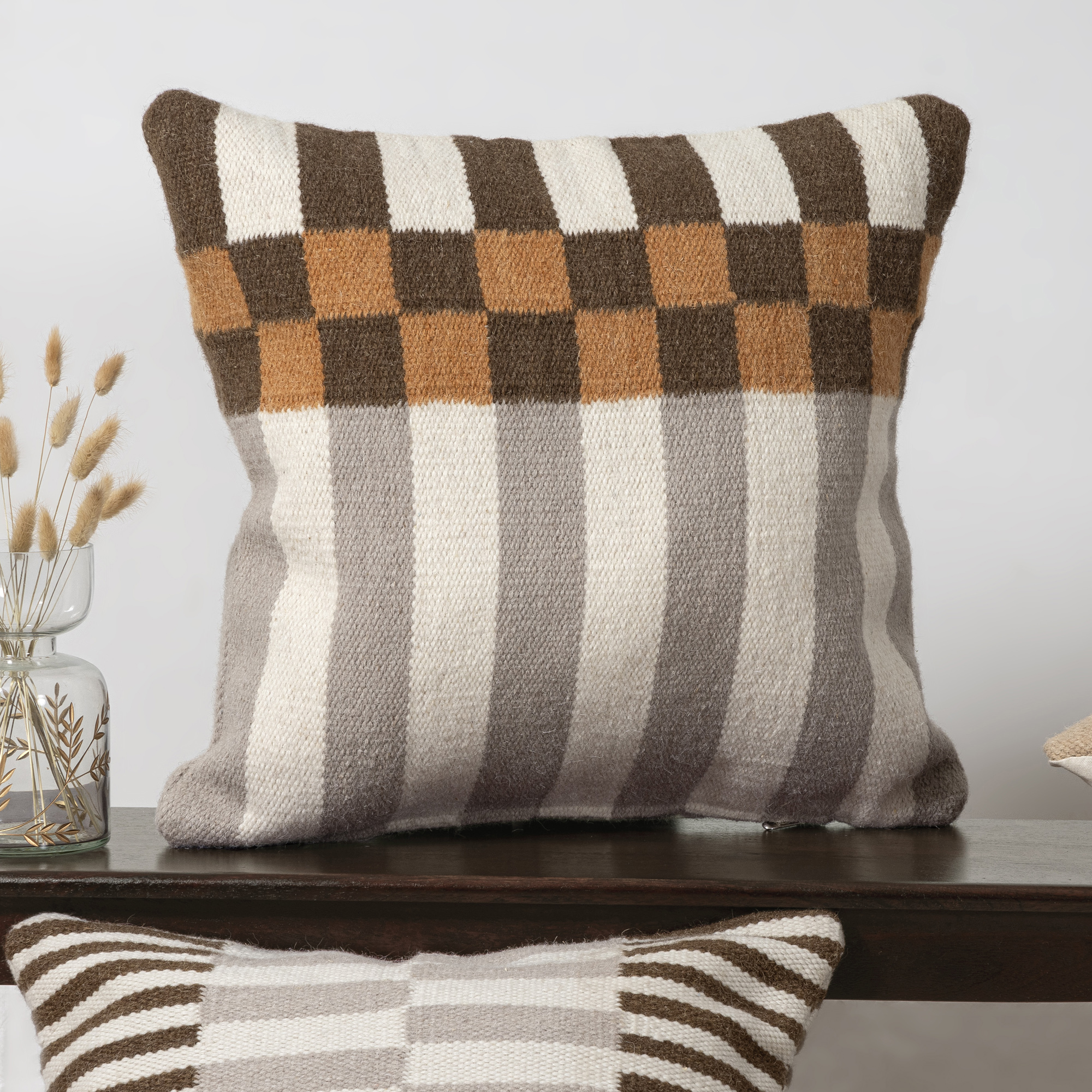 Transform your space with this hand-woven, reversible throw pillow. Crafted by hand, this square pillow features a geometric stripe design in earthy tones of brown, orange, gray, and beige. Made from a resilient blend of wool and cotton, it combines sustainability with long-lasting quality. The natural durability of these materials makes it ideal for all ages kids, teens, and adultsand suits a variety of decor styles, from cabin/lodge to urban chic. A hidden zipper closure allows for easy removal of the included polyester insert, which provides maximum comfort and maintains the pillow’s shape. Spot clean to maintain its appearance for years to come.
