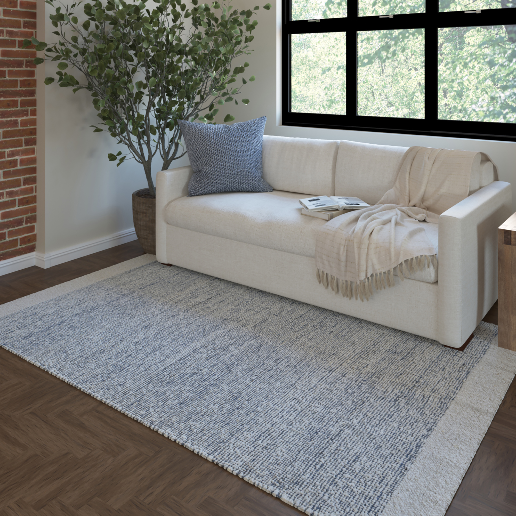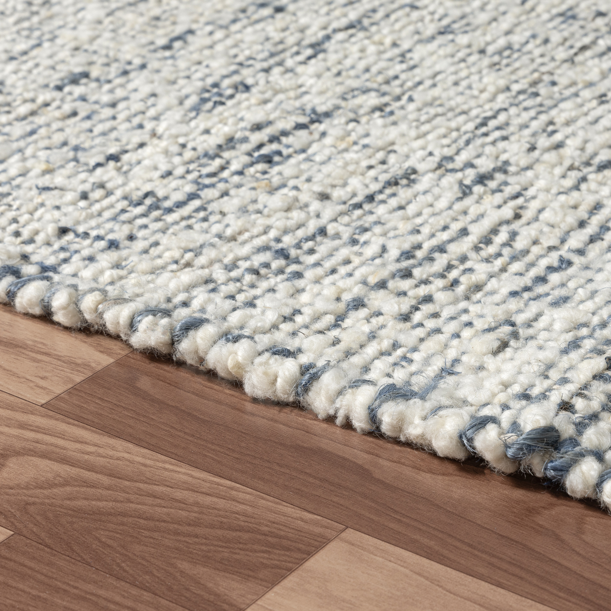 Elevate your space with the Modern Striped hand-woven Wool Blend Indoor Area Rug. Handmade in India, this farmhouse-style rug combines 50% wool, 40% jute, and 10% cotton for a perfect balance of durability and style. The striped and bordered design adds a contemporary touch to any room. Featuring a self-backed hand-woven construction, it stays securely in place. Easy to maintain, just spot clean when necessary. A versatile and timeless choice for enhancing your indoor spaces with quality craftsmanship.