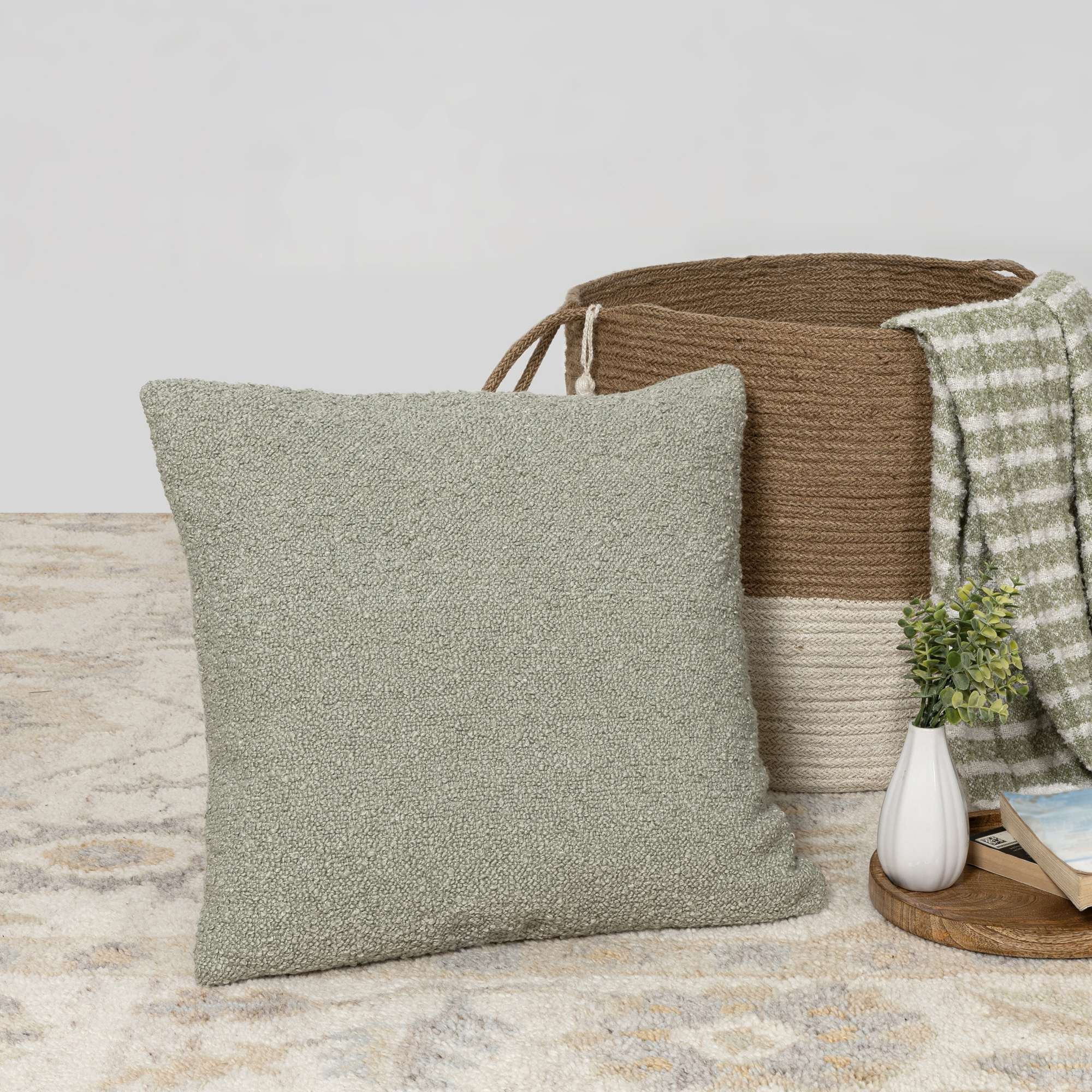 Transform your space with this chic hand-woven throw pillow cover, designed to elevate your decor. Crafted in India using 100% polyester with boucle texture on the front and solid green on the reverse, this pillow cover is a perfect blend of comfort and durability. Its modern and contemporary design, inspired by mid-century modern aesthetics, adds a stylish touch to any room. Whether placed on a couch, chair, or bed, its vibrant green hue complements a wide range of interior styles, making it an ideal choice for any modern or transitional space. Hidden zipper closure for easy insert placement (insert sold separately).