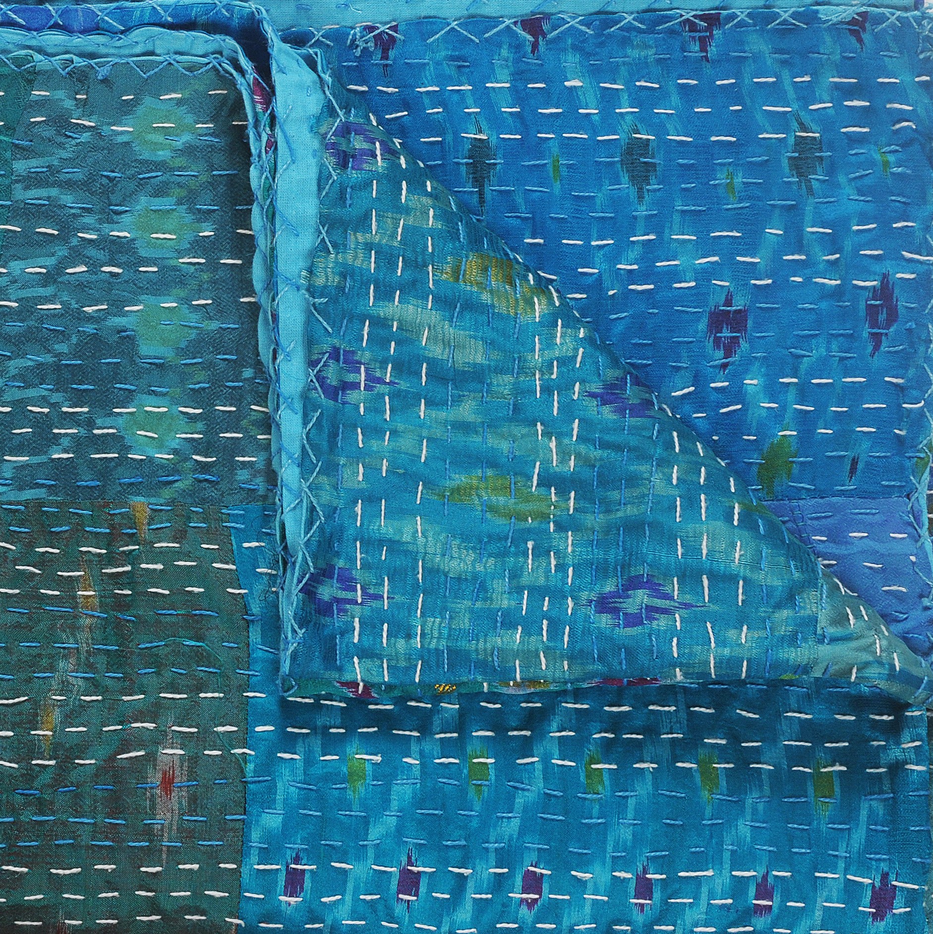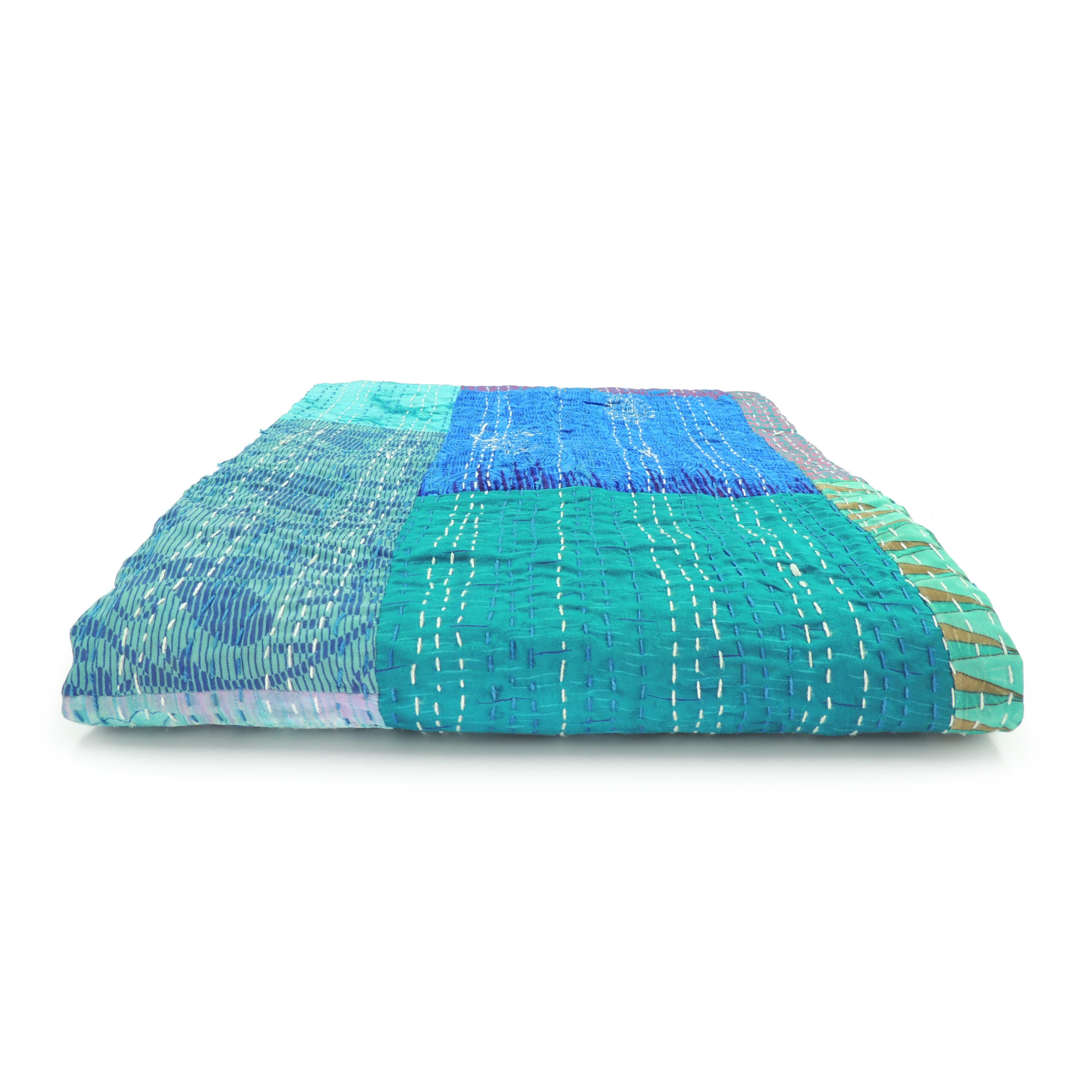 This pretty throw blanket is handstitched in India using 50% silk and 50% cotton, and features vibrant tones and unique patchwork designs. Each blanket is made by skilled artisans who take great care in creating a beautiful and functional piece of home decor. Soft and cozy, this throw is perfect for snuggling up on the couch or adding a pop of color to any room. Made from high-quality and sustainable material, it is also easy to care for and maintain. This stunning blanket is a must-have for anyone who appreciates artisanal craftsmanship.