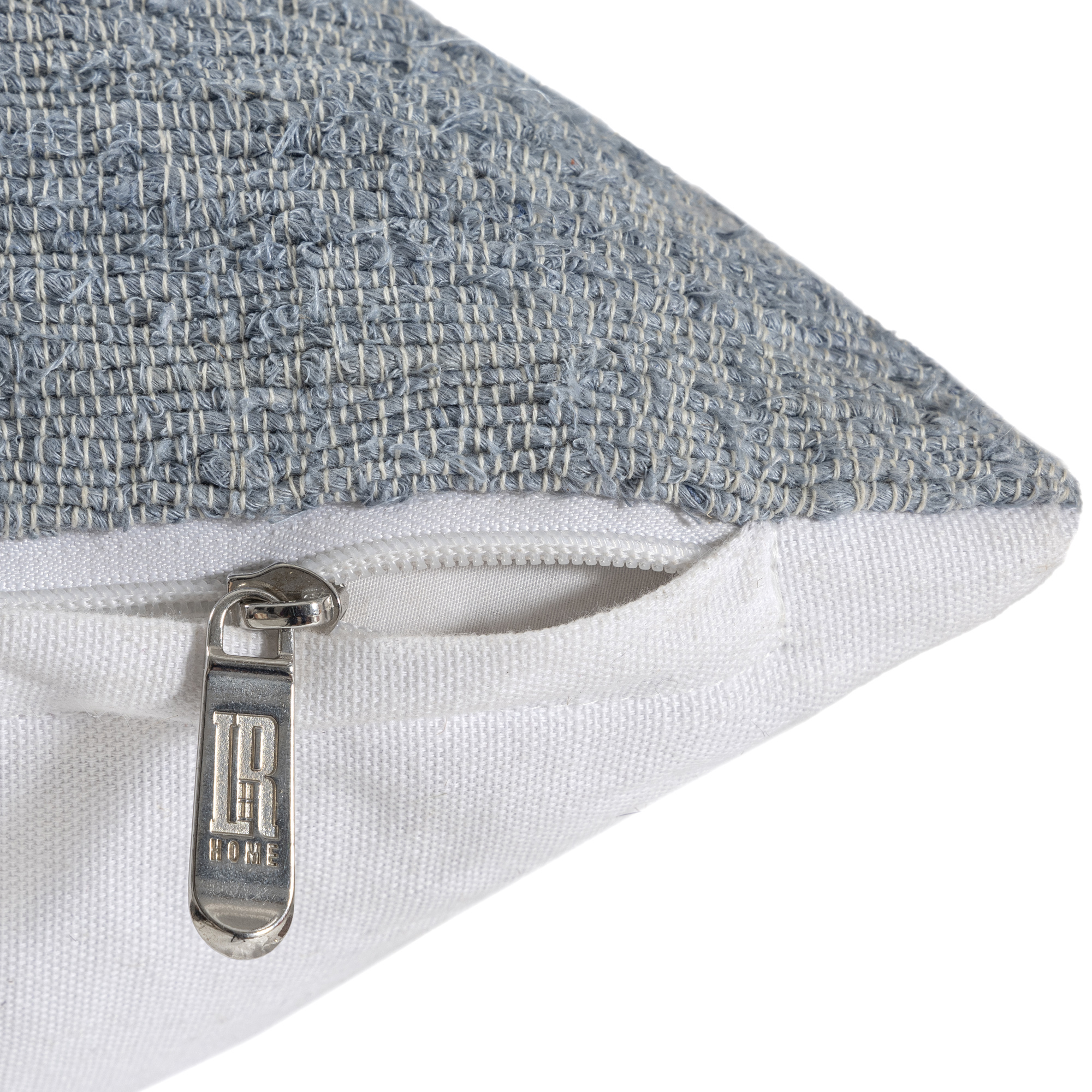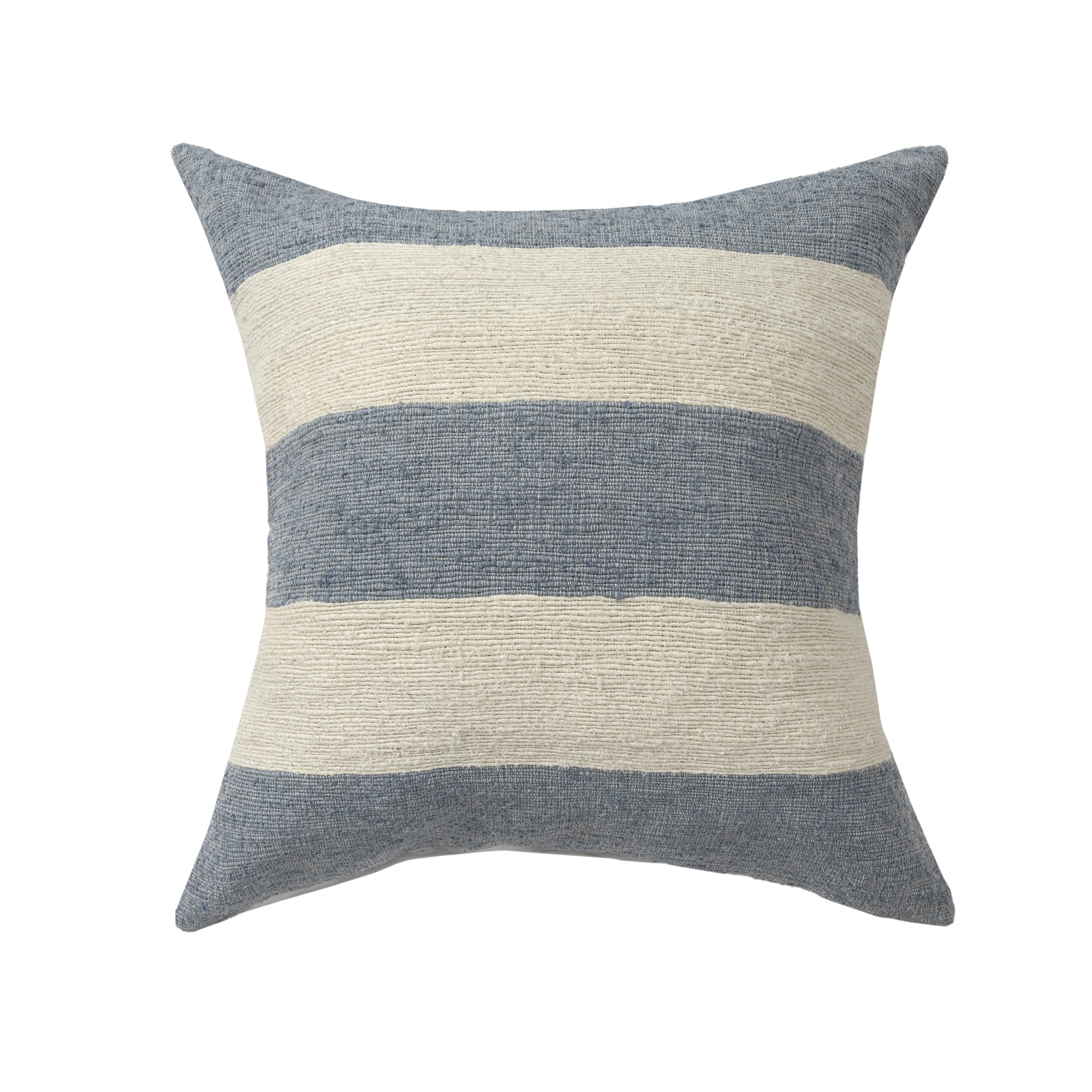 Add warmth and texture to your space with our hand-woven linen blend pillow cover in blue and ivory. Featuring bold blue and beige stripes on the front and solid white on the reverse, this artisanal cover is crafted in India from a soft, durable blend of 90% linen and 10% cotton. Its hidden zipper closure allows for easy insert placement (insert not included) and seamless style. Perfect for transitional, farmhouse, and coastal decor.