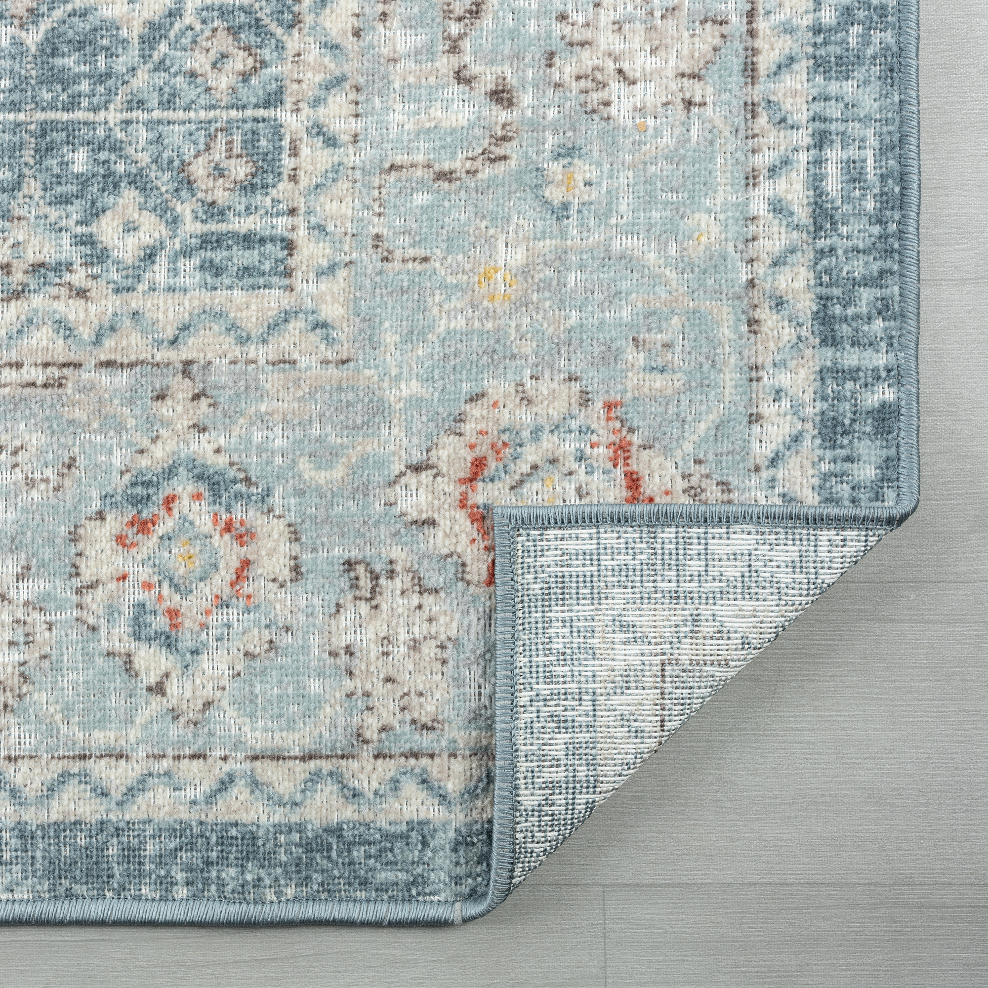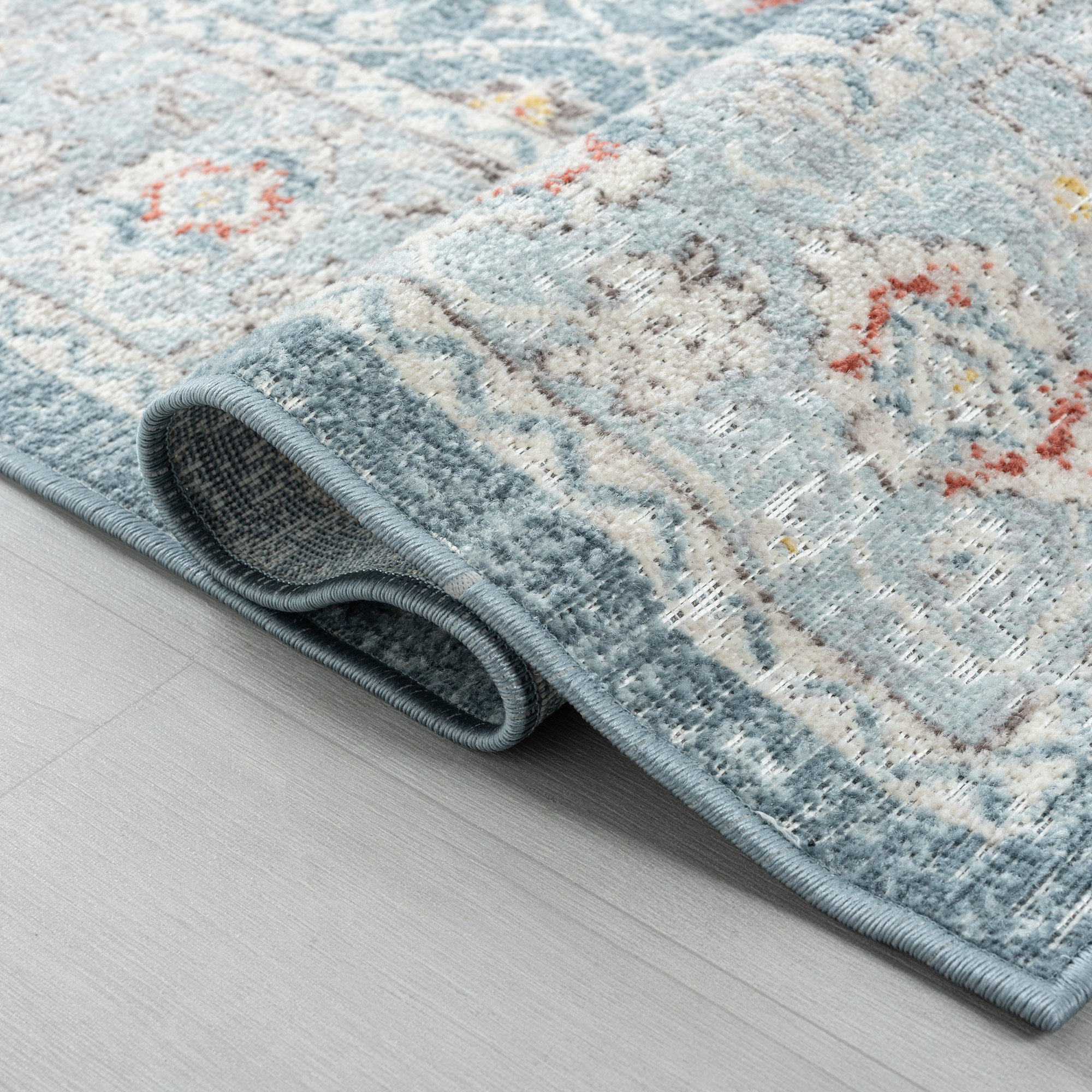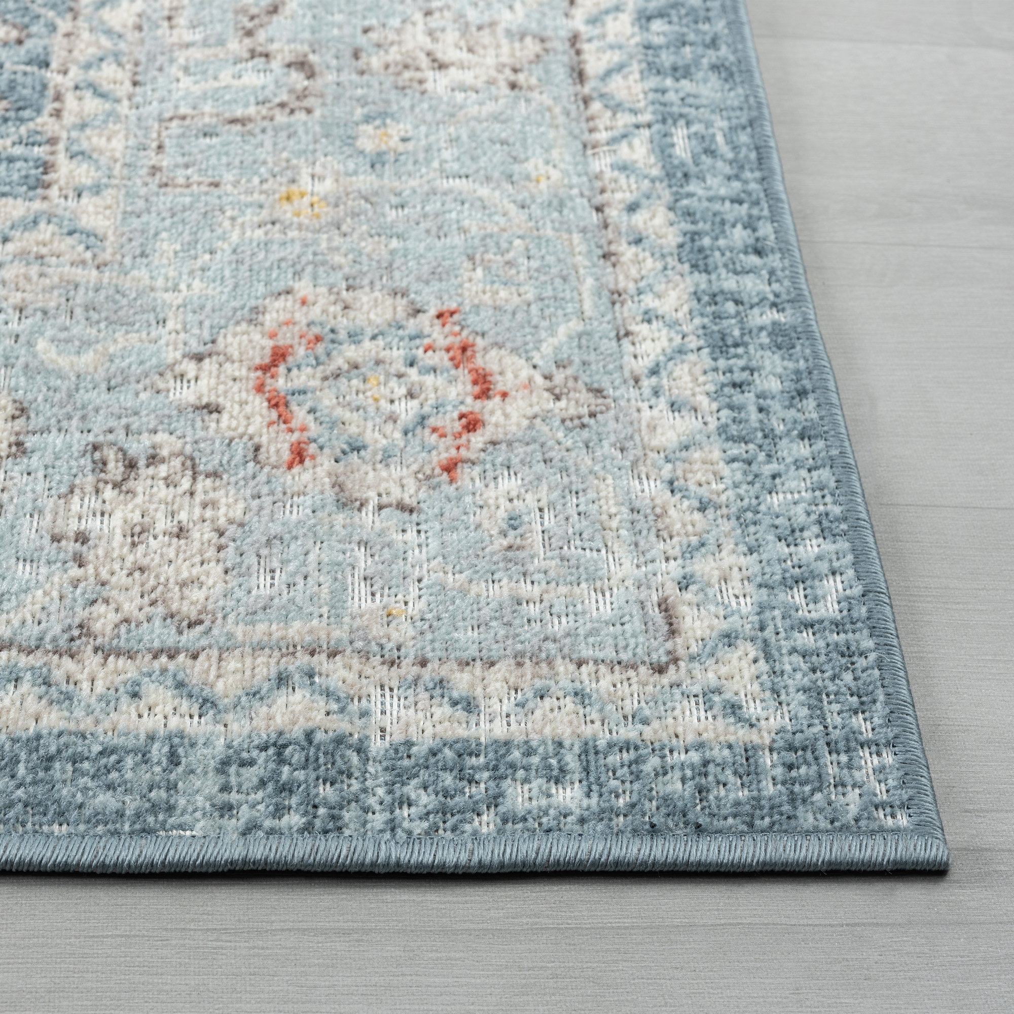 Transform your space with a perfect balance of durability and style with this versatile indoor/outdoor area rug. A traditional floral design with delicate distressing graces this piece from edge to edge in shades of blue and gray creating an eye-catching foundation for patios, decks, sunrooms, living rooms, bedrooms, and any area indoors or out. Each rug is power-loomed using traditional techniques out of polypropylene fibers, which allow you to enjoy high-end design without sacrificing comfort or durability. Perfect for a wide range of decor styles and ages from adult to kids, this beautiful rug will do well in any area of your home. The performance materials and construction make this rug fade, stain, and moisture resistant – perfect for busy homes with children and pet friendly.