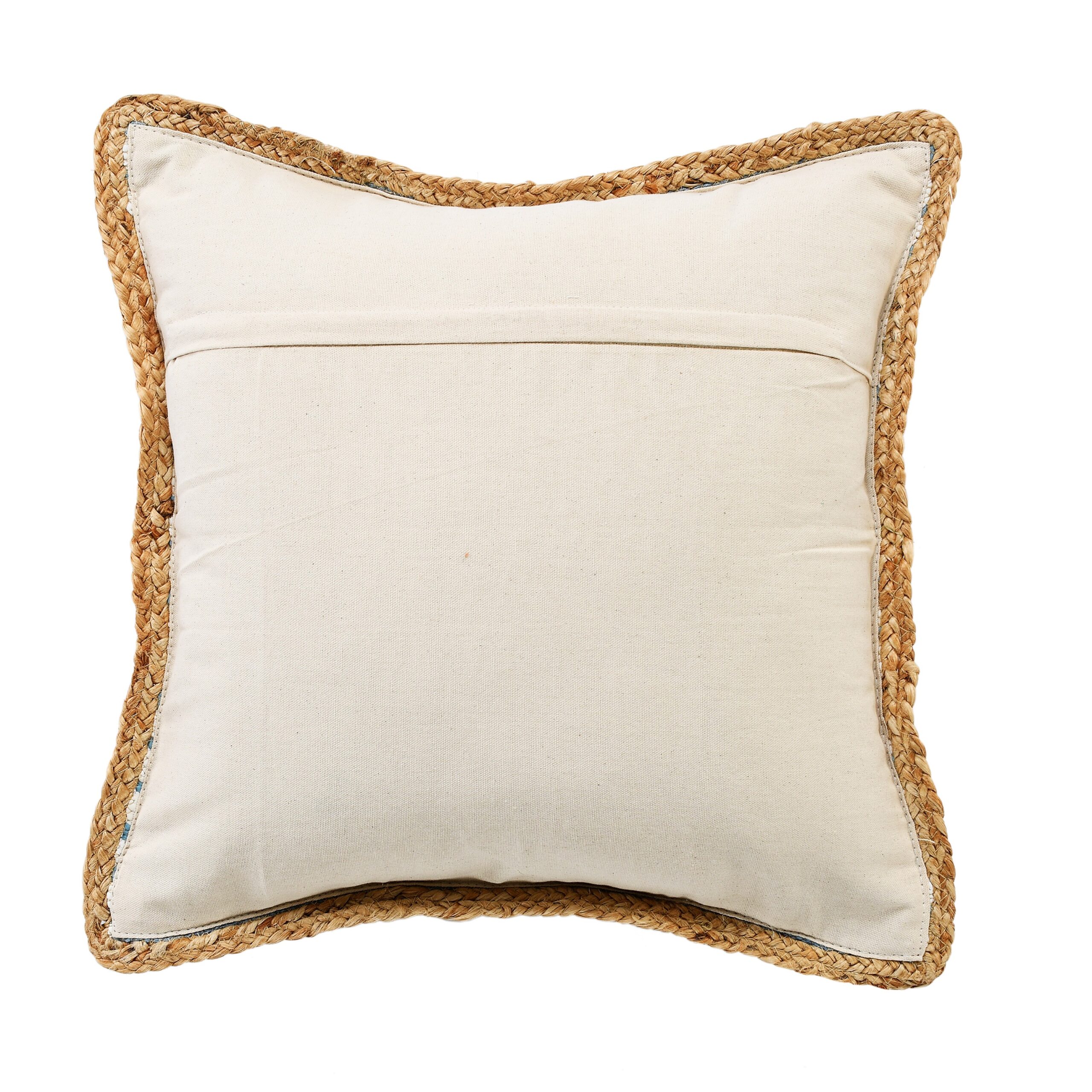 Designed to stand alone or layer with other accents, this throw pillow cover brings a new dimension of style to your space. This versatile accent merges well with multiple home decor styles from boho to modern to coastal to country chic. The natural jute trim border and classic striped geometric cotton center combine to be a textured treasure with a pop of color. Crafted with care in India, each throw pillow cover is unique with its very own individuality.