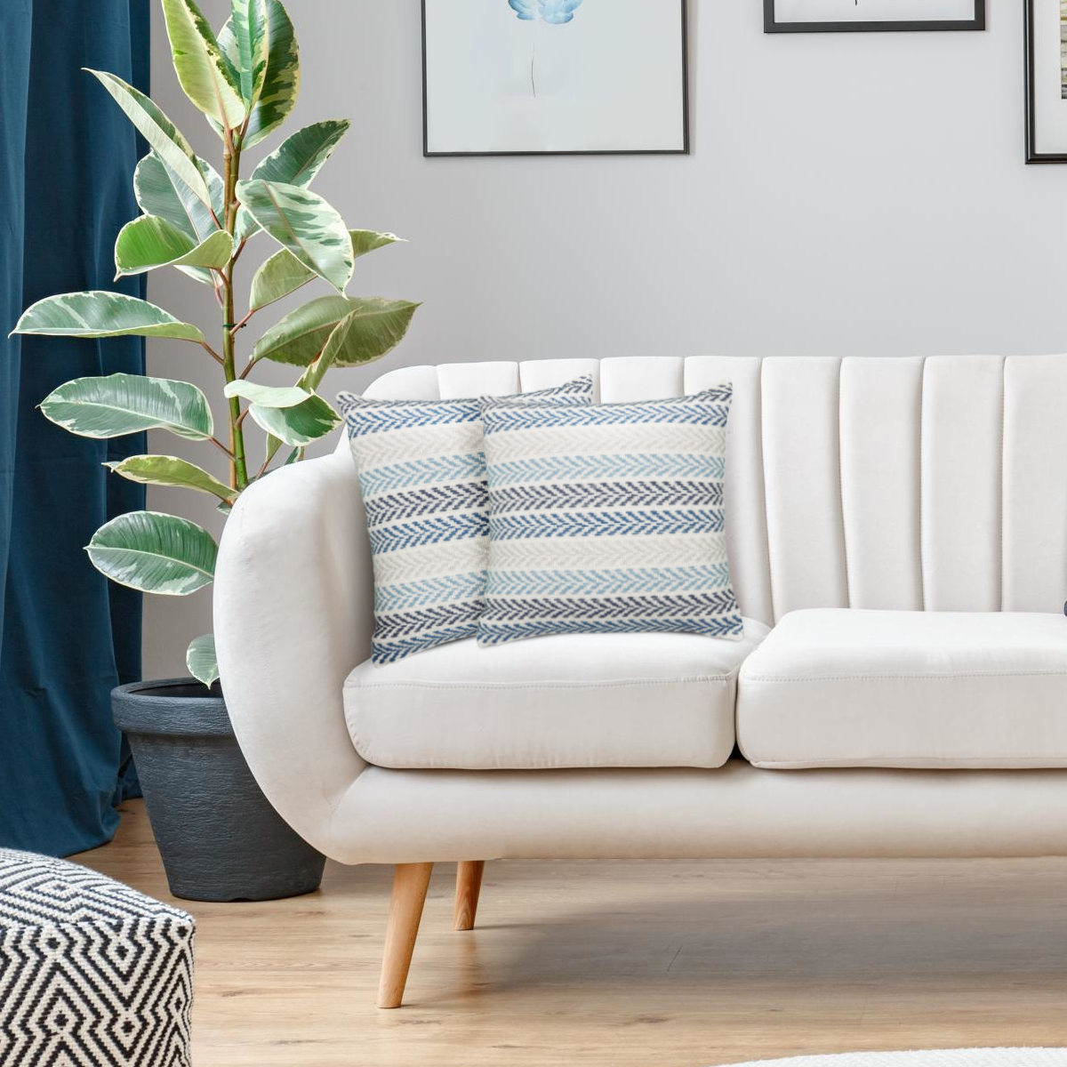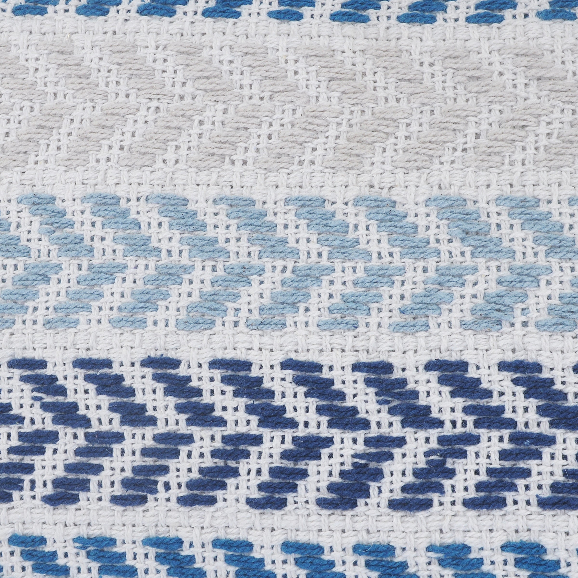 This handmade, cotton pillow cover features a woven chevron stripe design in shades of white, blue, and beige. The natural durability of the cotton construction makes this pillow perfect for a wide range of decor styles and ages including adult, teen, tween, and kids. The zipper closure allows for insert placement (inserts not included). Naturally durable, this pillow cover will maintain its appearance for years to come.