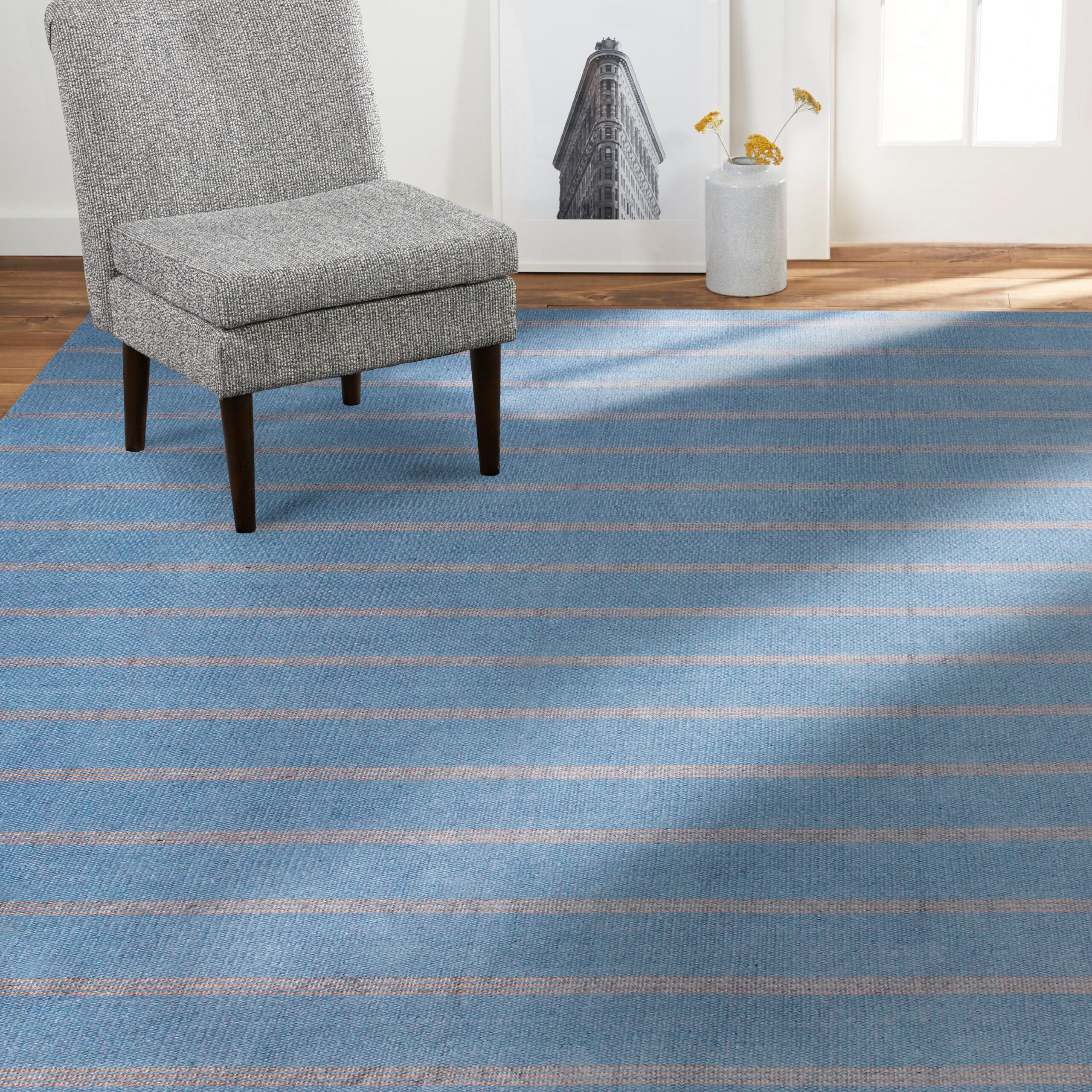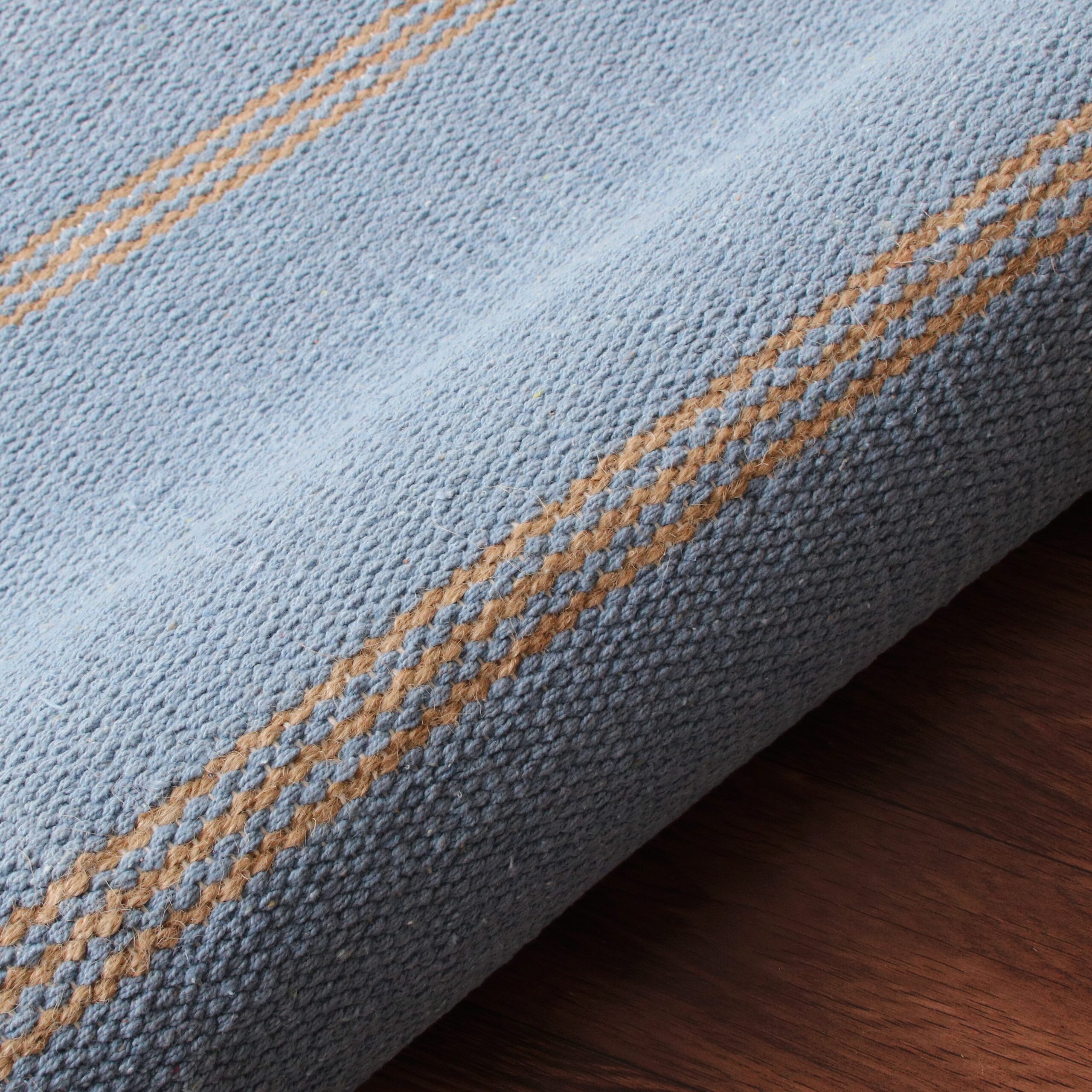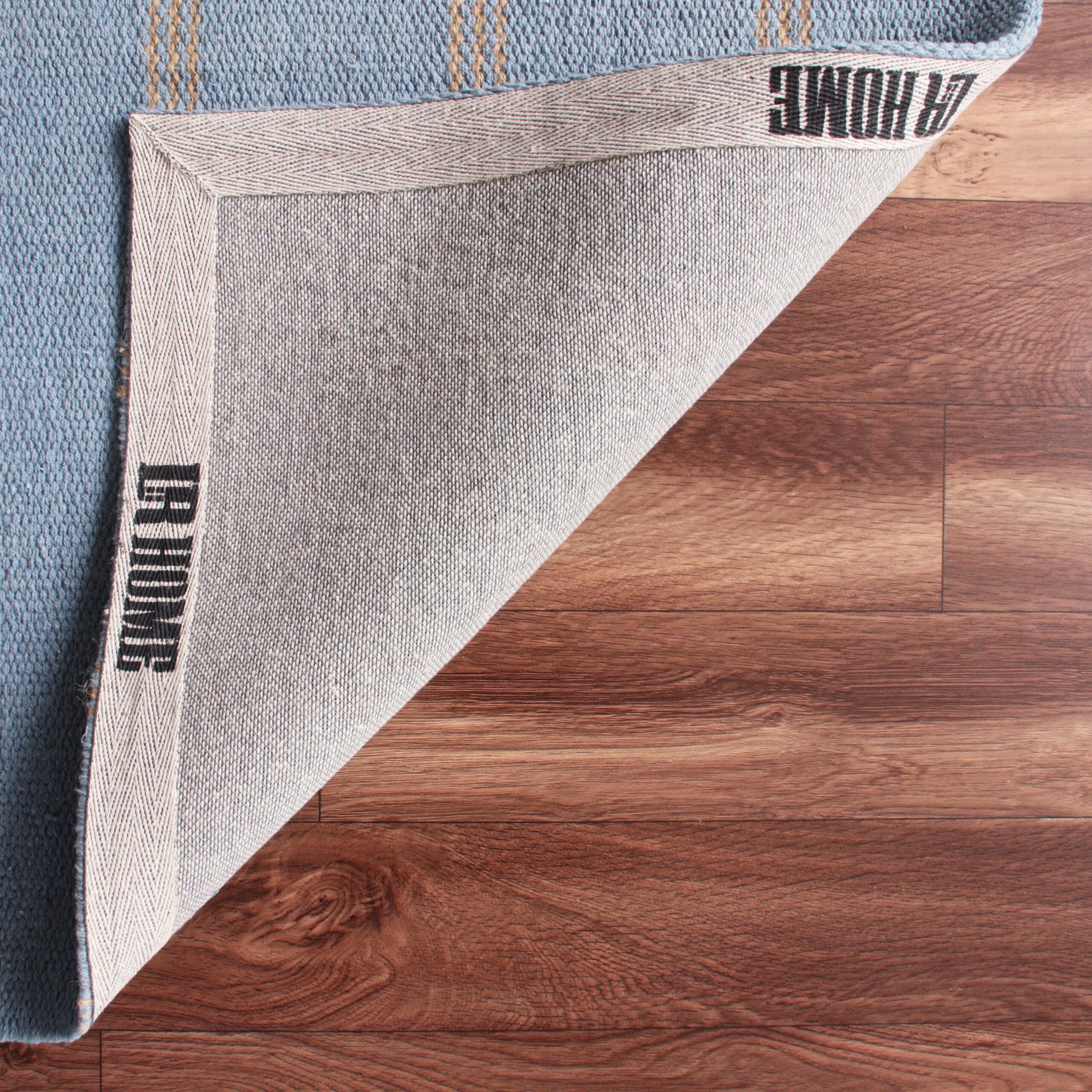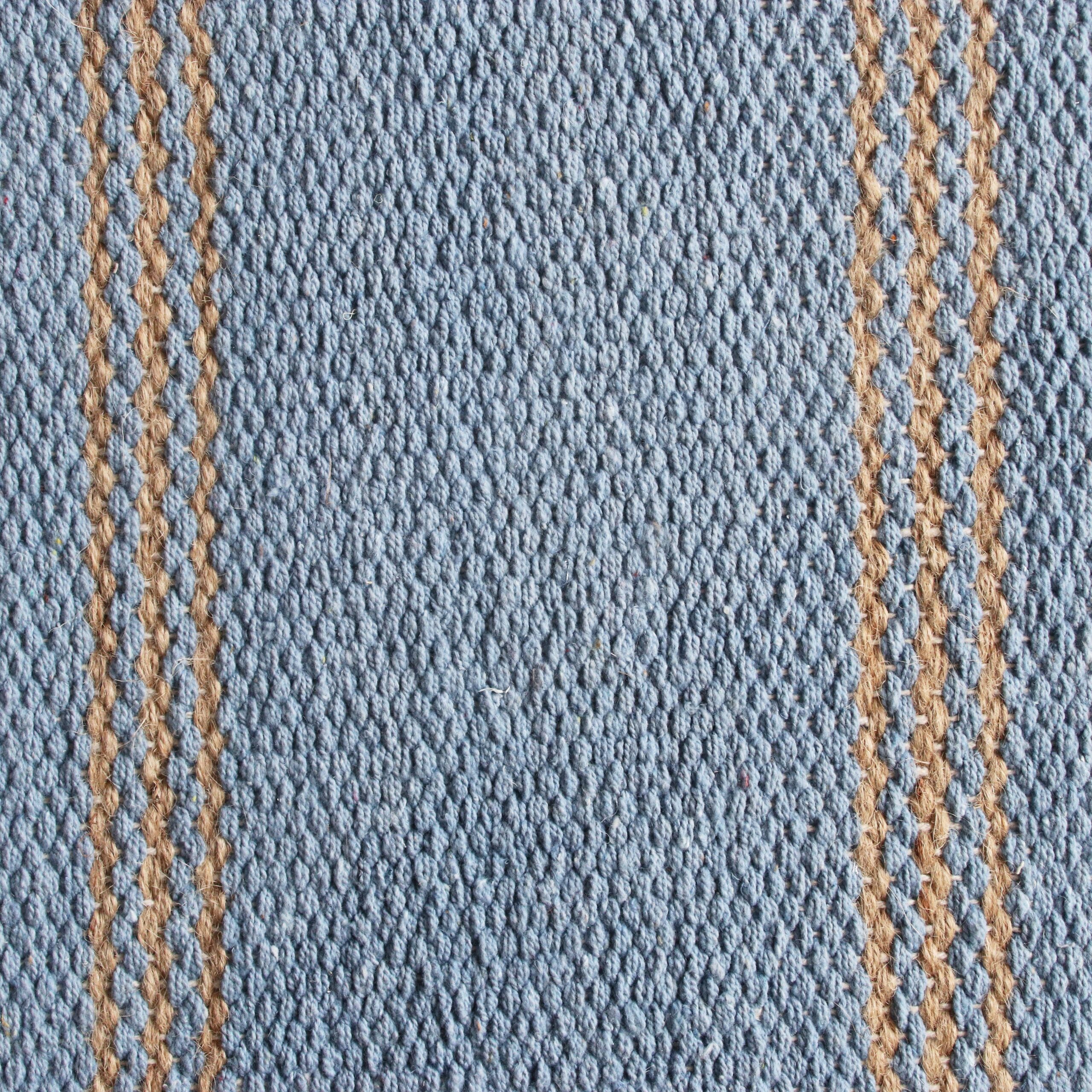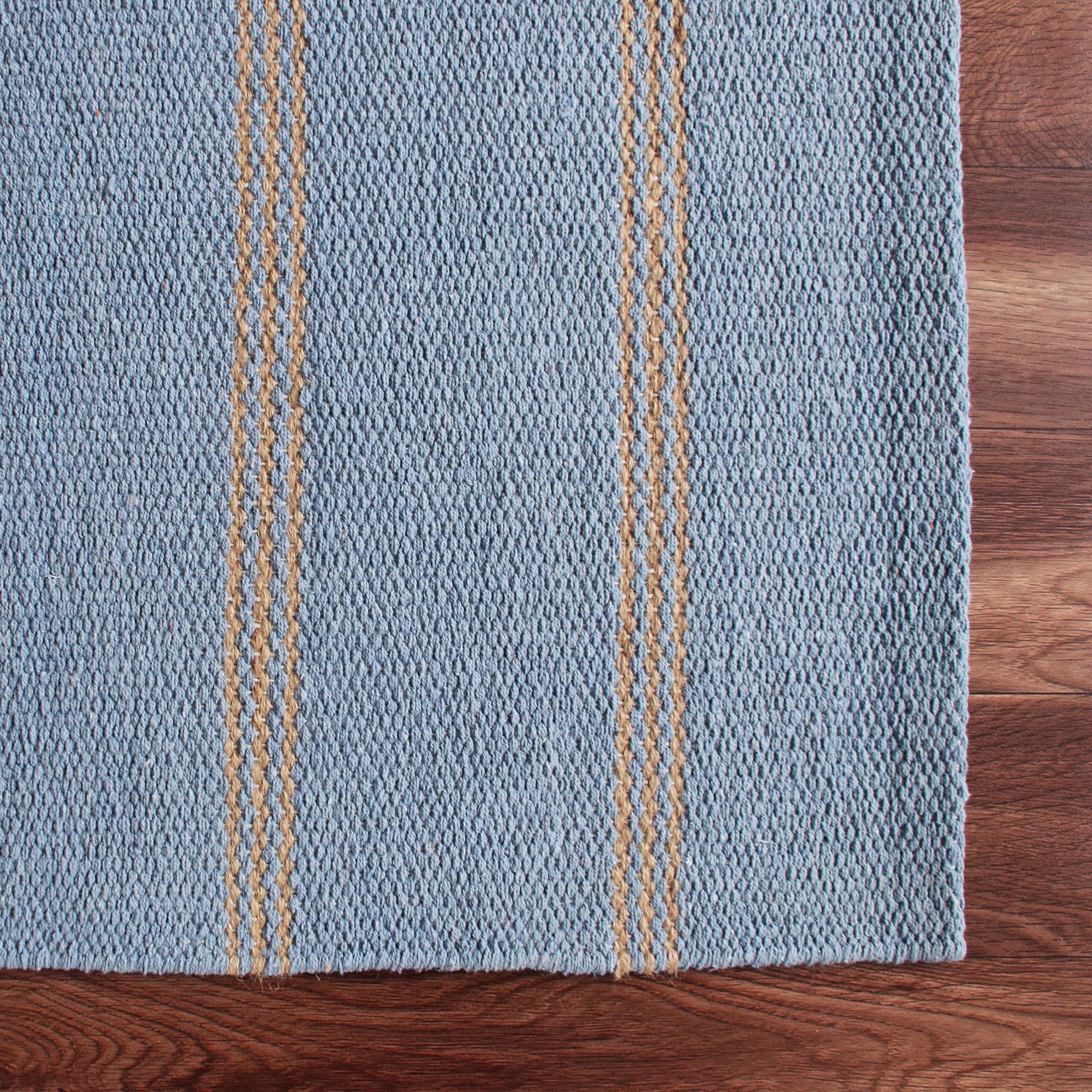 Handwoven in India, this striped jute area rug combines sustainable natural fibers, classic coastal stripes, and a durable cotton backing to bring timeless texture, contemporary style, and resilient versatility to your space. The balance of natural textures and neutral tones creates a smooth feel underfoot while showcasing a double-striped geometric pattern. Complementing a variety of decor themes, this handmade flatwoven rug works beautifully as a standalone statement piece or layered over another rug. The sturdy cotton backing enhances durability, offering a resilient and stylish addition at an affordable price.