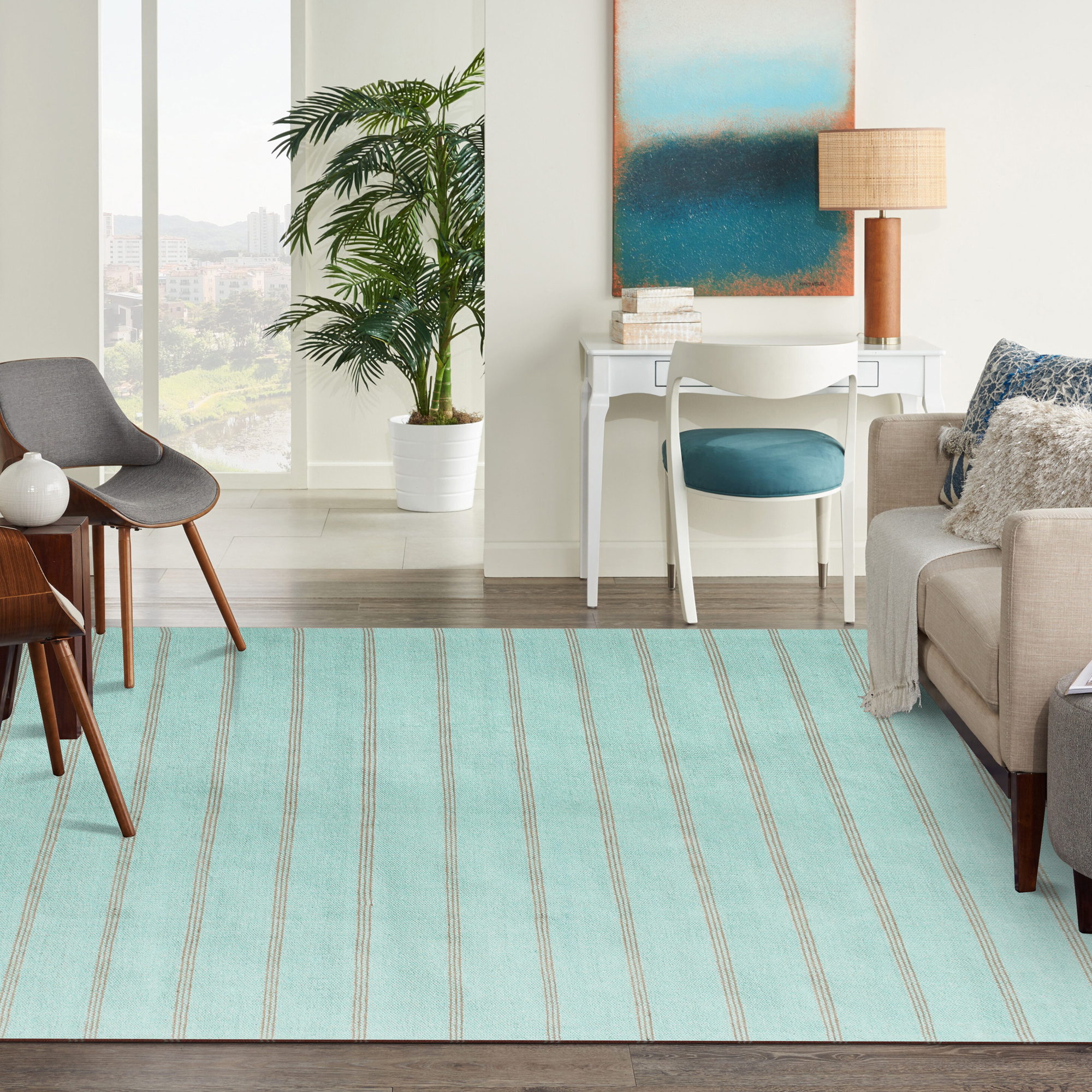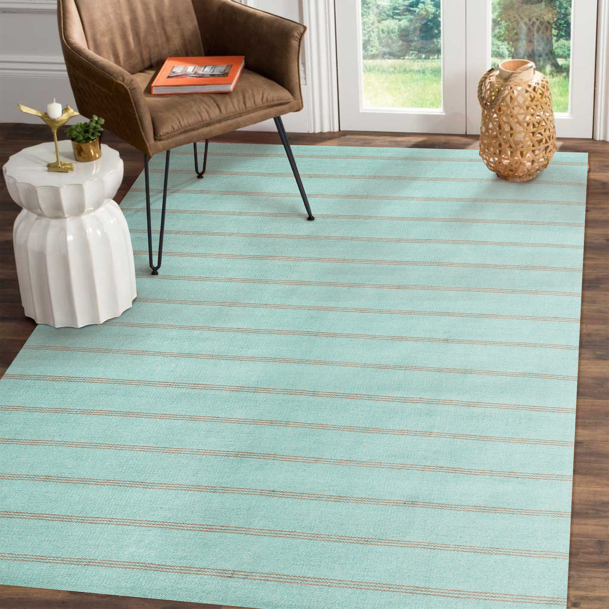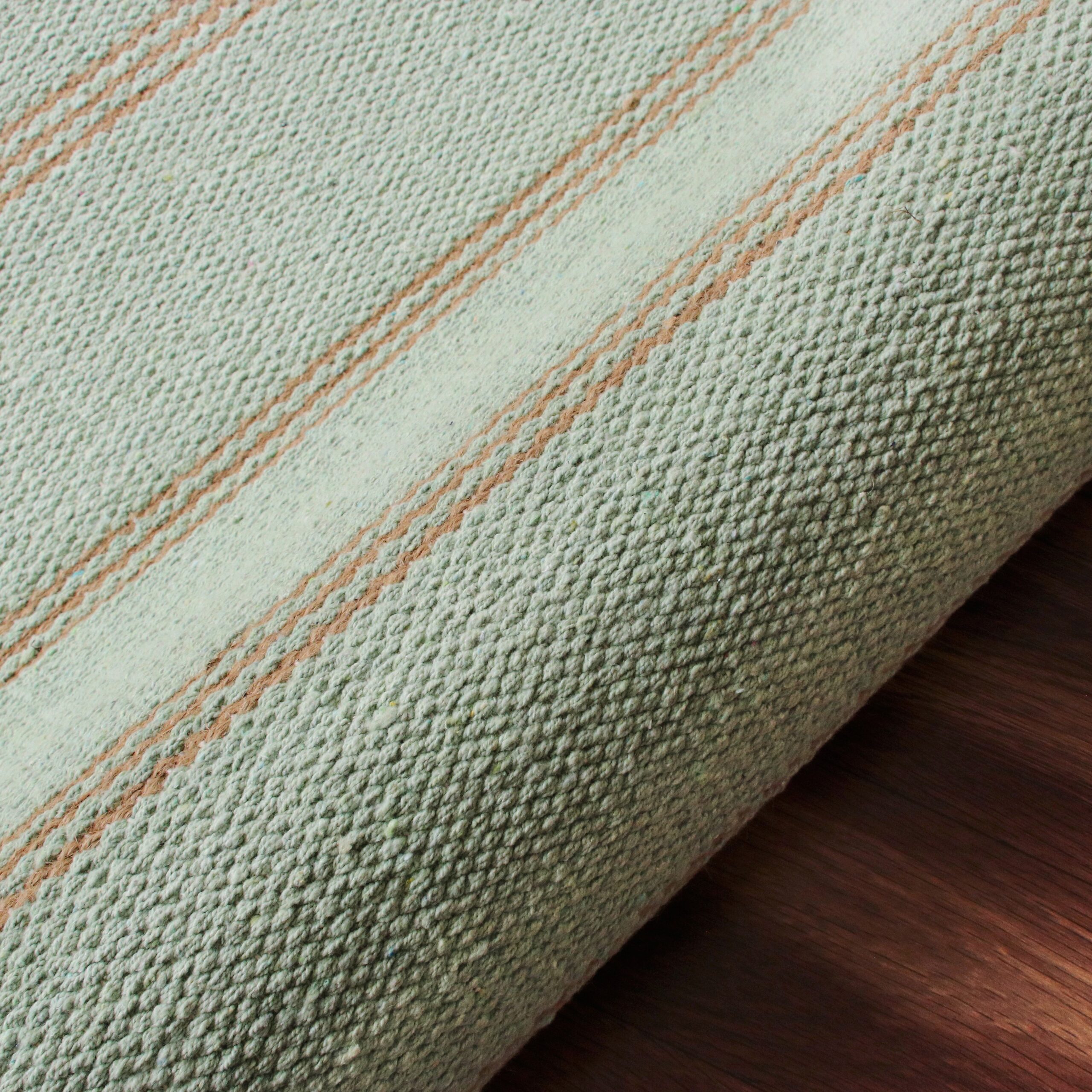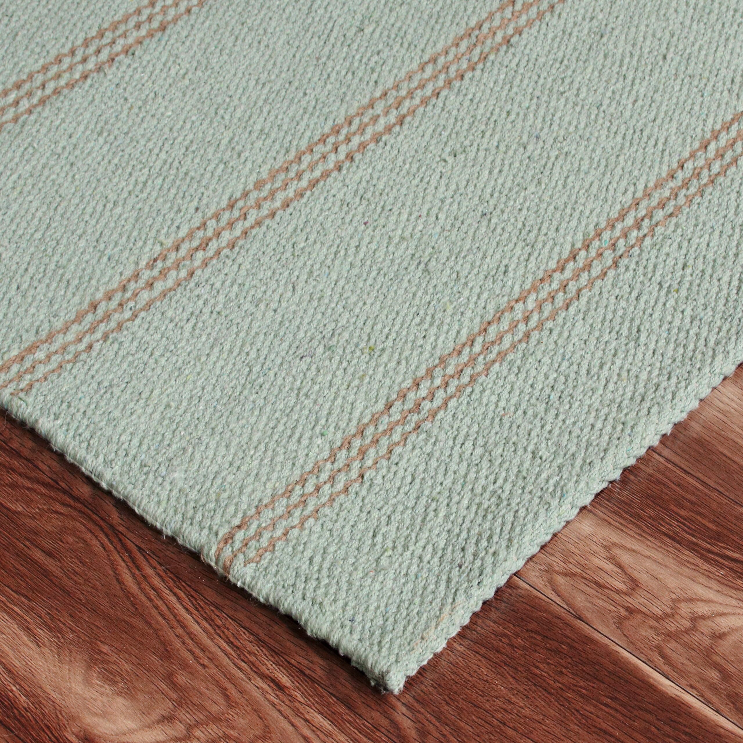 Handwoven in India, this striped jute area rug combines sustainable natural fibers, classic coastal stripes, and a durable cotton backing to bring timeless texture, contemporary style, and resilient versatility to your space. The balance of natural textures and neutral tones creates a smooth feel underfoot while showcasing a double-striped geometric pattern. Melding well with many decor themes, this handmade flatwoven rug is an on-trend piece that can be easily layered over or under another rug, or used as a striking standalone area rug. The durable cotton backing provides a sturdy finish, enhancing the resilience of the fibers and offering added value at an affordable price point.