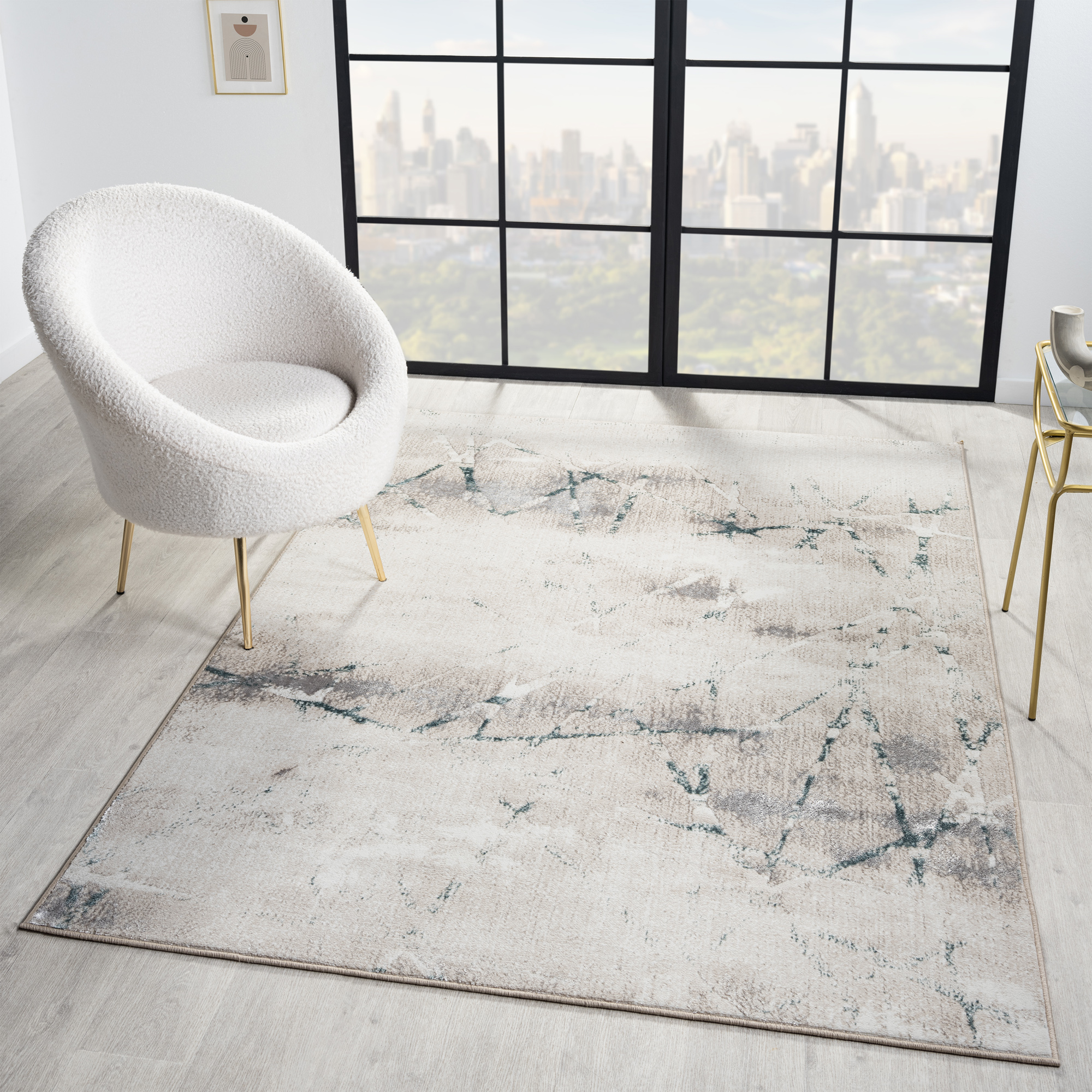 Introduce warmth and style to your living space with this charming area rug. A large-scale abstract pattern graces this piece in shades of gray, beige, and blue, creating an eye-catching foundation for entryways, hallways, kitchens, bathrooms, and any indoor area. Each rug is power-loomed using traditional techniques out of polyester fibers with a cotton backing, which allow you to enjoy high-end design without sacrificing comfort or durability. Perfect for a wide range of décor styles and ages including adult, teen, tween, and kids, this beautiful rug will do well in any area of your home. The polyester pile of this rug provides a shimmering effect at different angles. The performance materials are fade, stain, and moisture resistant making it ideal for high-traffic areas and homes with pets or children.