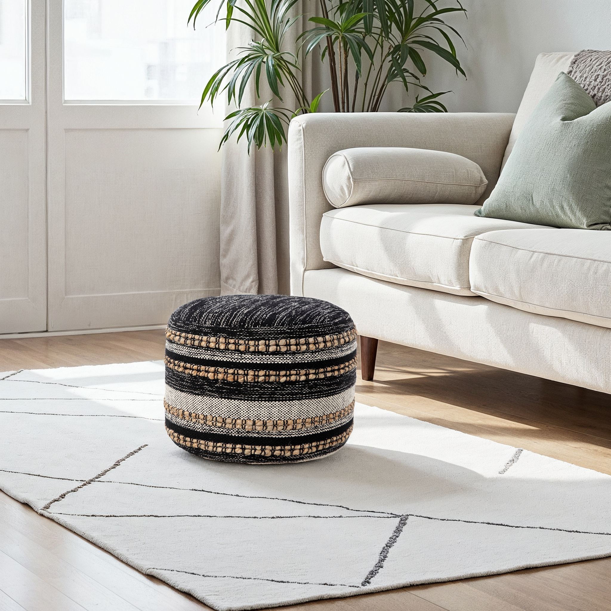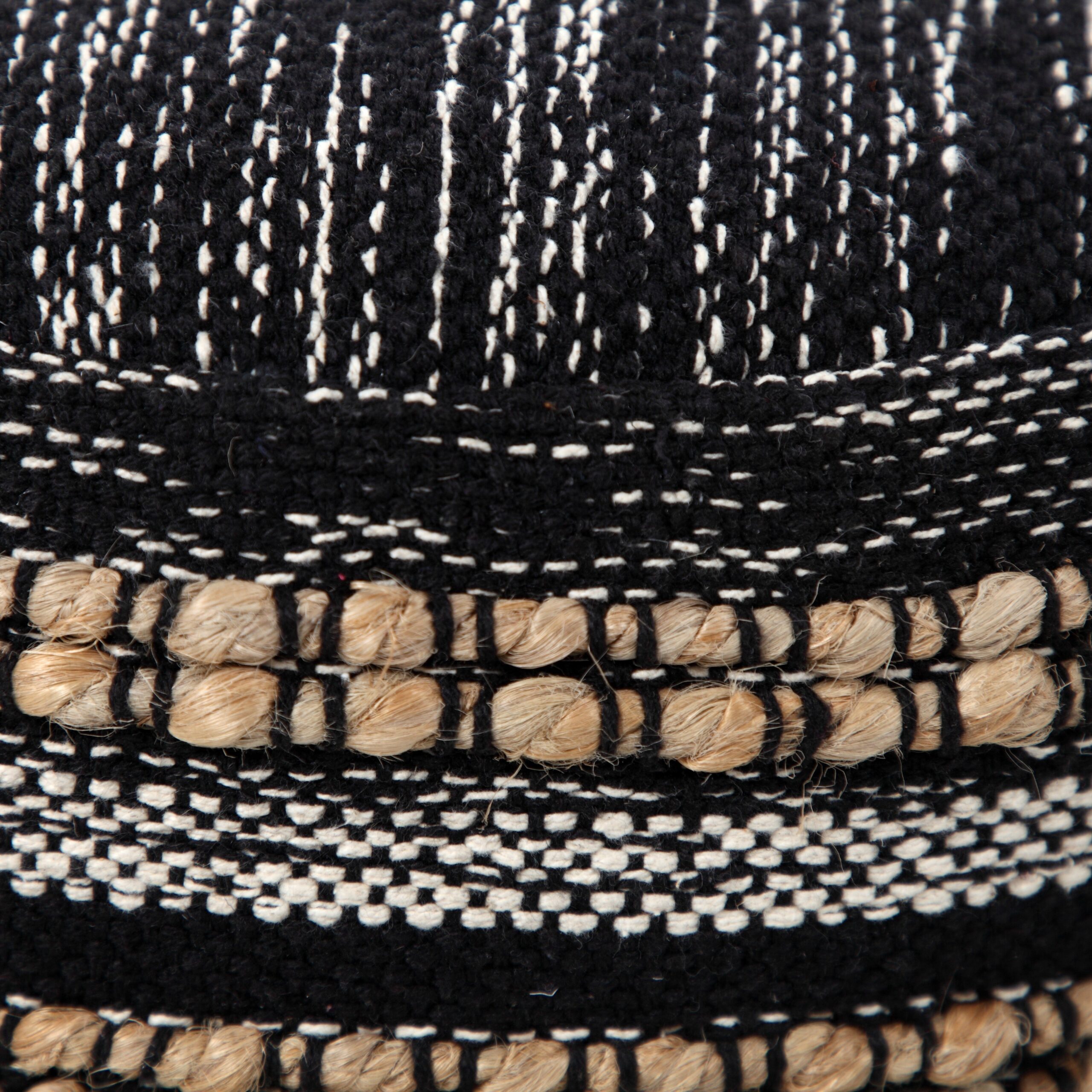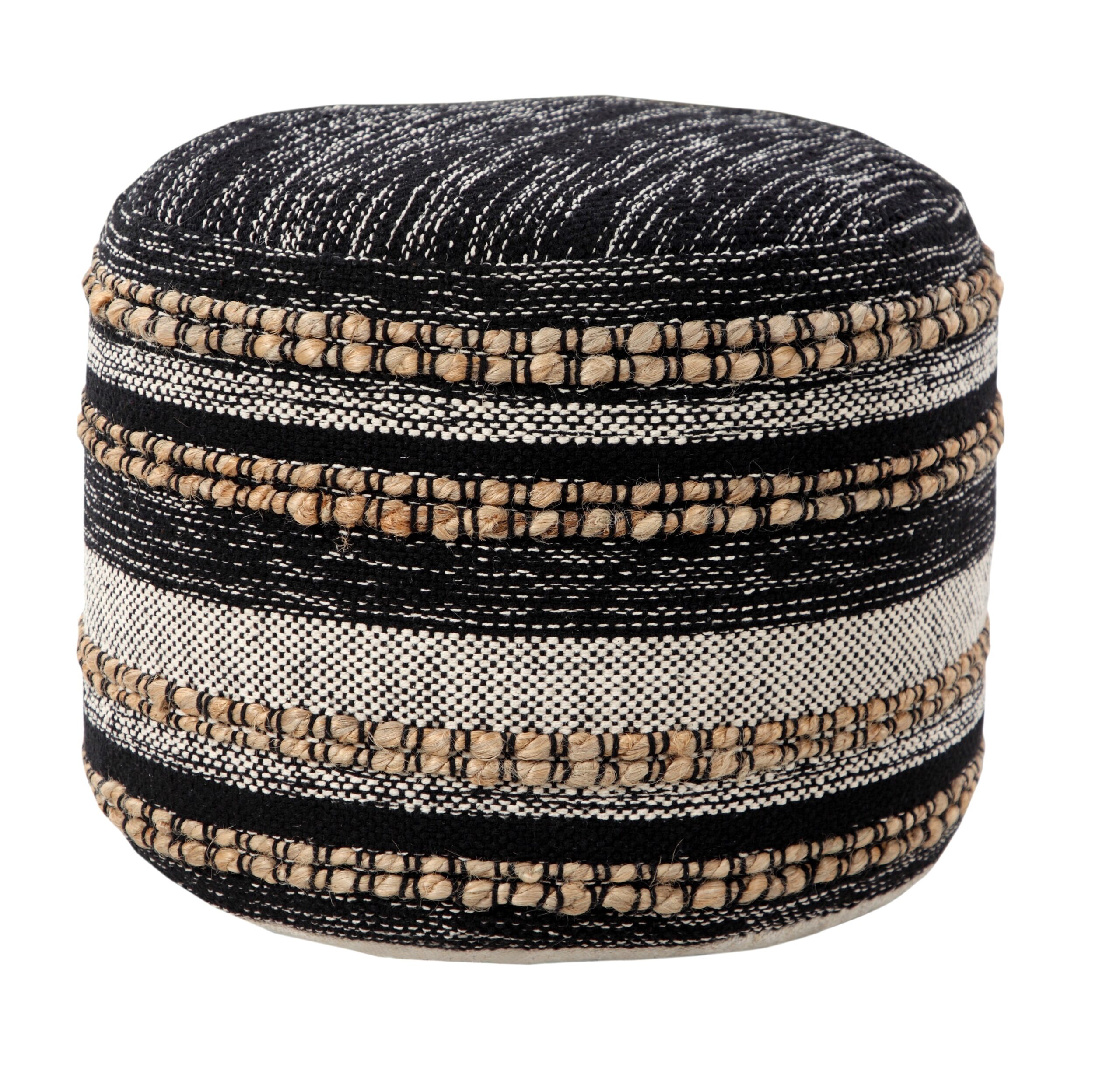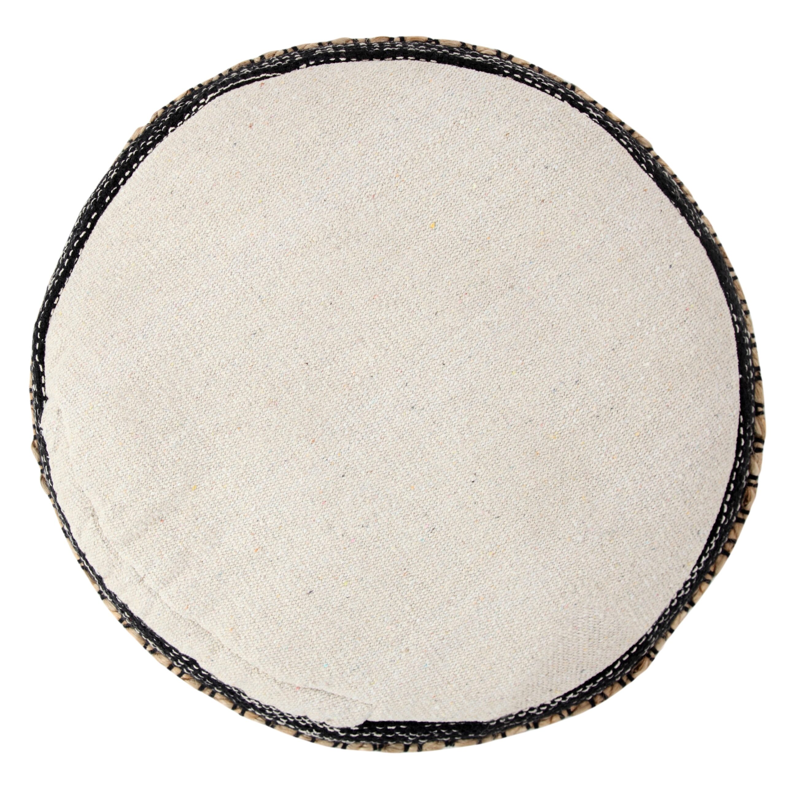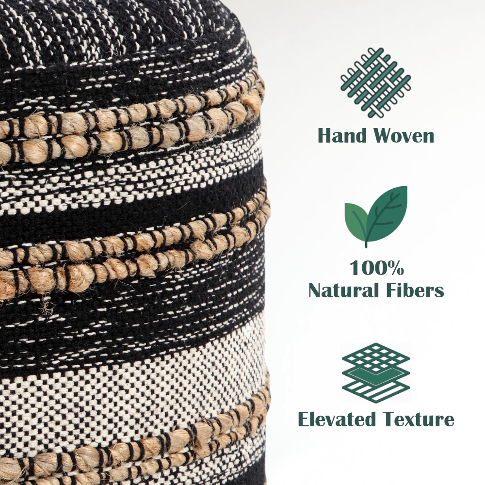 This charming, round pouf is a versatile and stylish piece that will enhance any room in your home. Handmade in India using 95% cotton and 5% jute, it features a unique and eye-catching pattern that adds character and appeal. Filled with EPS balls, it also provides the perfect balance of support and comfort, making it ideal for use as a seat or a footrest. Its high-quality materials and superior construction ensure that this decorative pouf will last for years to come.