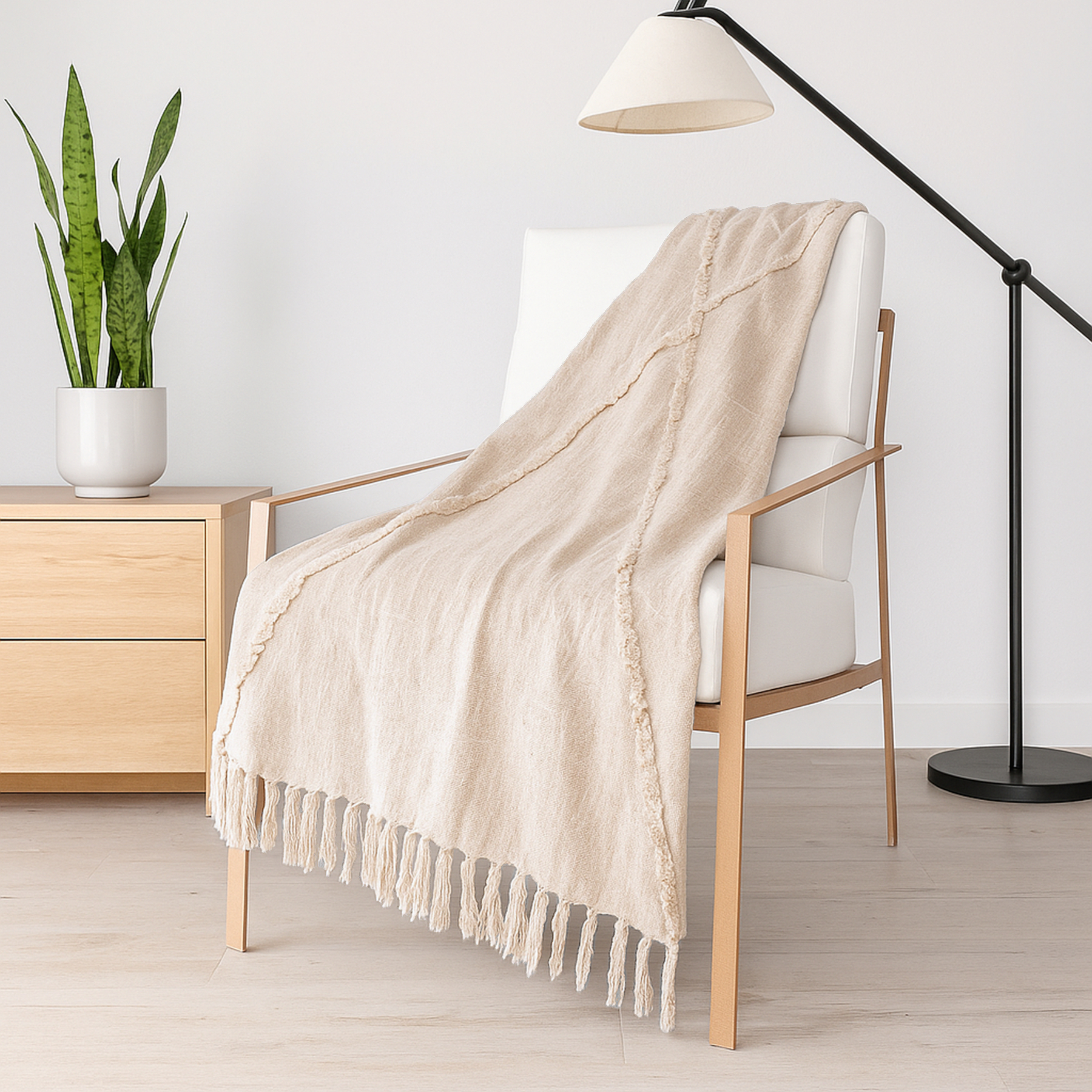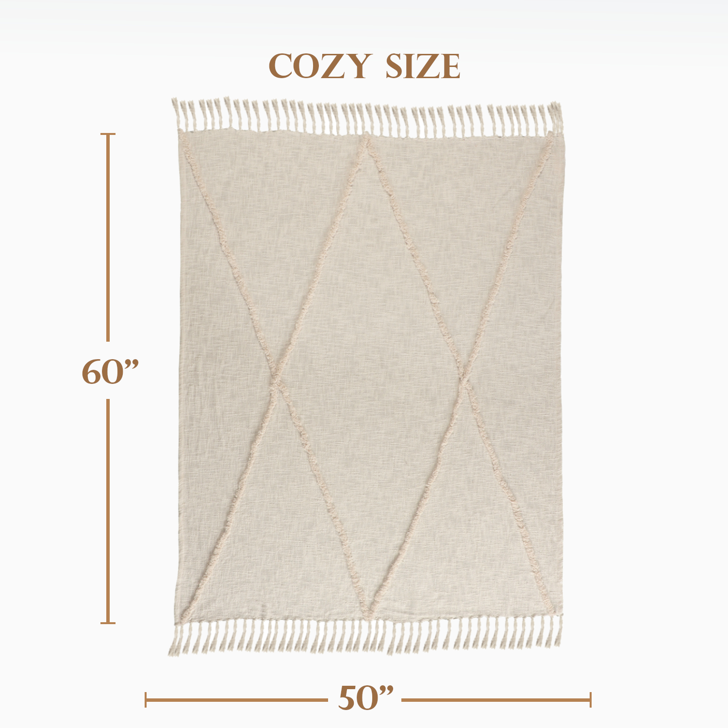 Wrap yourself in luxurious comfort with this handwoven throw blanket. Made in India using 100% cotton, this cozy blanket features tufted diamond designs and fringe accents, adding a touch of texture and style to any space. The soft, breathable cotton material provides warmth without weighing you down, making it perfect for snuggling up on chilly evenings. Whether you’re curling up with a book or watching your favorite movie, this beautiful throw blanket is sure to become your go-to accessory.
