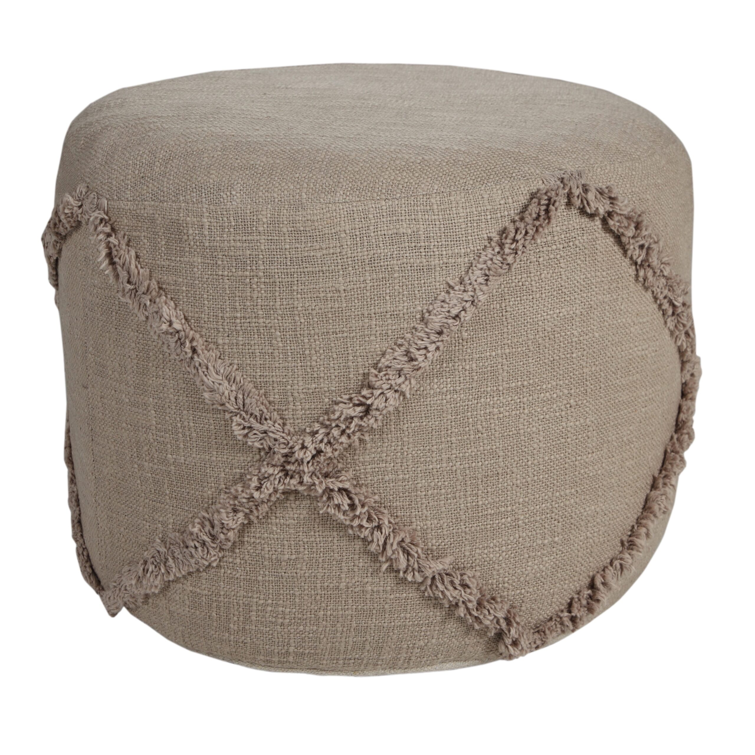Providing form, function, and fashion all in one charming package, this pouf features a solid diamond design to go with any style from contemporary to transitional to farmhouse to Scandinavian. This piece brings rich textured tufting with a lightweight solid cotton slub fabric for the perfect neutral necessity. Easily tucked away or toted to another room in your home, use this all-in-one object as an additional seat, footrest, stool, ottoman, side table, or just stylish décor. The possibilities are endless!