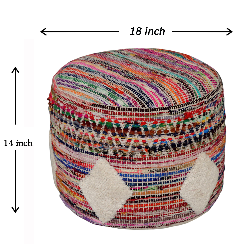 This charming, round pouf is a versatile and stylish piece that will enhance any room in your home. Handmade in India using 50% cotton and 50% polyester, it features a unique and eye-catching pattern that adds character and appeal. Filled with EPS balls, it also provides the perfect balance of support and comfort, making it ideal for use as a seat or a footrest. Its high-quality materials and superior construction ensure that this decorative pouf will last for years to come.
