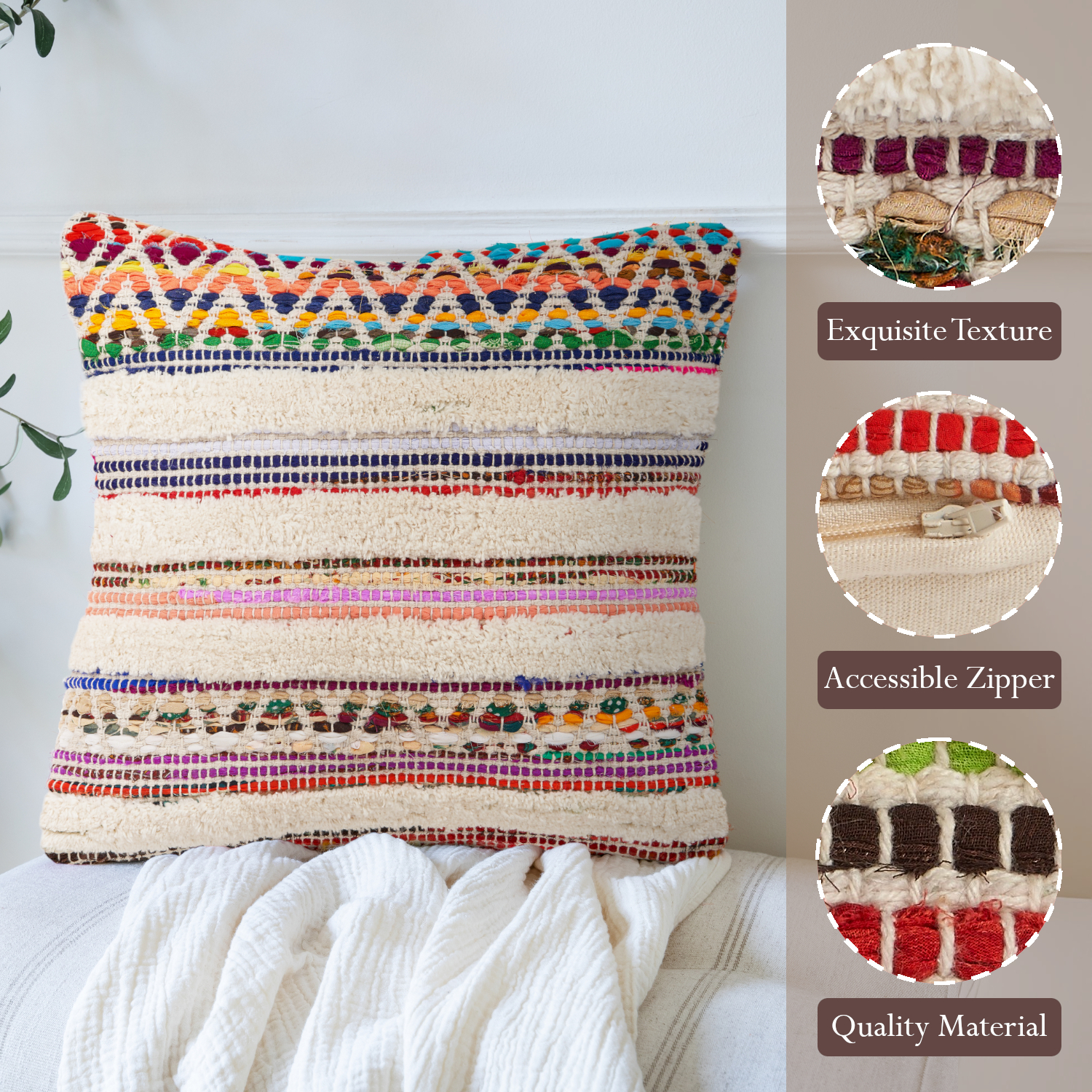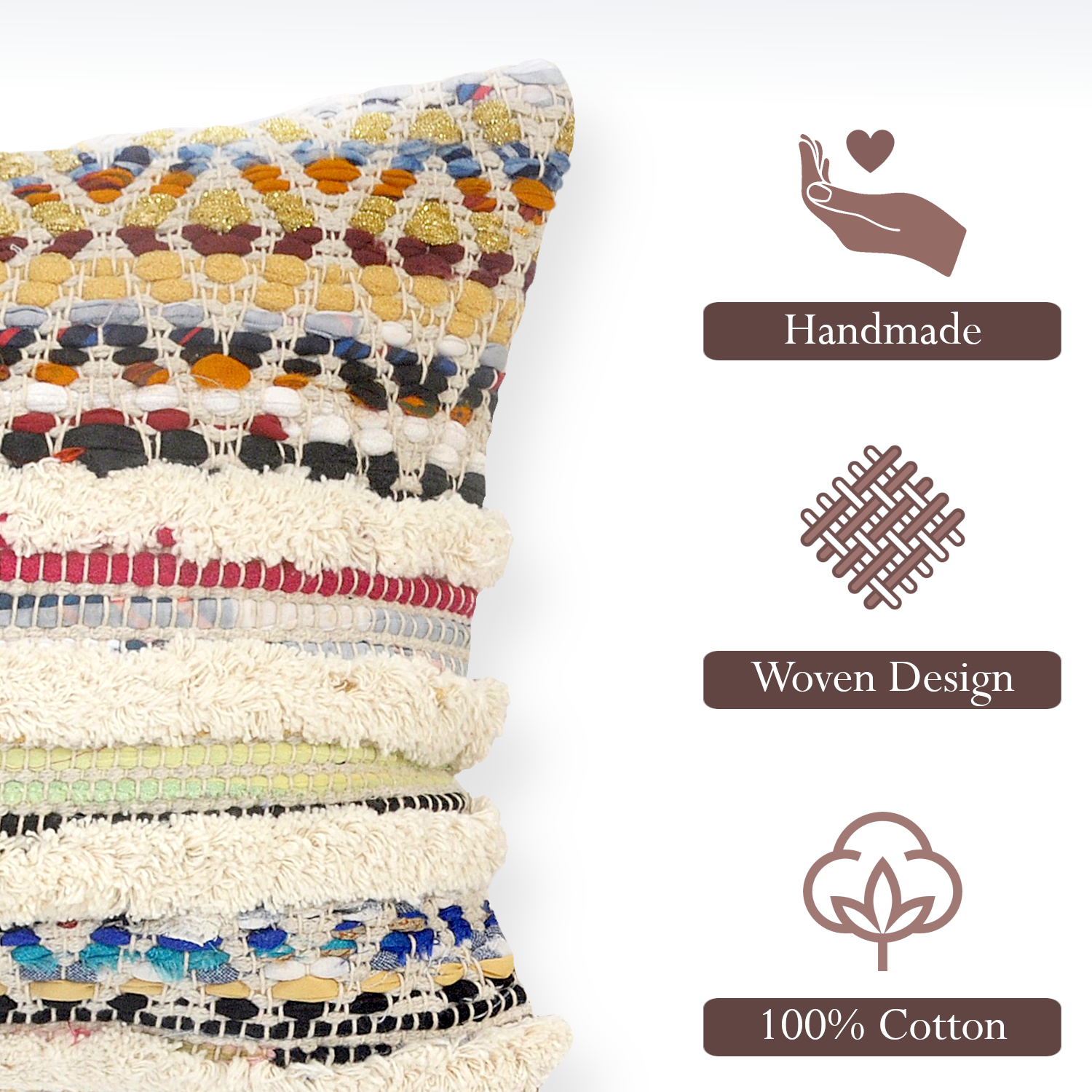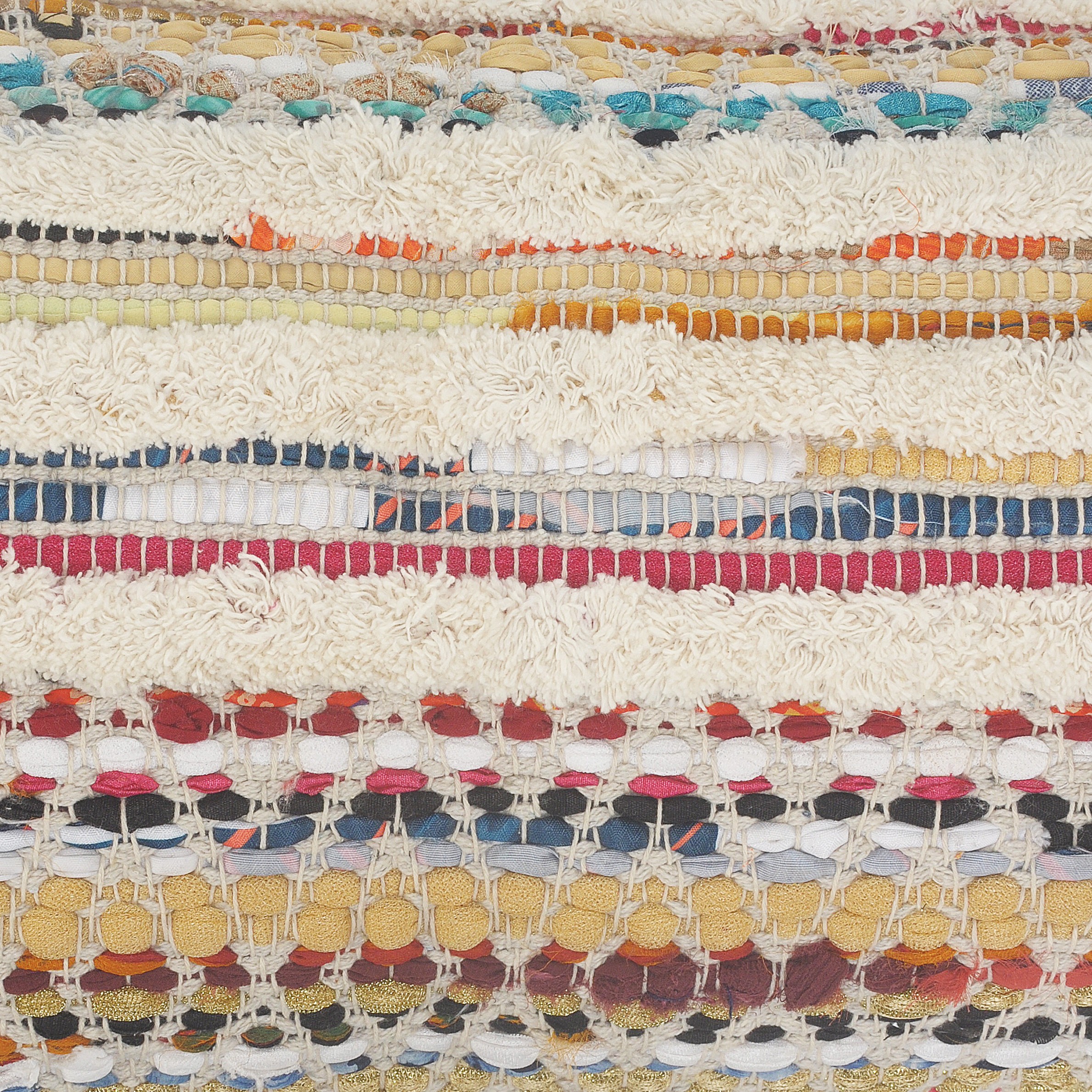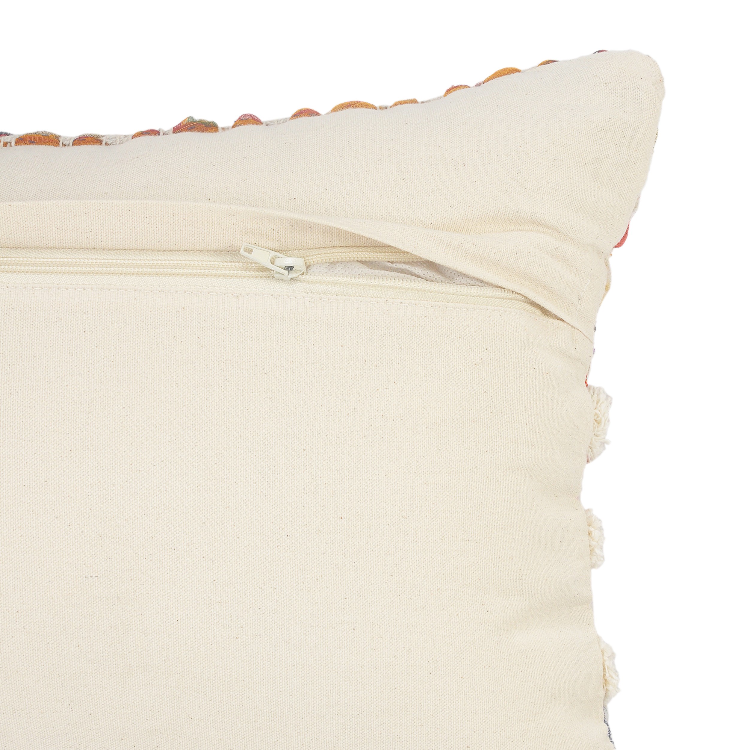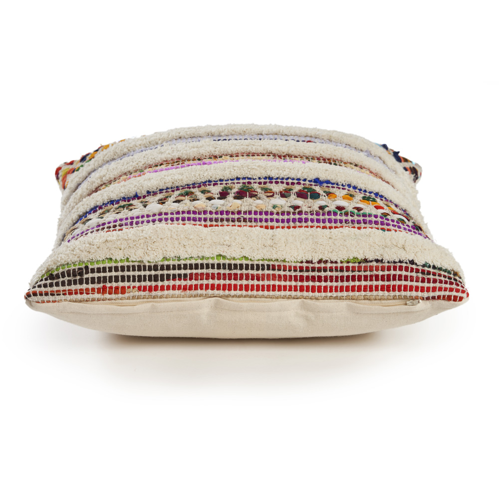 Designed to thrill, our overtufted chindi pillow cover will add intricate mastery and eye pleasing designs to any room. This bohemian style pillow is ready for you to take it home and get creative with it. Adding this to your collection will add color and unique textures that are ready to cozy up or just show off. Handcrafted with the customer in mind, there is no compromise of comfort and style with this easy to use pillow cover.