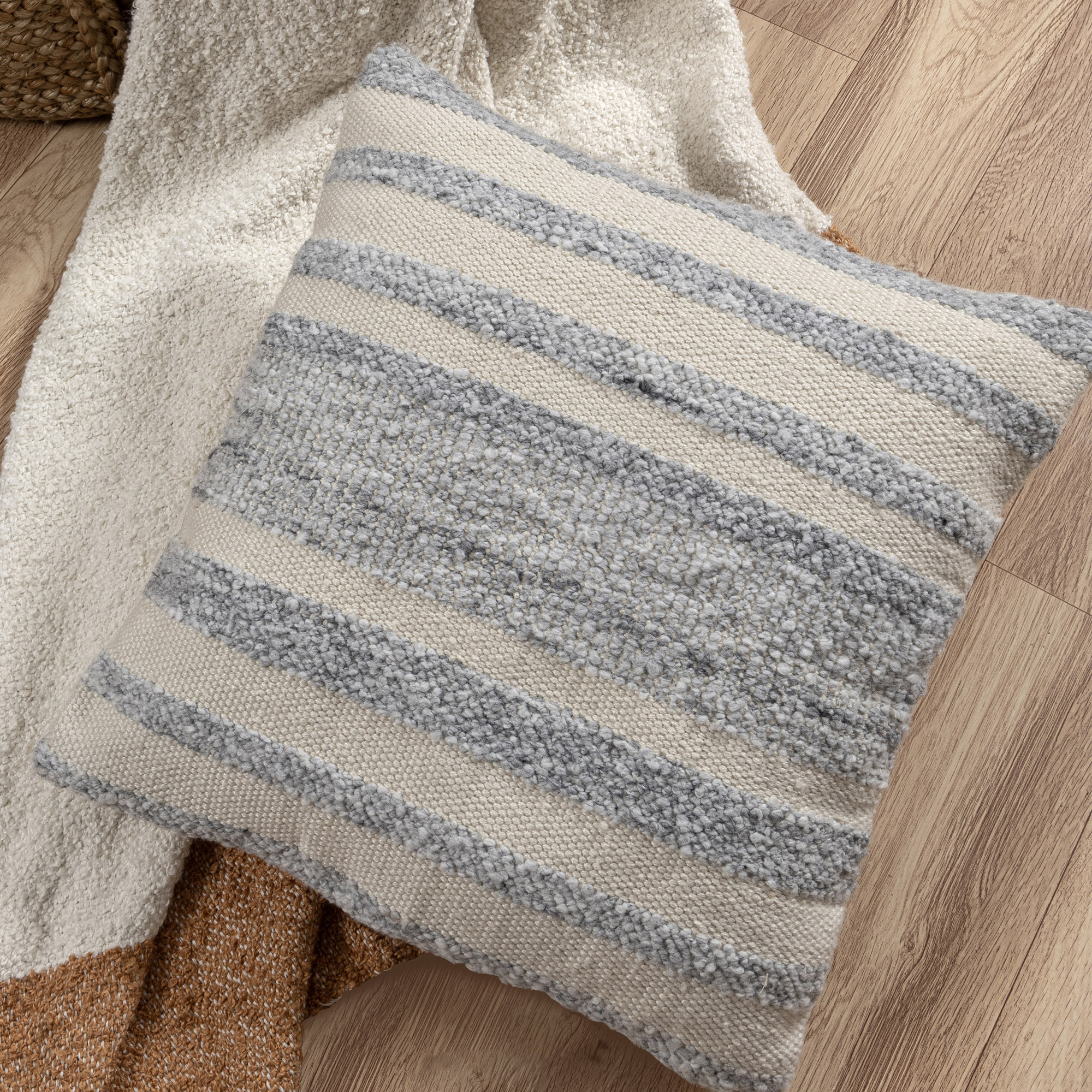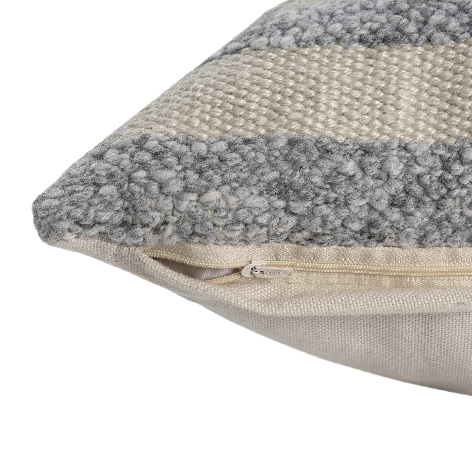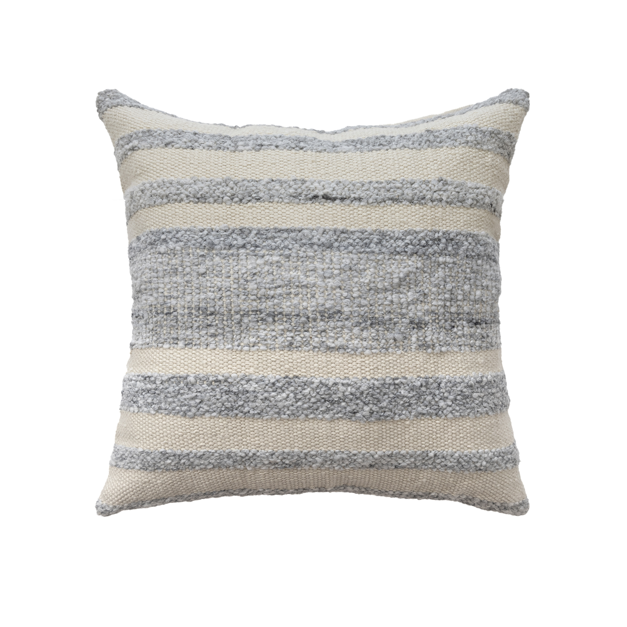 This handwoven polyester pillow cover features an elegant over-tufted striped design in a versatile light gray and ivory color palette. The durable polyester construction makes this pillow cover perfect for a wide range of decor styles and ages, including adult, teen, tween, and kids. The hidden zipper closure allows for easy insert placement (insert not included) and hassle-free cleaning. Designed for both indoor and outdoor use, this pillow cover is a stylish and practical accent for any space.