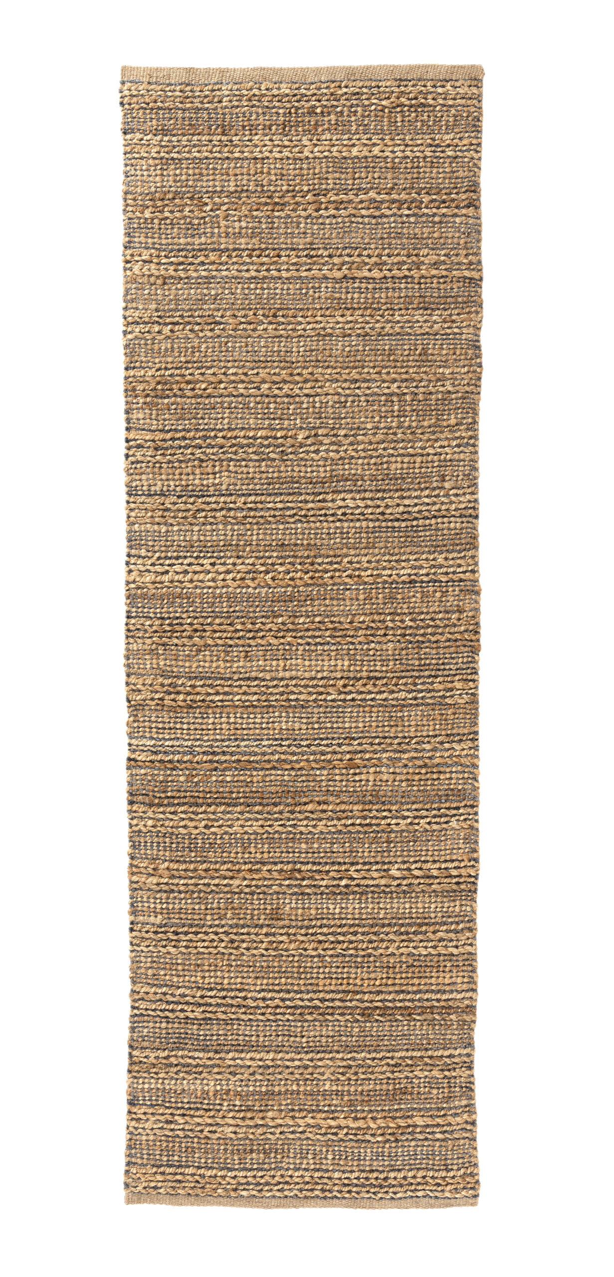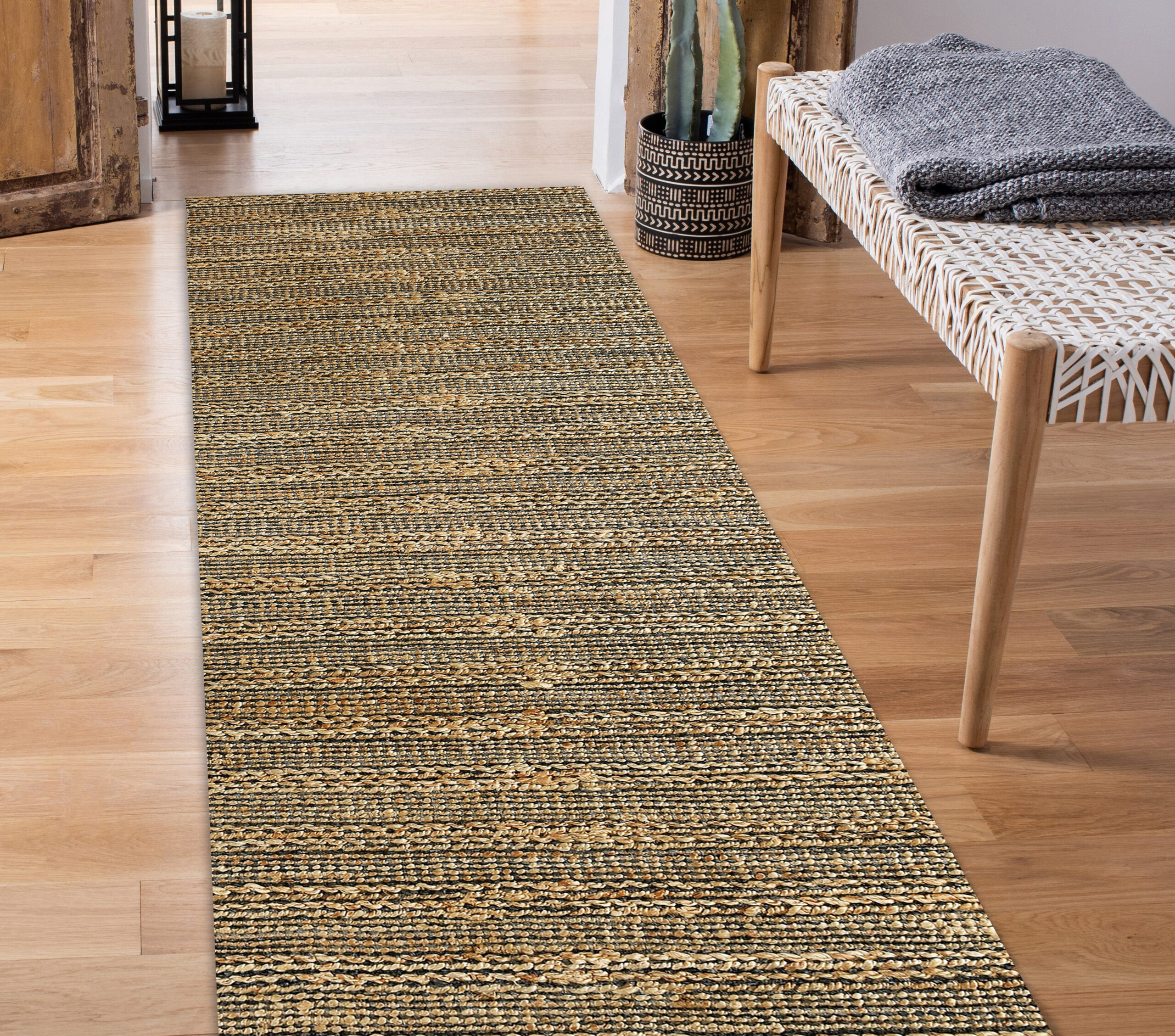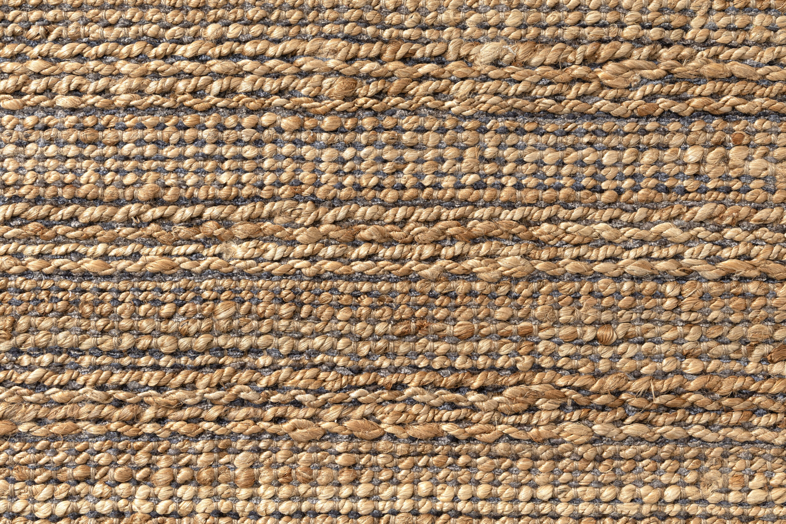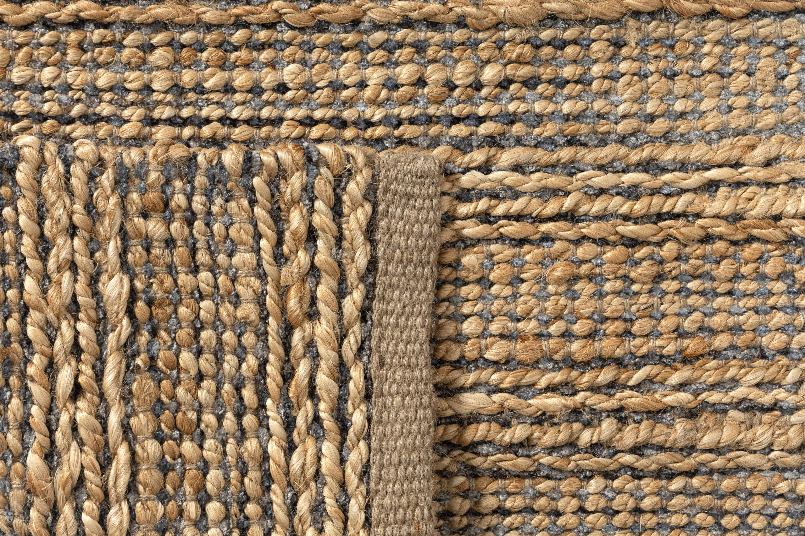 Bring natural texture and color into your home with this beautiful handmade jute area rug. This piece features intricately woven stripes of jute and soft chenille in shades of gray and black creating an eye-catching foundation for entryways, hallways, bedrooms, and bathrooms. Available in multiple color and size options to accomodate any space in your home, apartment, or dorm. Each rug is hand-woven using traditional techniques out of chenille and natural jute fibers with a cotton backing, which allow you to enjoy high-end design without sacrificing comfort or durability. The resilient materials and tightly woven construction ensure that this rug will maintain its shape and appearance for years to come.
