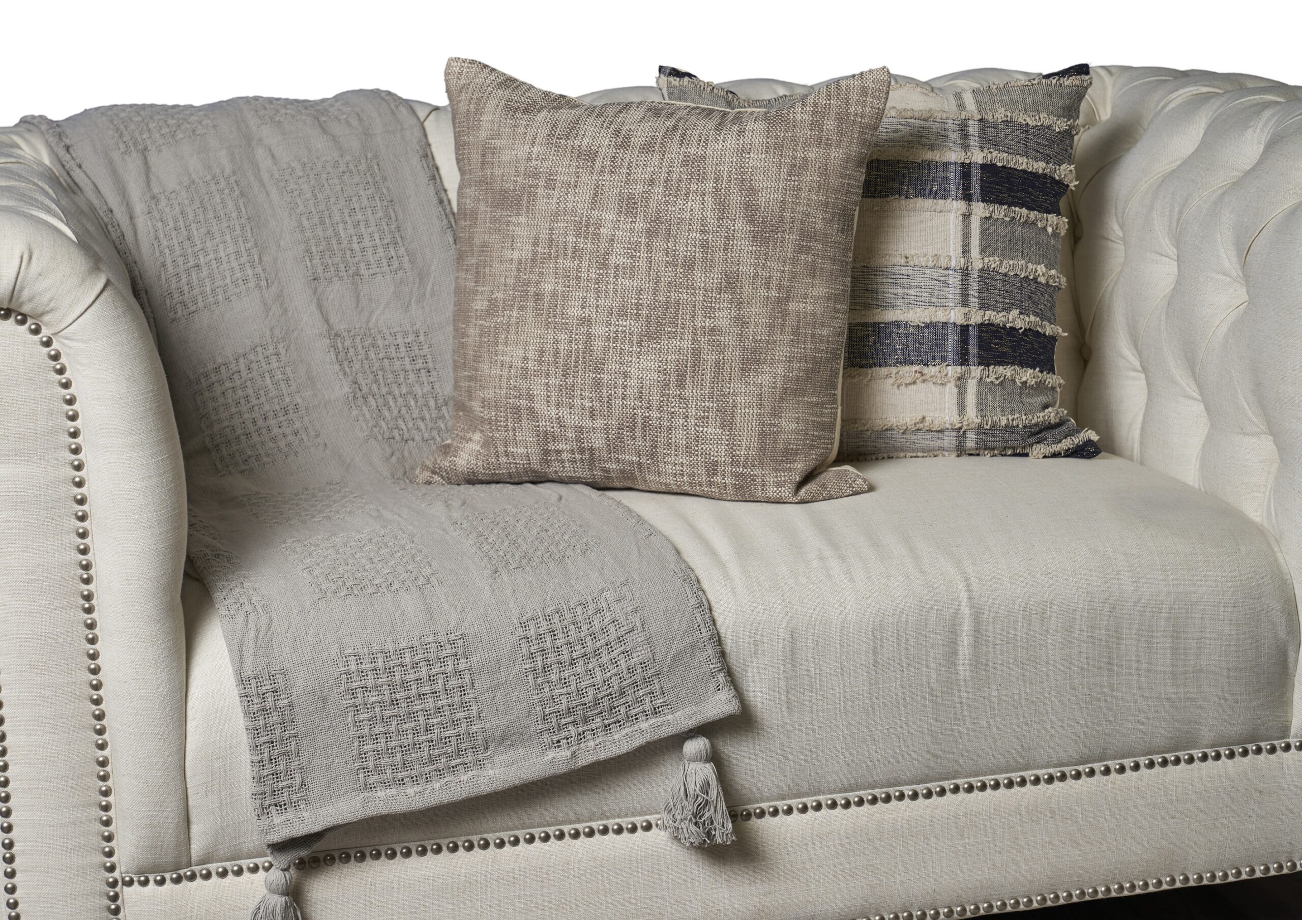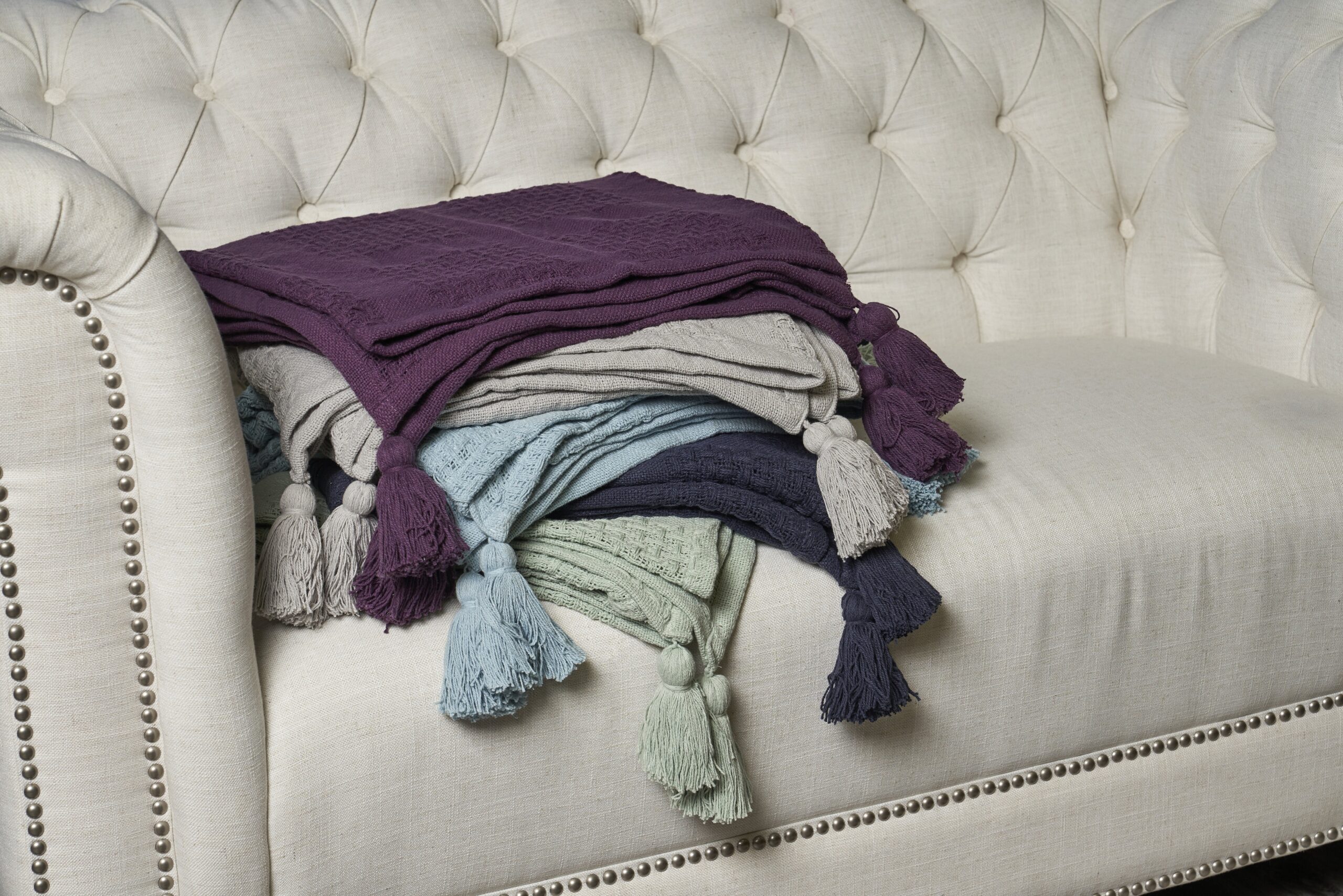 Add a cozy touch to your home with this beautiful throw blanket, expertly powerloomed in India using 100% cotton. The soft and breathable material makes it perfect for snuggling up on chilly nights, while the corner tassels add a touch of decorative flair. Ideal for use in the living room, bedroom, or even as a picnic blanket, this versatile and durable throw will become a go-to staple in your home decor. Enjoy the comfort and style of this stunning throw blanket year-round.