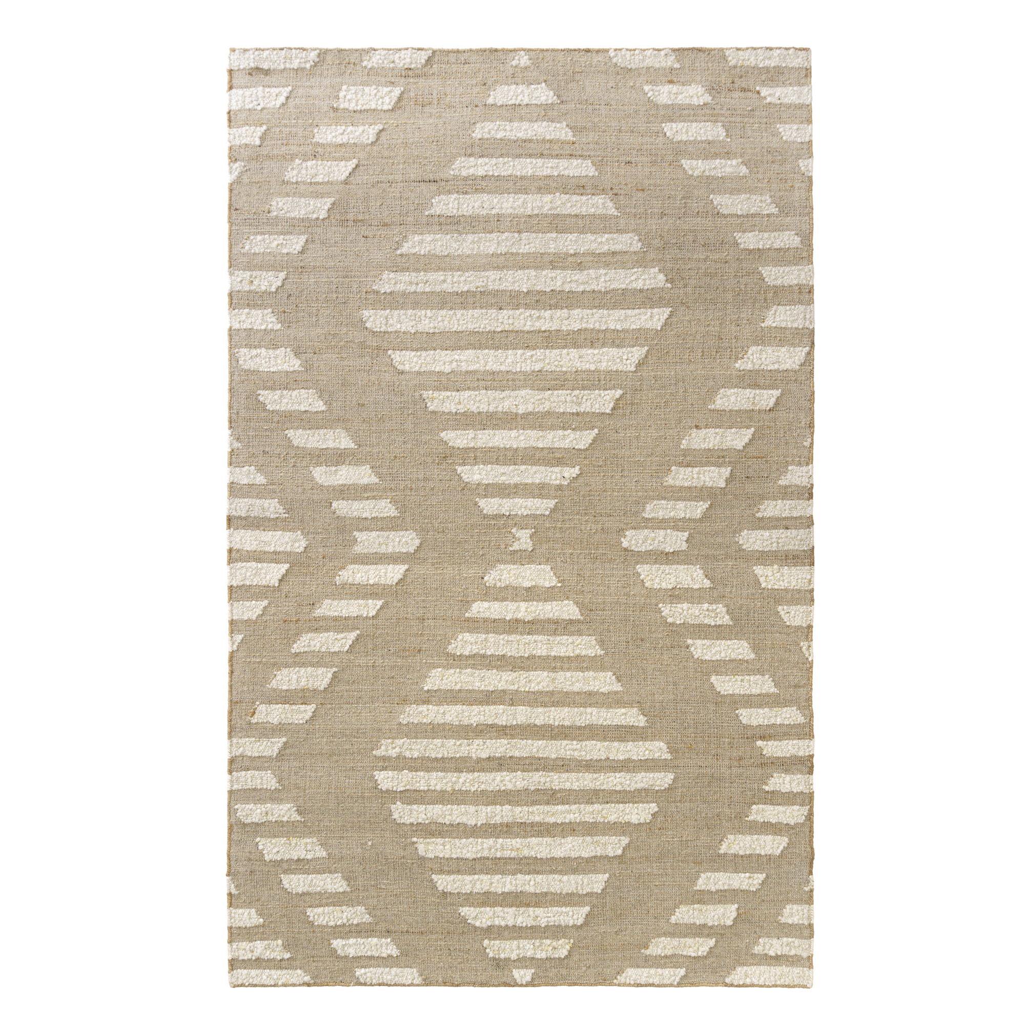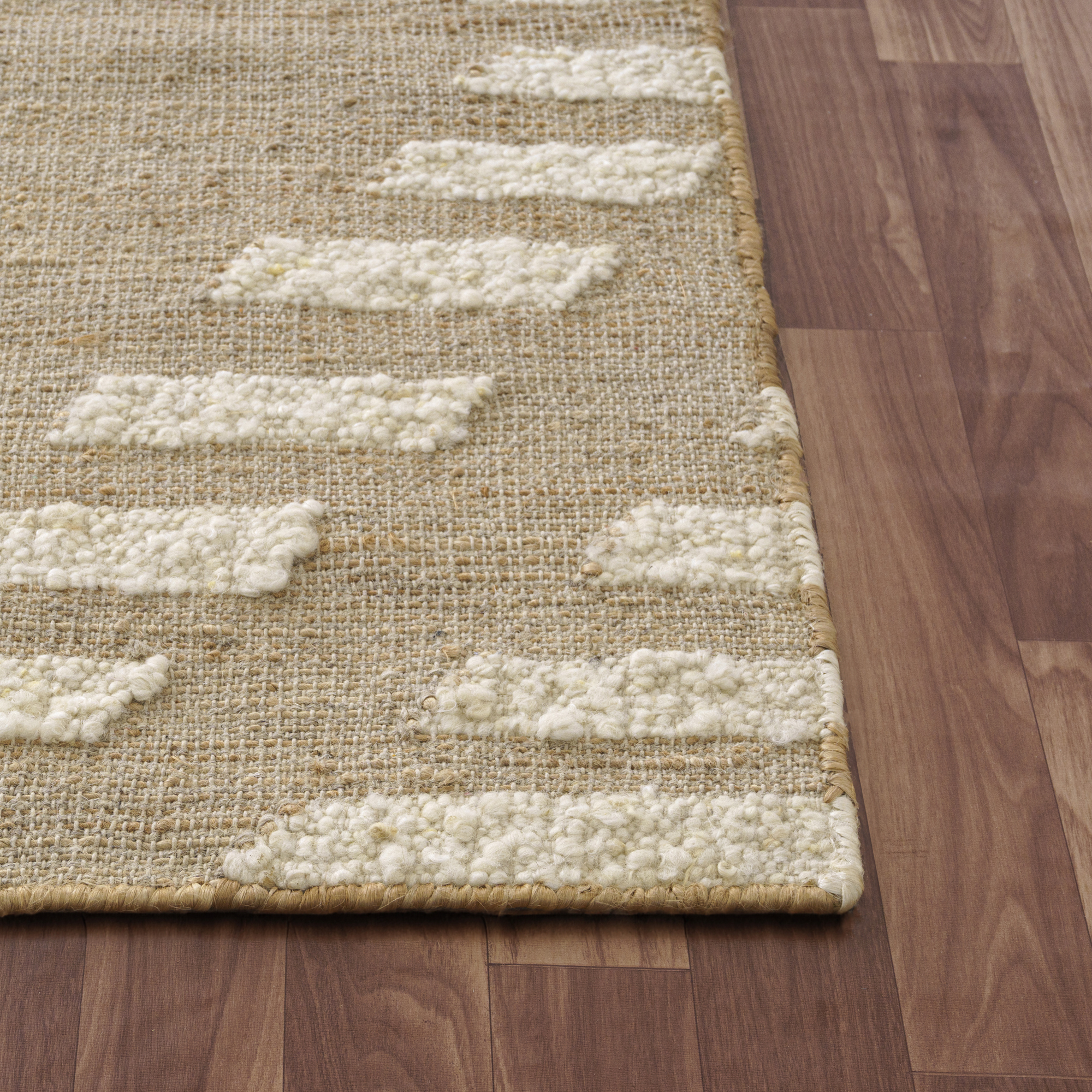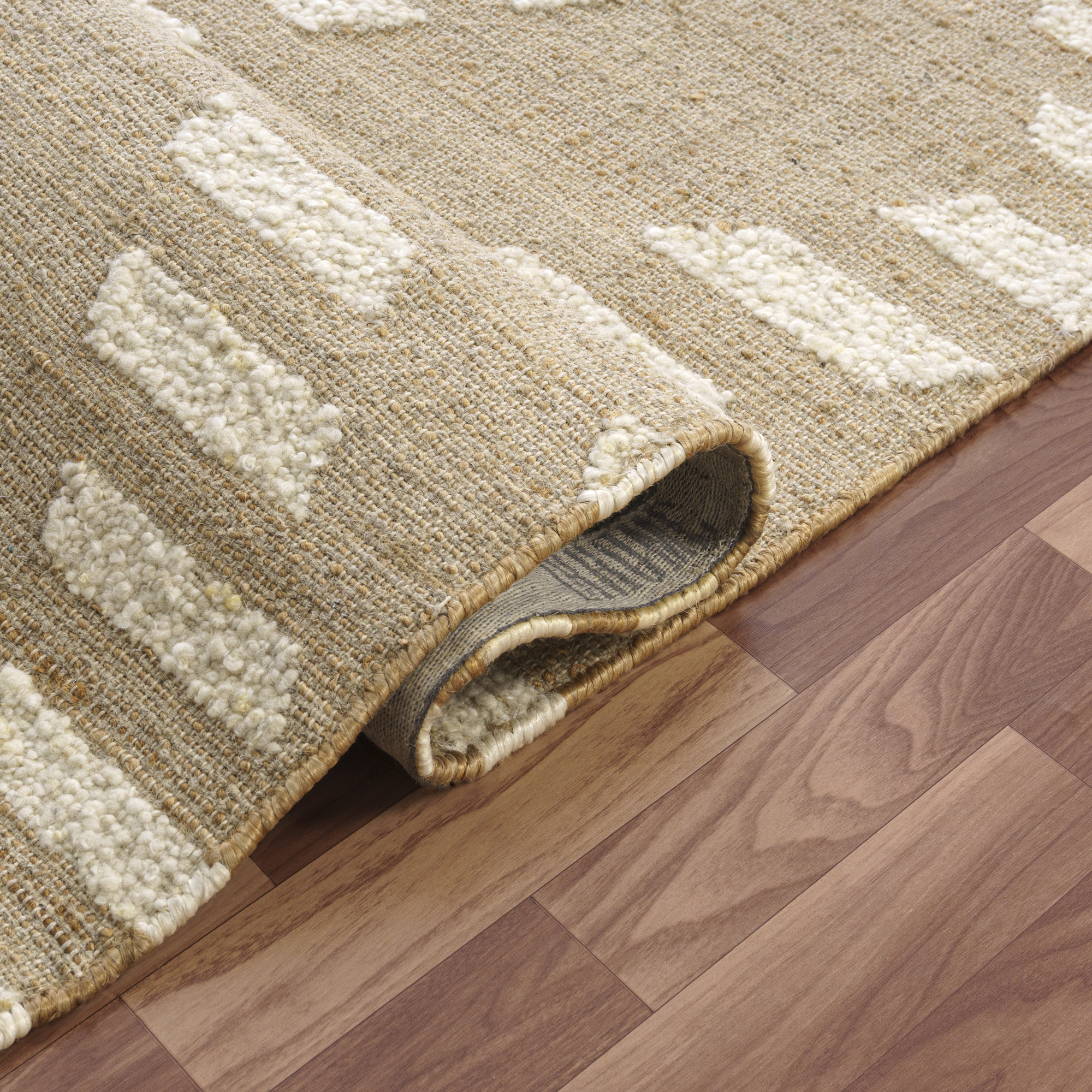Experience the epitome of style and comfort with our Natural/Ivory Farmhouse Diamond Striped Indoor Area Rug, meticulously hand-woven in the artisanal workshops of India. This rug, a harmonious blend of wool, cotton, and jute, boasts durability and plushness. The distinct diamond and striped pattern adds a touch of elegance to any space, catering to a farmhouse, transitional, or casual aesthetic. Versatile in its application, it seamlessly fits into your living room, dining area, kitchen or bedroom Its natural hues, featuring ivory and brown tones, embrace the essence of nature, making it an ideal choice for indoor. Elevate your surroundings with this rug, embodying craftsmanship and design from India.
