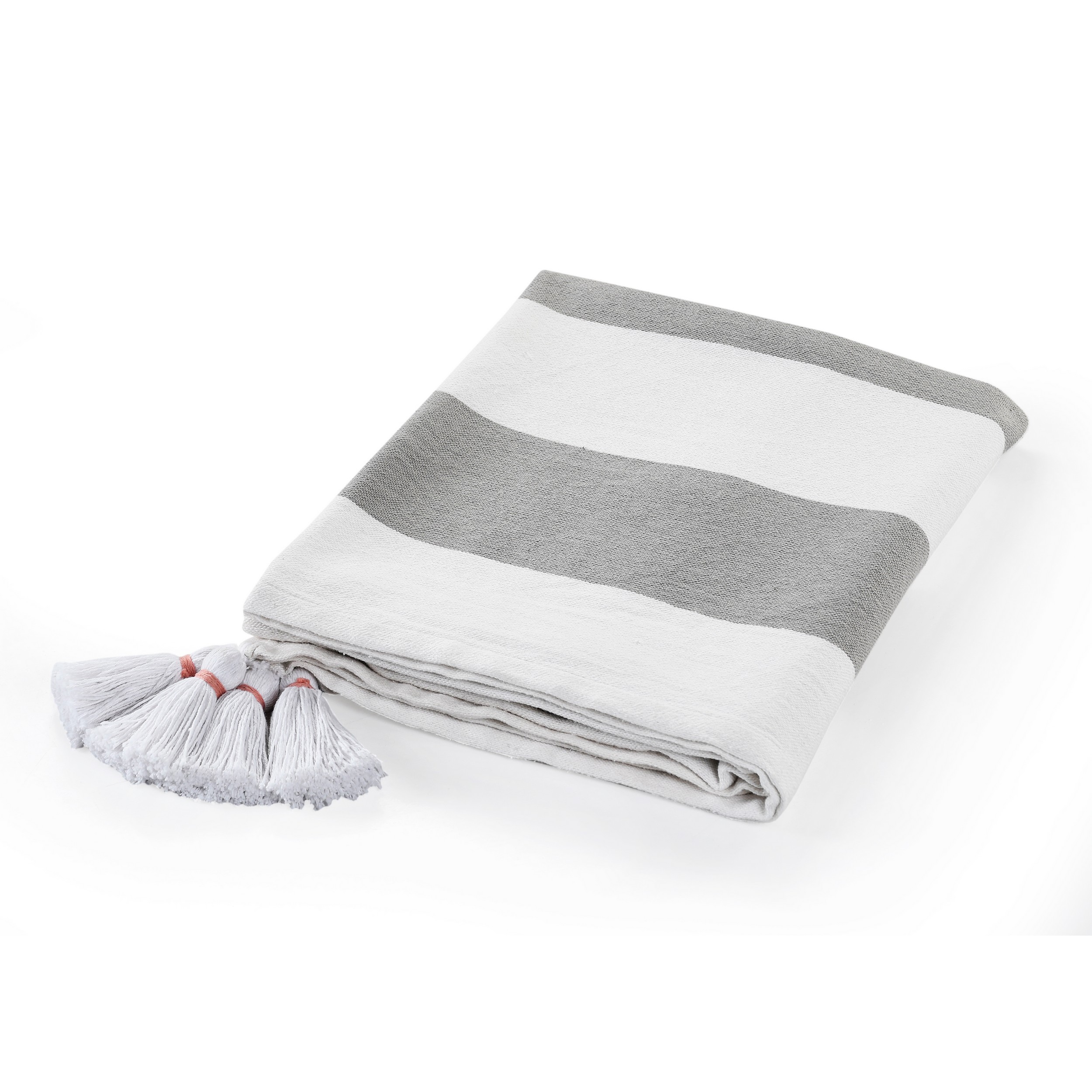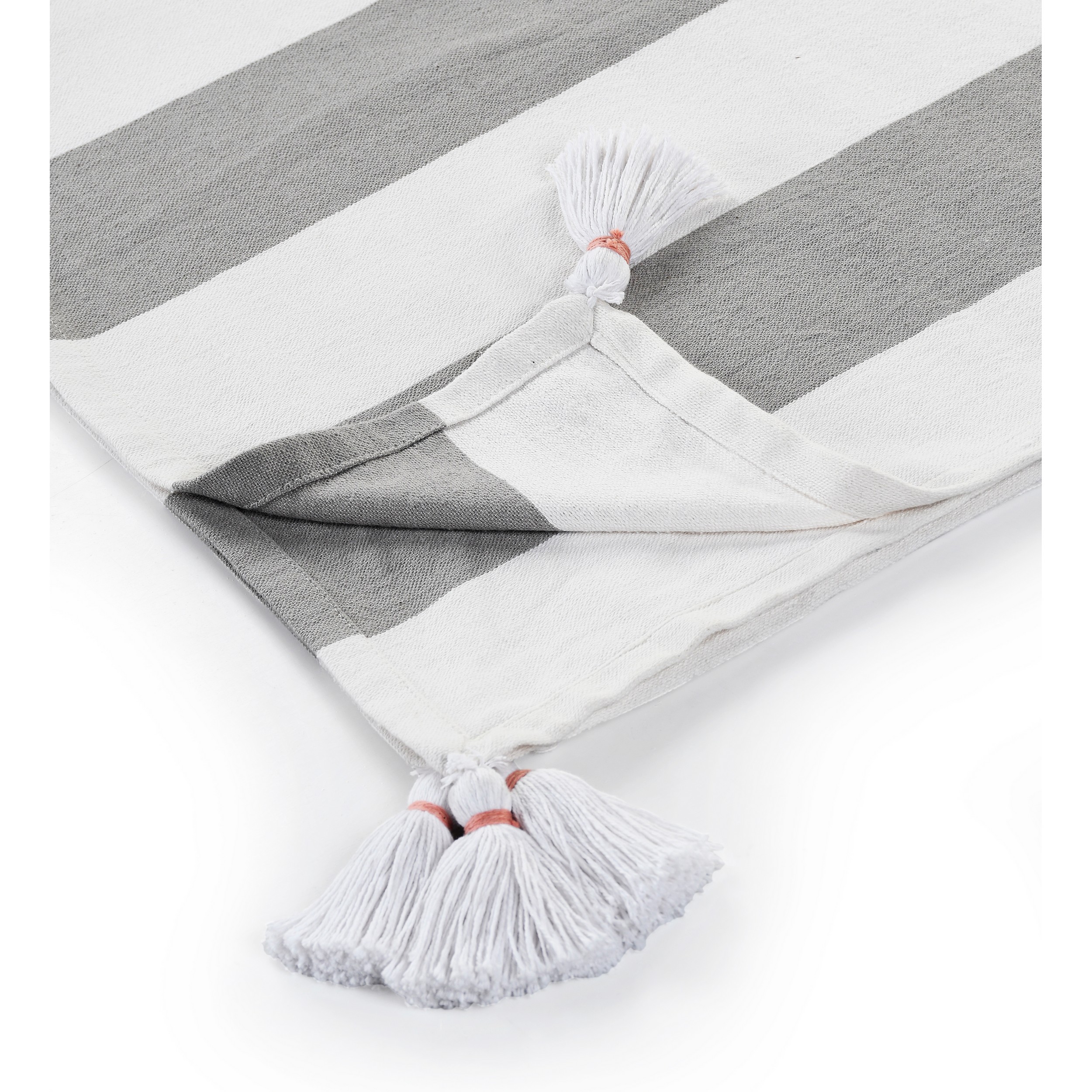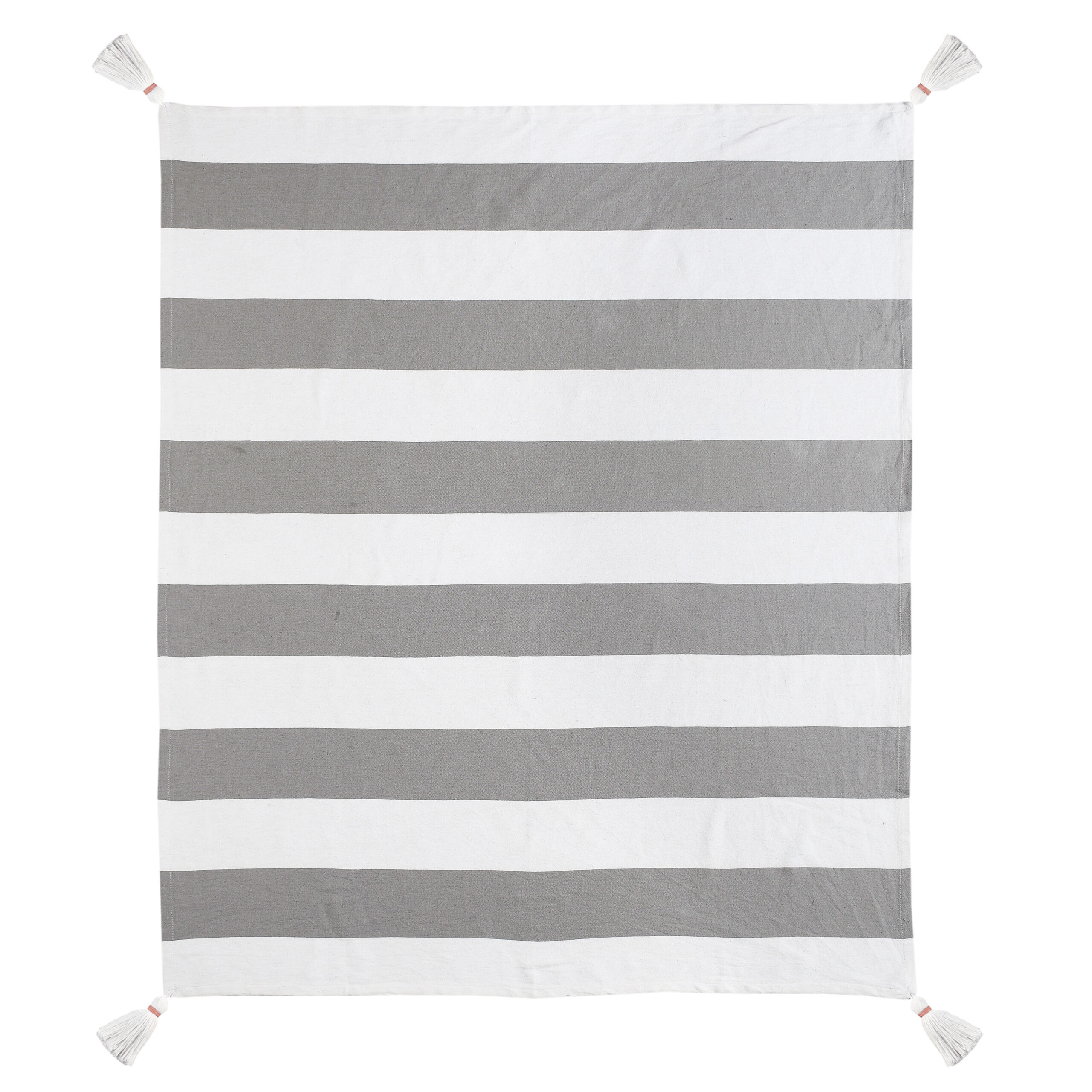 Designed with a balance of leisure and luxury in mind, this everyday accent merges well with multiple decor styles from modern to coastal to farmhouse; this addition is a neutral necessity for your home or office. Stand alone or layer with other accents, this throw brings comfort and style to your space in light gray and white tones featuring rich bold stripes and finishing corner tassels. Bring fashion and function into your home by cozying up or draping over a chair, sofa, couch, or bed.