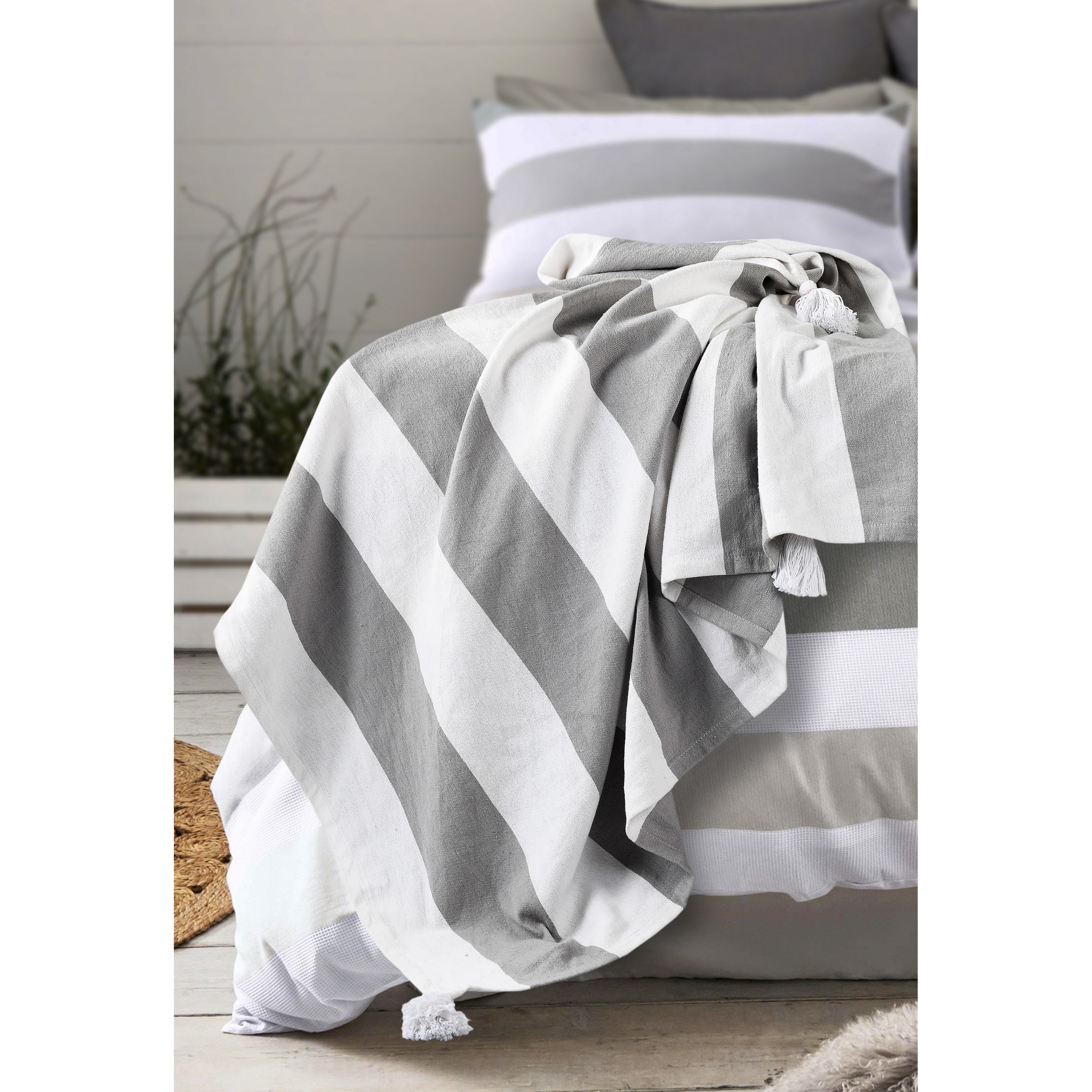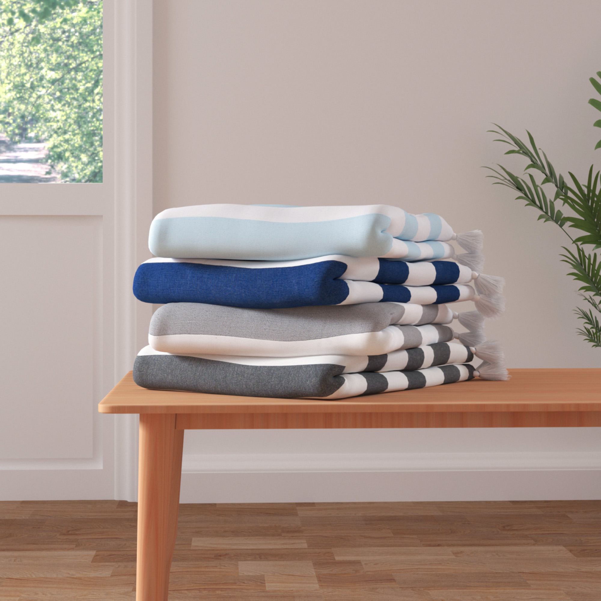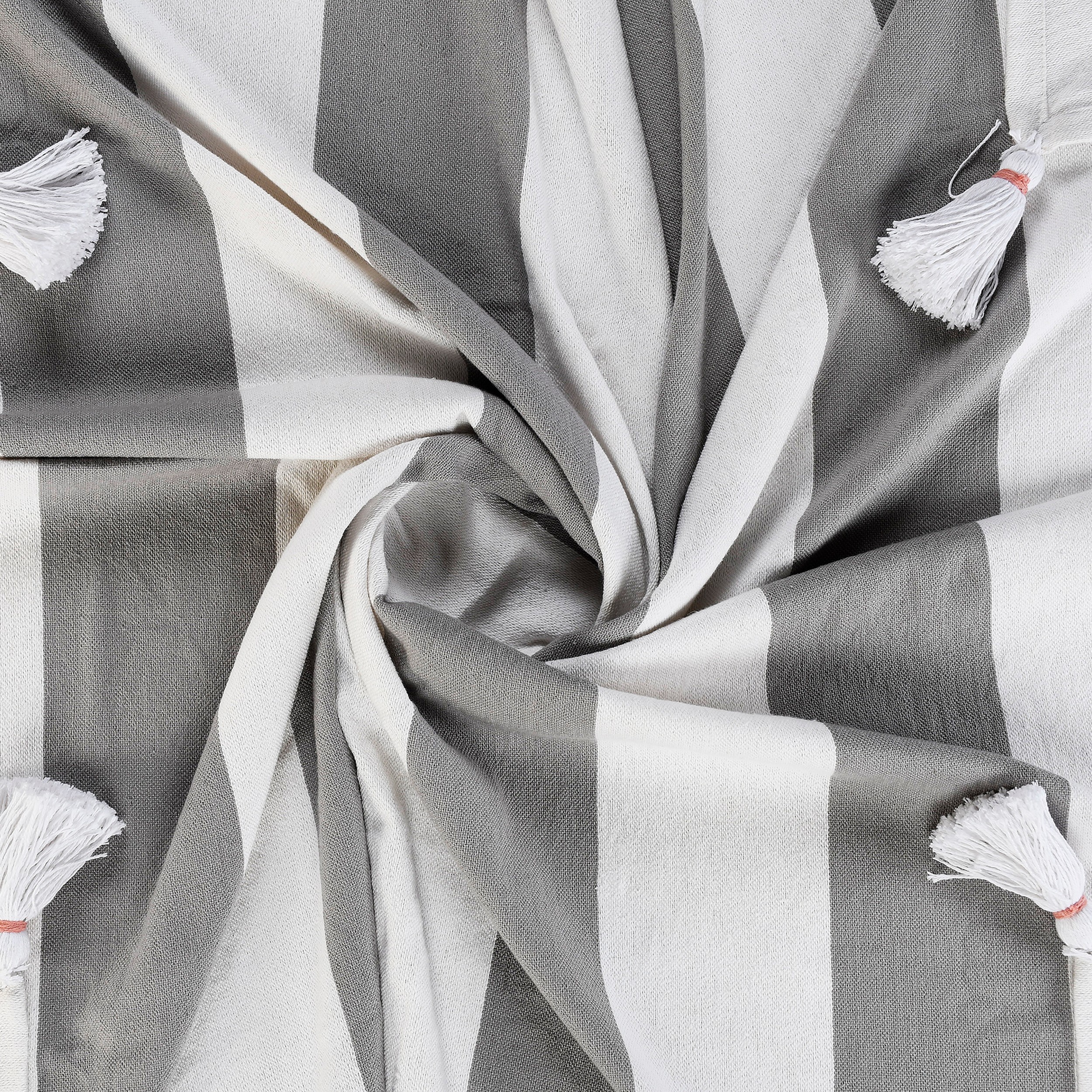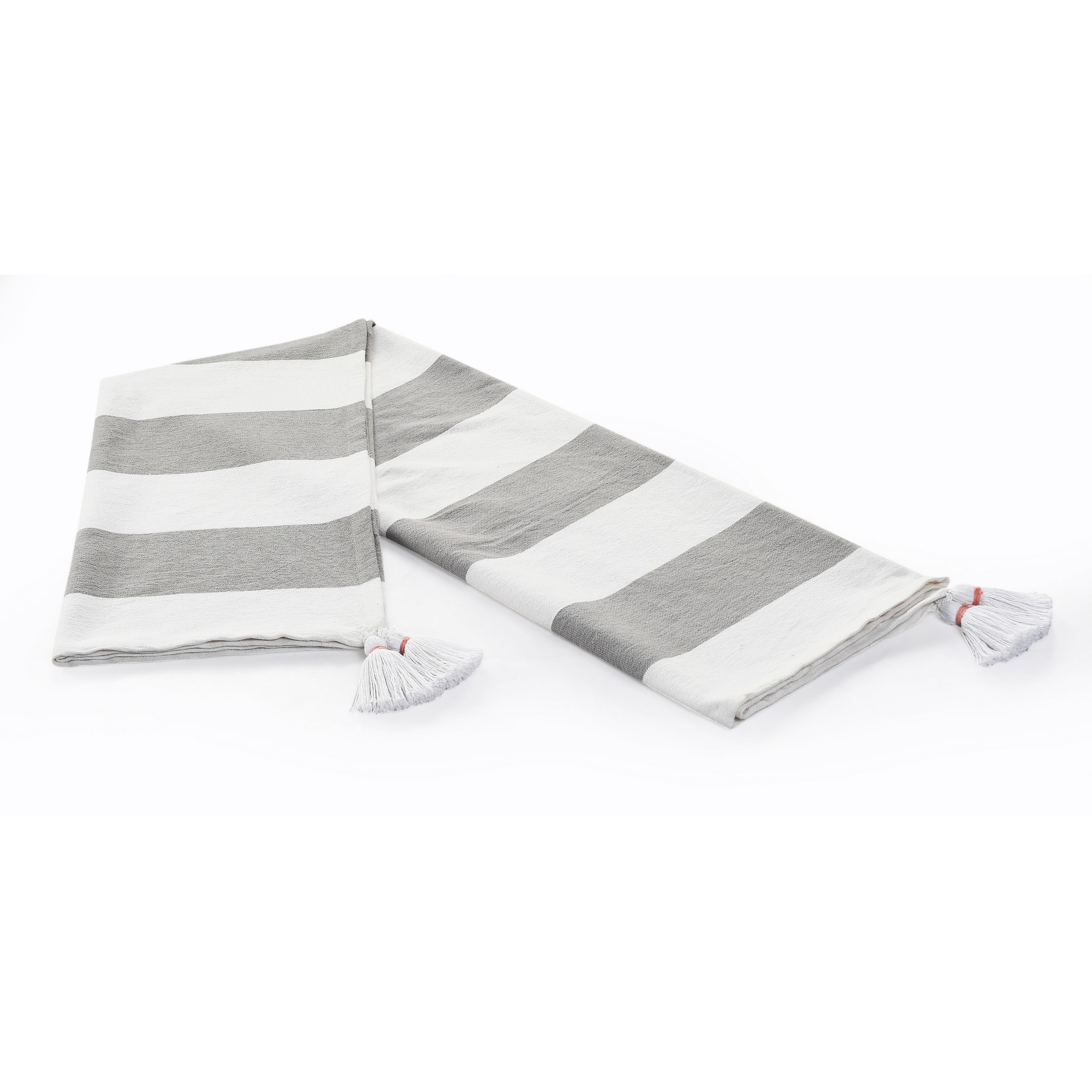 Designed with a balance of leisure and luxury in mind, this everyday accent merges well with multiple decor styles from modern to coastal to farmhouse; this addition is a neutral necessity for your home or office. Stand alone or layer with other accents, this throw brings comfort and style to your space in light gray and white tones featuring rich bold stripes and finishing corner tassels. Bring fashion and function into your home by cozying up or draping over a chair, sofa, couch, or bed.