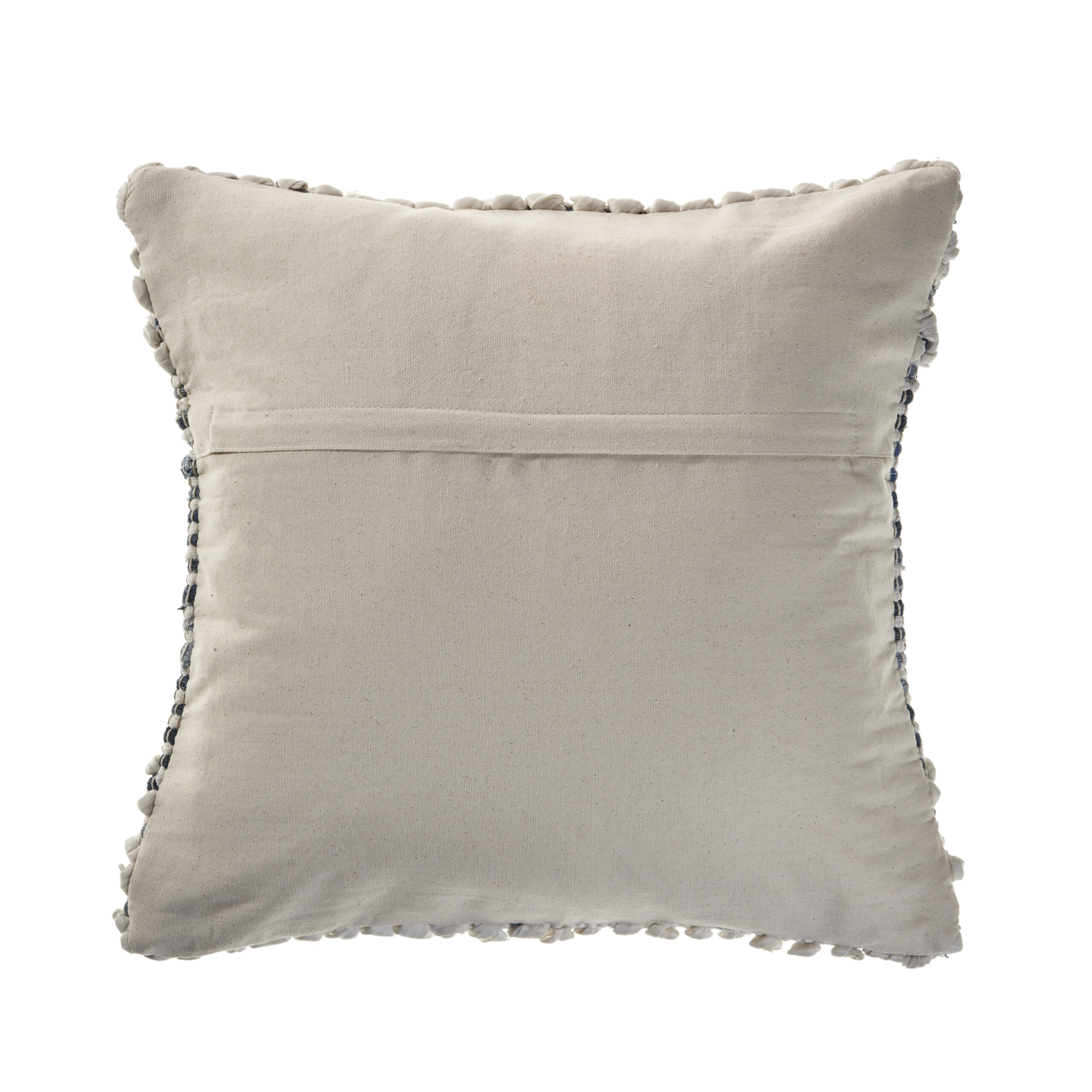 Designed to thrill, our pillow cover will add intricate mastery and eye pleasing designs to any room. Combine delicately stitched geometric patterns with soft to the touch textures to make an eye-catching centerpiece for your pillow cover. With bold blue and navy alongside crisp ivory, this piece can be placed within a variety of different style environments. Hand-made with the customer in mind, there is no compromise of comfort and style with this easy to use pillow cover.