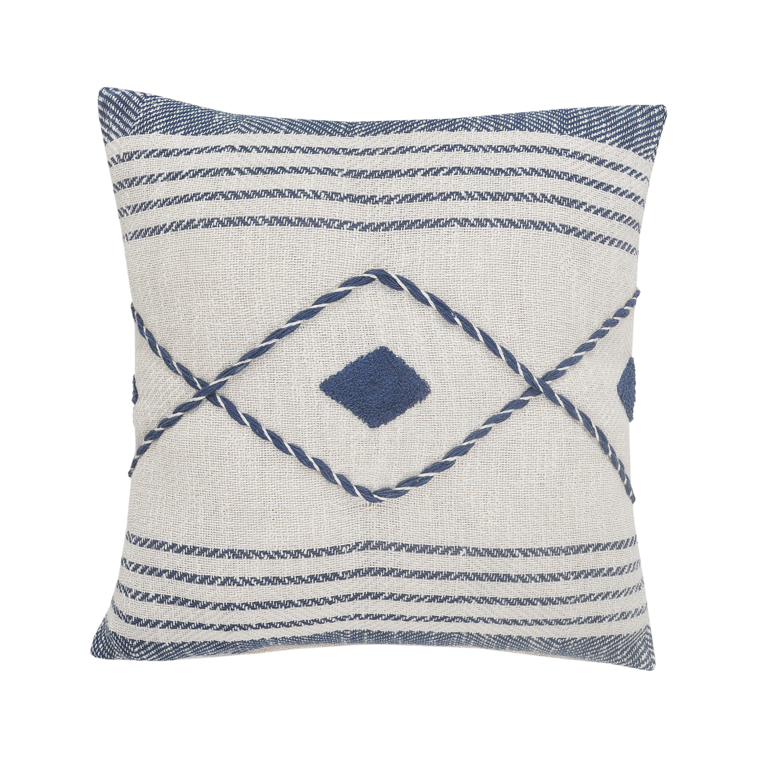 Designed to enhance any space, this pillow cover features a striped and diamond pattern that adds intricate detail and visual interest to your room. Perfect for a couch, bed, or bench, it brings both style and comfort to your living space. Ideal for coastal or contemporary interiors, it serves as a cohesive accent that elevates your decor. Handcrafted with care, this pillow cover combines durability, ease of use, and timeless design.