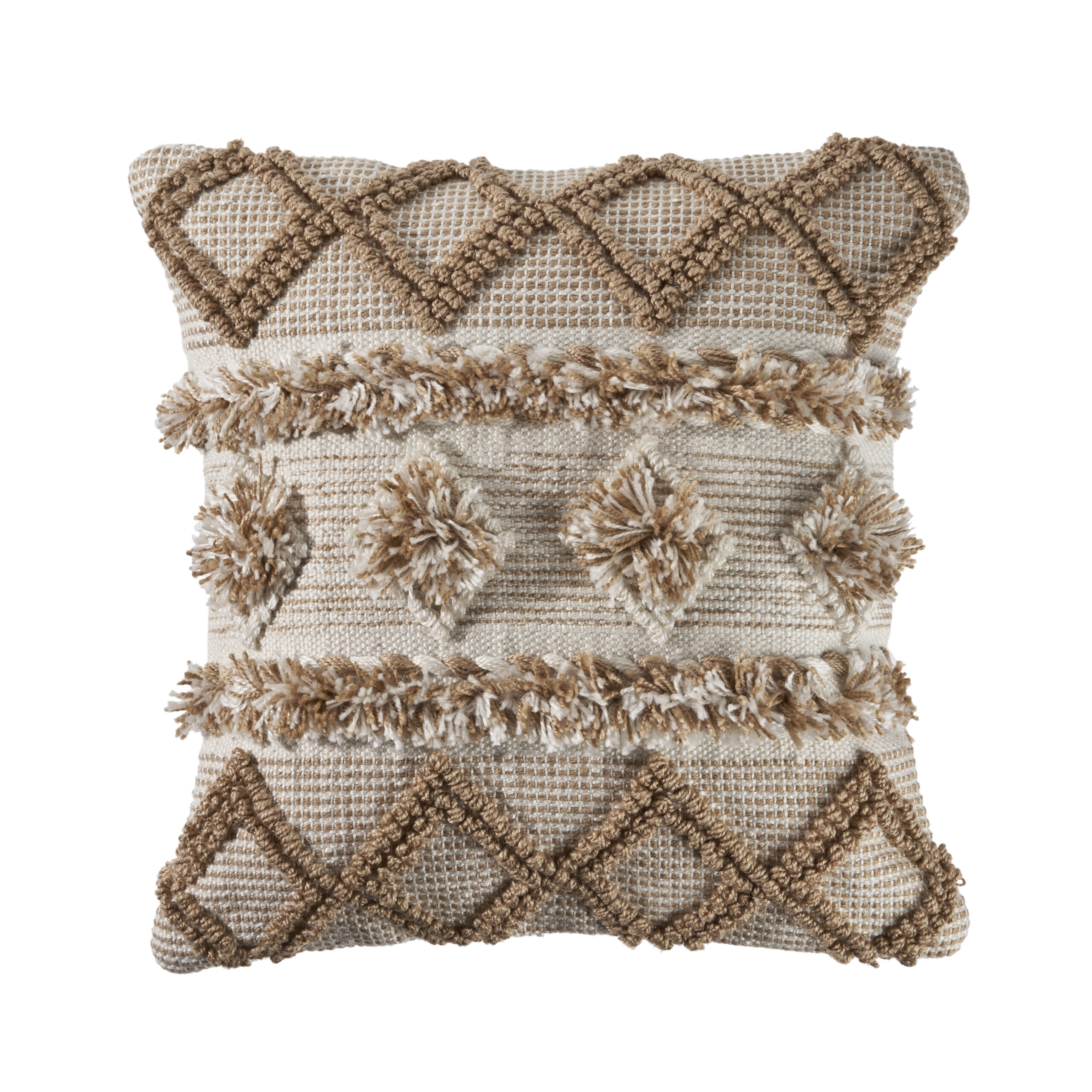 Designed to thrill, our pillow cover will add intricate mastery and eye pleasing designs to any indoor or outdoor space. This particular addition dwells perfectly on a comfy couch, bed, or bench in your living room, patio, or bedroom. This pillow is a wonderful neutral addition to a variety of styles. The textured portions are soft to the touch and merge well with a variety of different pieces. Handcrafted with the customer in mind, there is no compromise of comfort and style with this easy to use pillow cover.