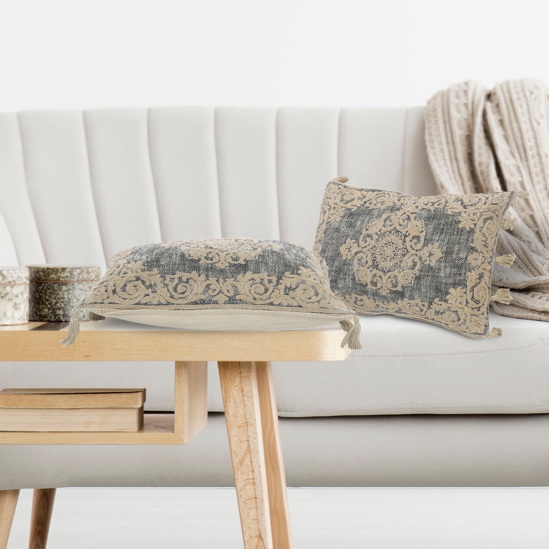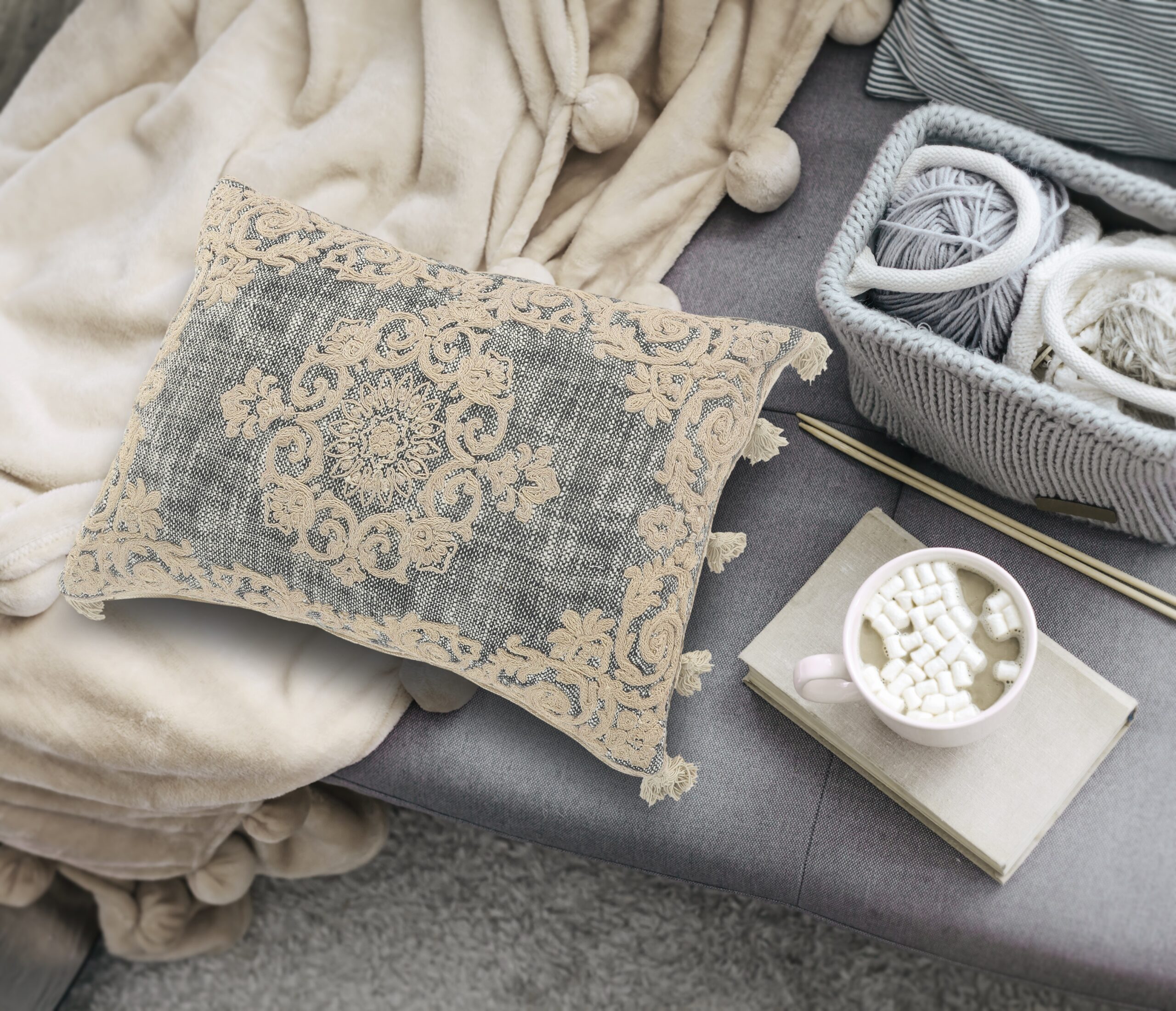 Designed to thrill, our pillow collection will add intricate mastery and eye pleasing designs to any room. This pillow addition dwells perfectly on a comfy couch, bed, or decorative bench. This pillow features an intricate medallion and bordered design in a delightful cream gray coloring. It makes a great addition to a variety of spaces no matter your collection’s theme. Handcrafted with the customer in mind, there is no compromise of comfort and style with the pillow line we create.