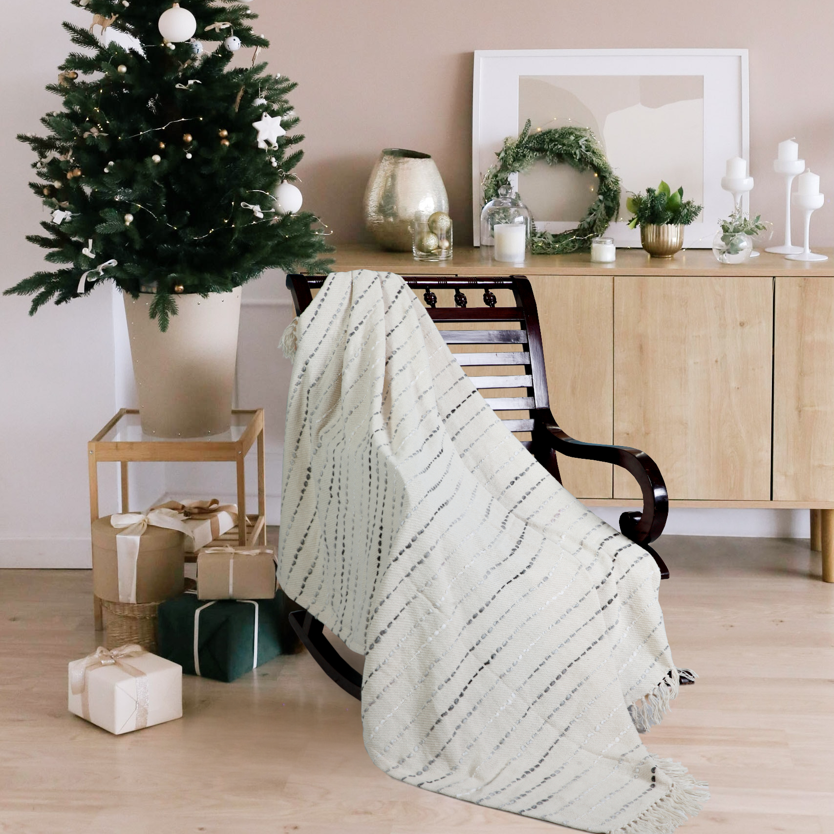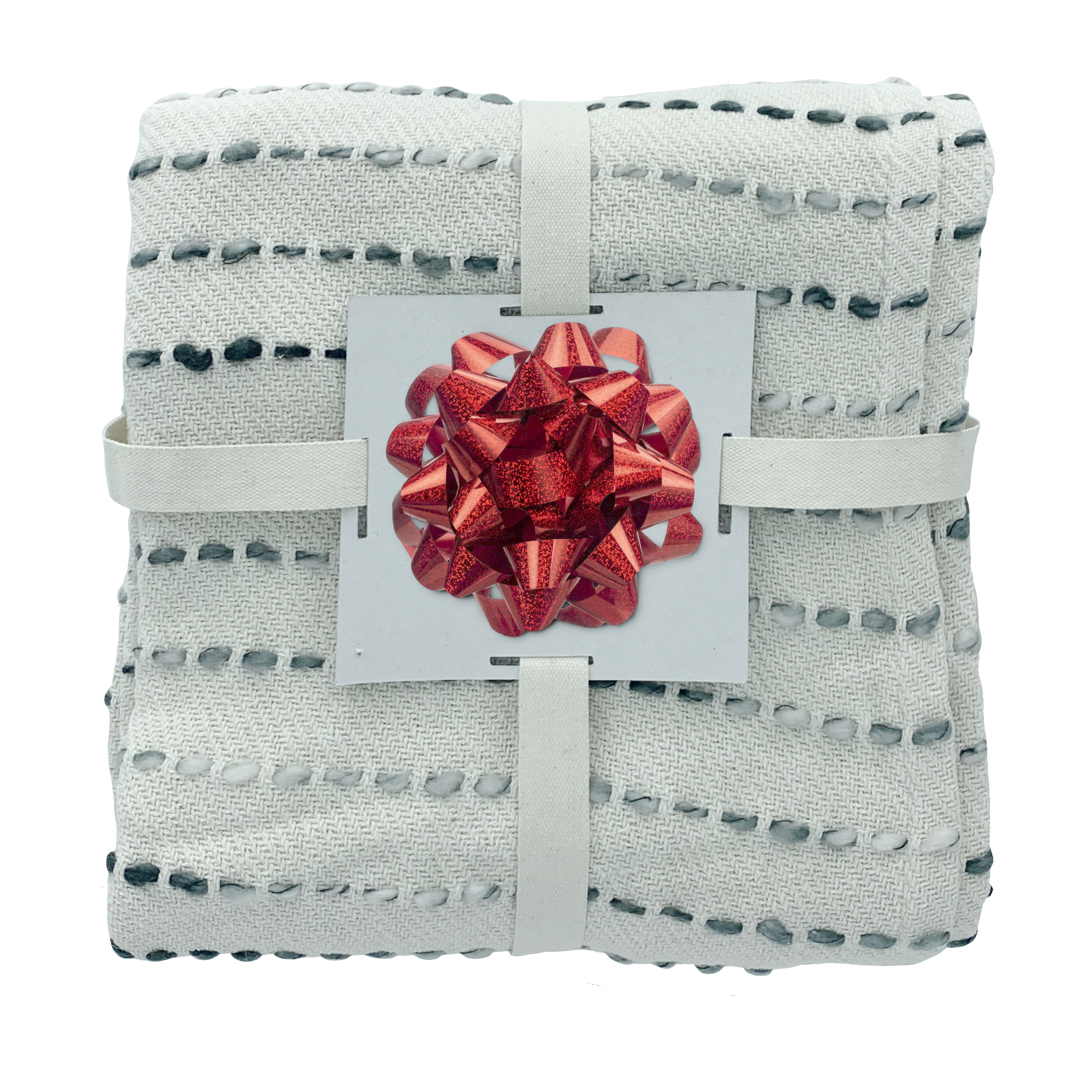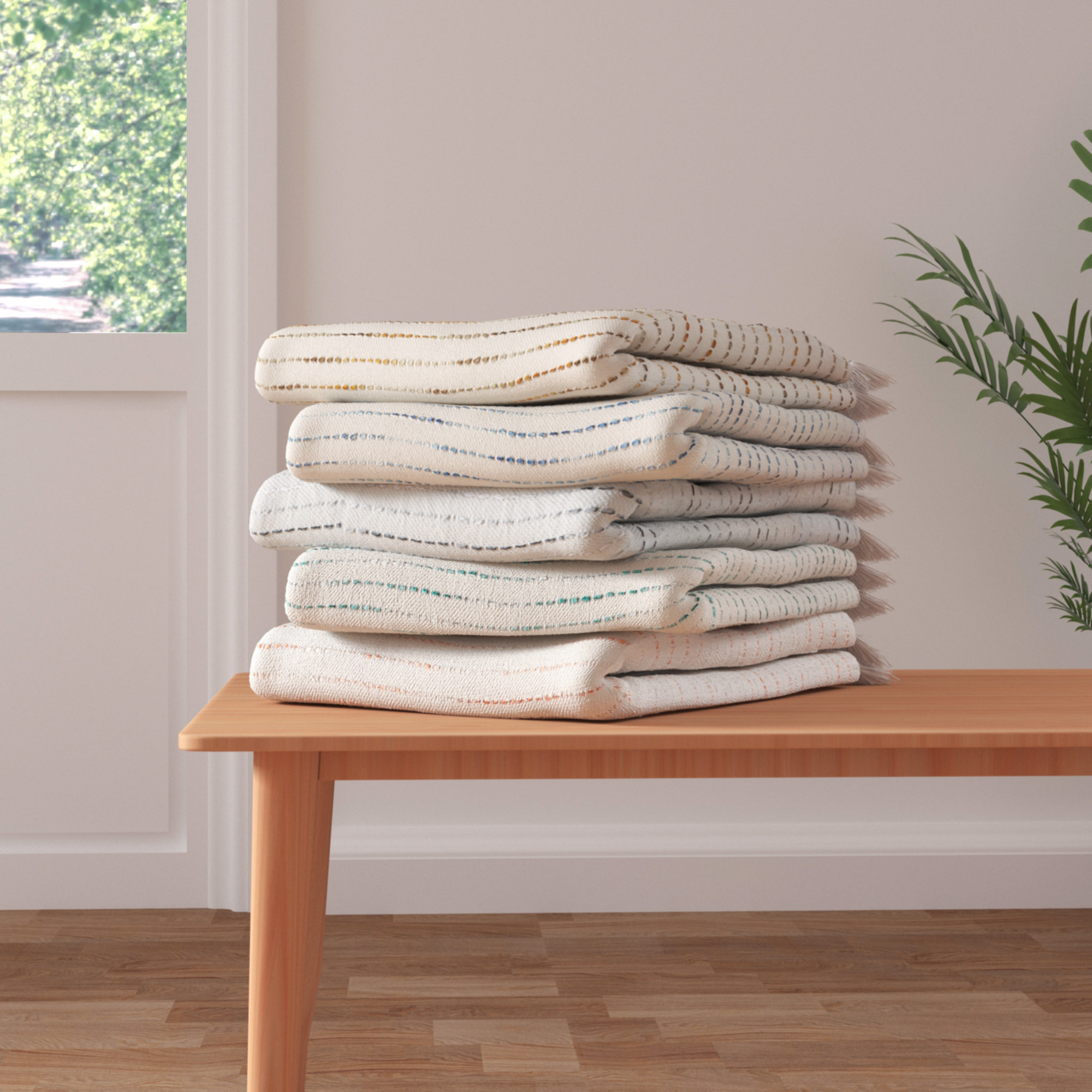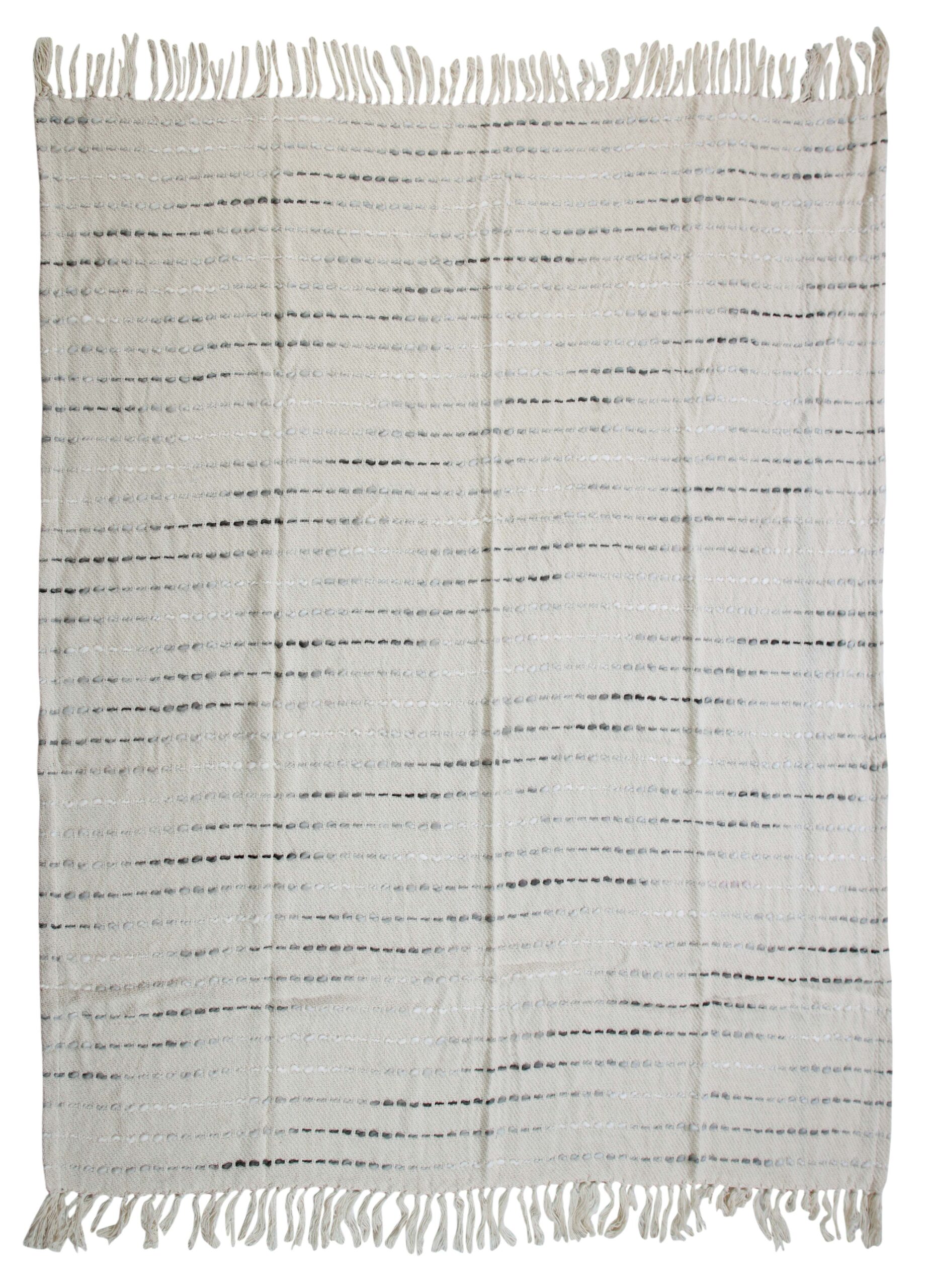 Add a cozy and stylish touch to your home with this handwoven throw blanket. Made in India using a blend of 90% cotton and 10% polyester, this blanket is both soft and durable. The embroidered striped design and fringe accents add a touch of elegance and texture to the piece. Whether you use it as a decorative accent or to snuggle up with on a chilly evening, this throw blanket is sure to become a favorite in your home.