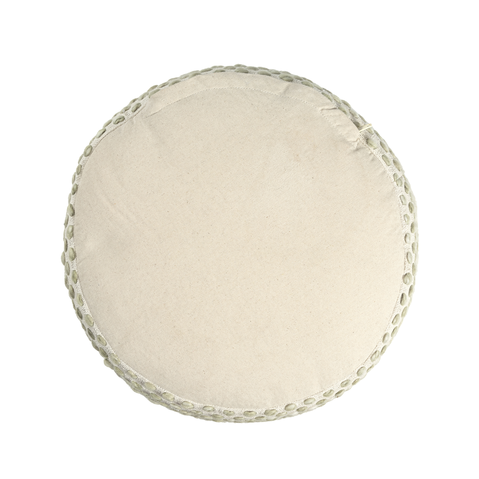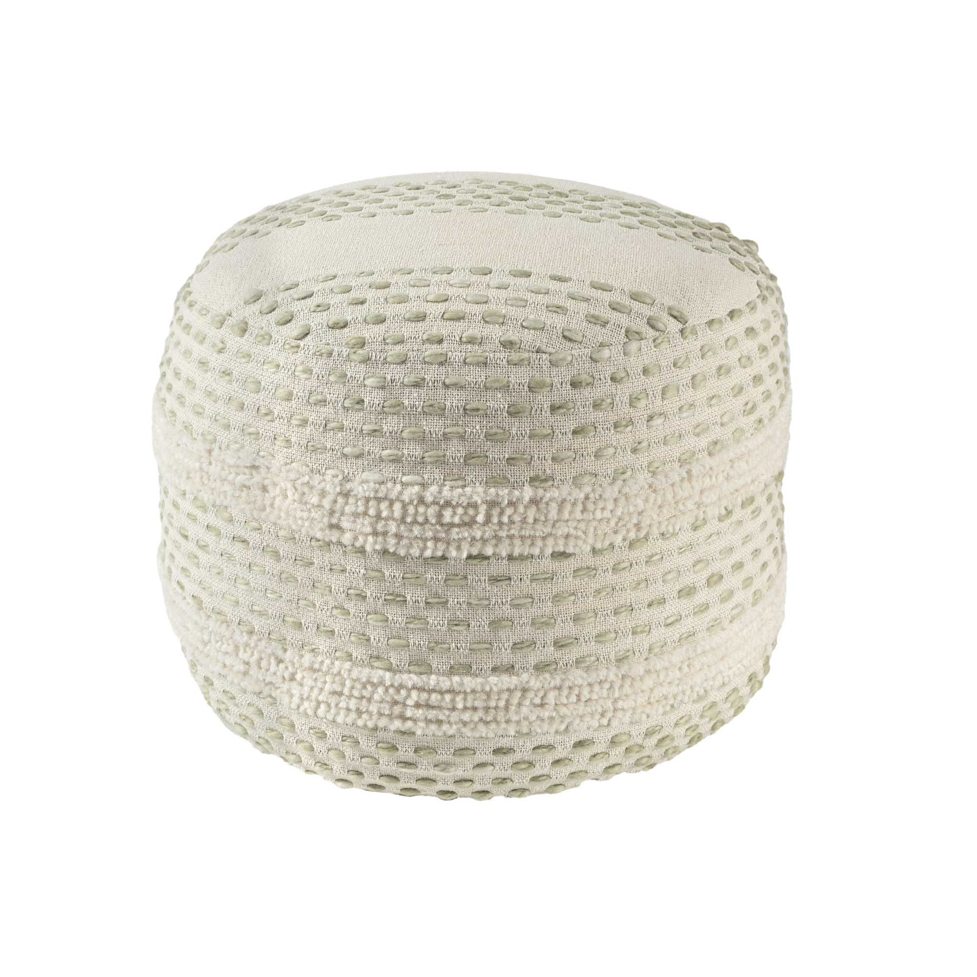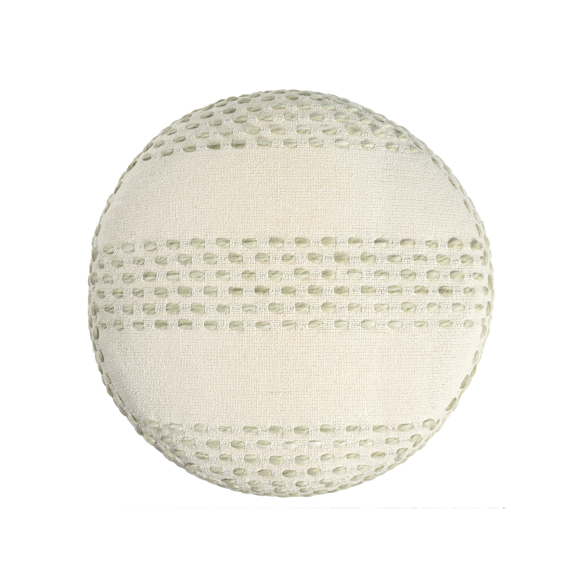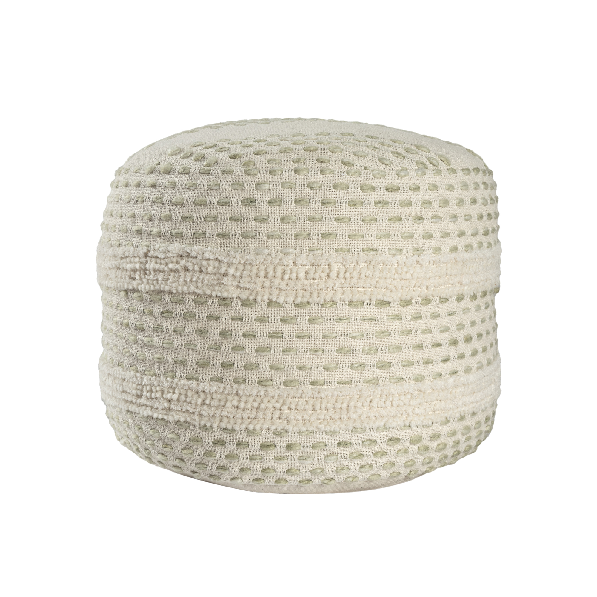 This small round pouf features a an ivory background with woven stripes in your choice of beige, navy blue, adobe, sage green, or blue. The fabric shell is double-lined and filled with EPS balls creating the perfect balance of support and comfort. Sturdy enough for use as a table but soft enough to function as a comfortable seat. Measuring 18″ wide and 16″ high, this versatile piece is perfectly sized for living rooms, bedrooms, playrooms, apartments, and dorms.