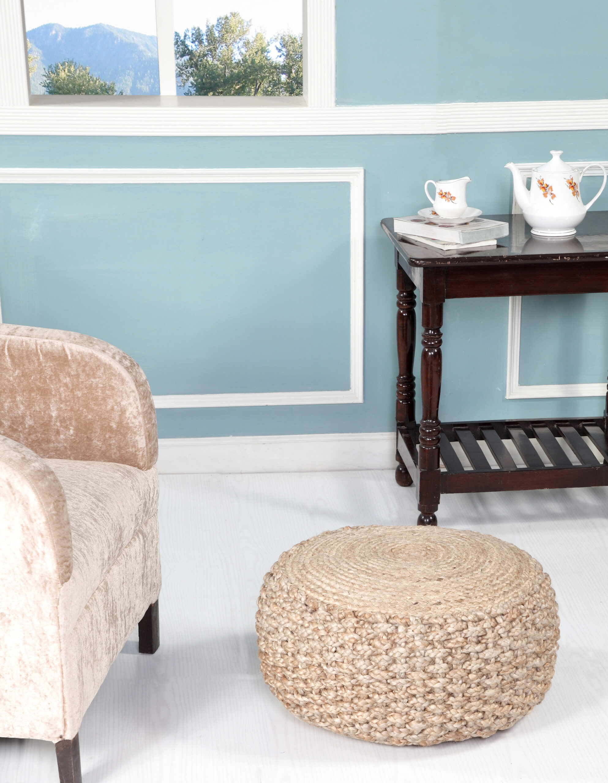 Add a touch of sustainable elegance to your home with this decorative indoor pouf. Handmade in India using 100% jute and filled with EPS balls, it provides comfortable support for up to 300 lbs. The natural texture of the jute adds an all-natural touch to any space, making it a perfect addition to farmhouse, tropical, or bohemian-themed decor. This charming pouf is both stylish and versatile, offering a practical seating option for any room.
