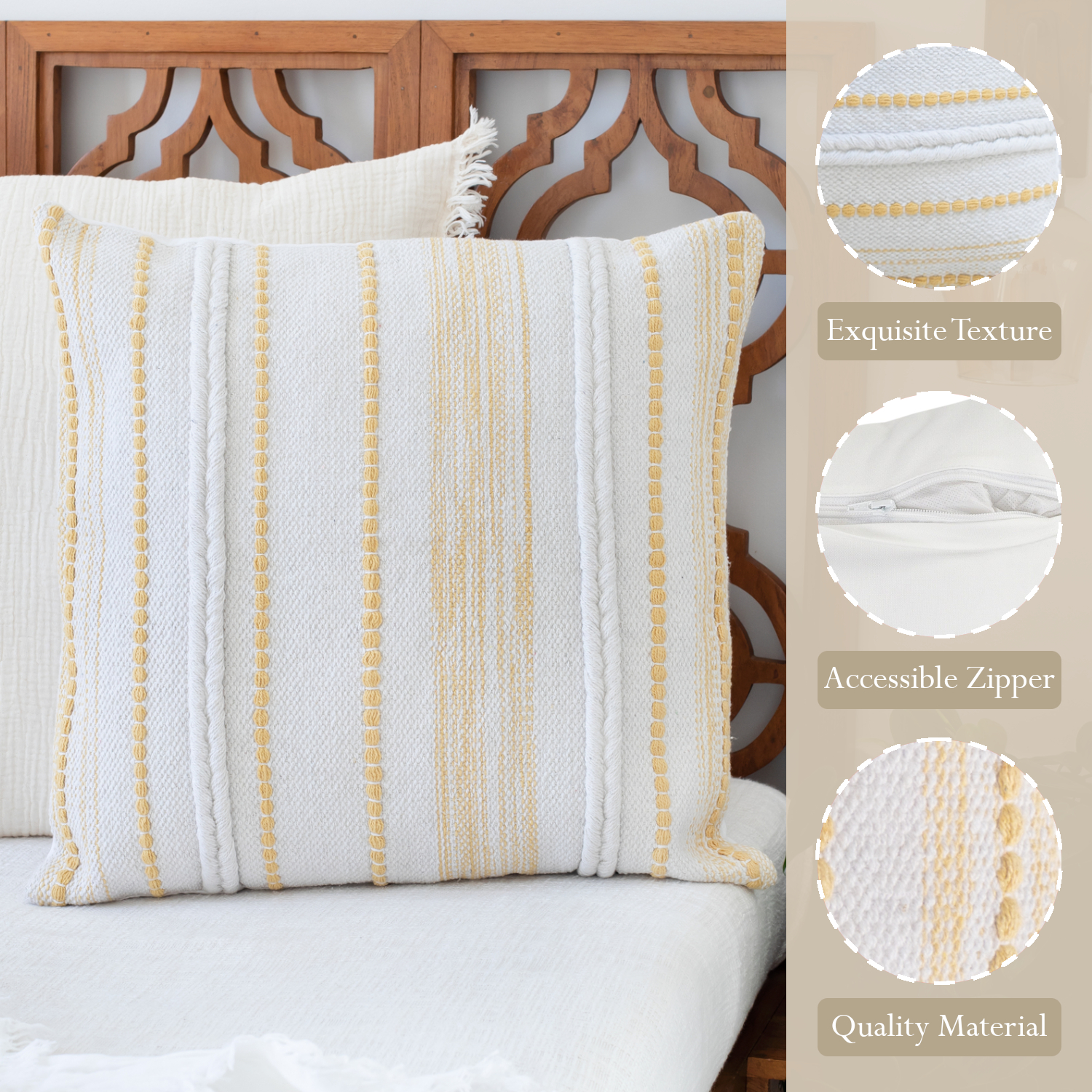 Designed to thrill, our pillow collection will add intricate mastery and eye pleasing designs to any room. This particular addition dwells perfectly on a comfy couch, bed, or bench with its well-toned coloring and textured stripe design. Prop yourself up in style and use it for eye pleasing interior design. Handcrafted with the customer in mind, there is no compromise of comfort and style with the pillow line we create.