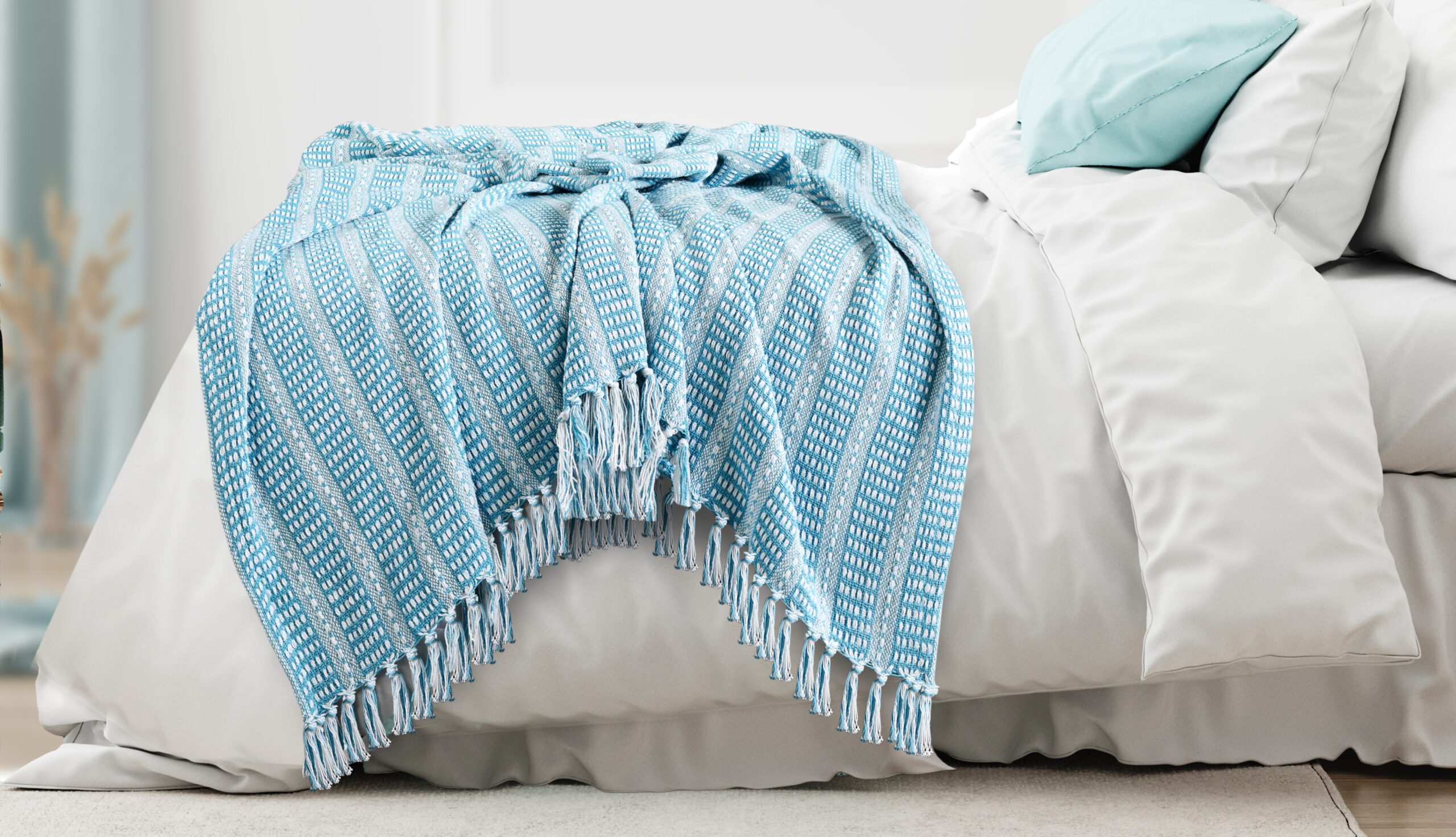 Designed with a balance of leisure and luxury in mind, this everyday accent merges well with multiple decor styles from modern to coastal to farmhouse; this piece is an easy addition to your home or office. Stand alone or layer with other accents, this throw brings comfort and style to your space with an intricately woven striped design and finished with fringe for a touch of texture. Bring fashion and function into your home by cozying up or draping over a chair, sofa, couch, or bed.