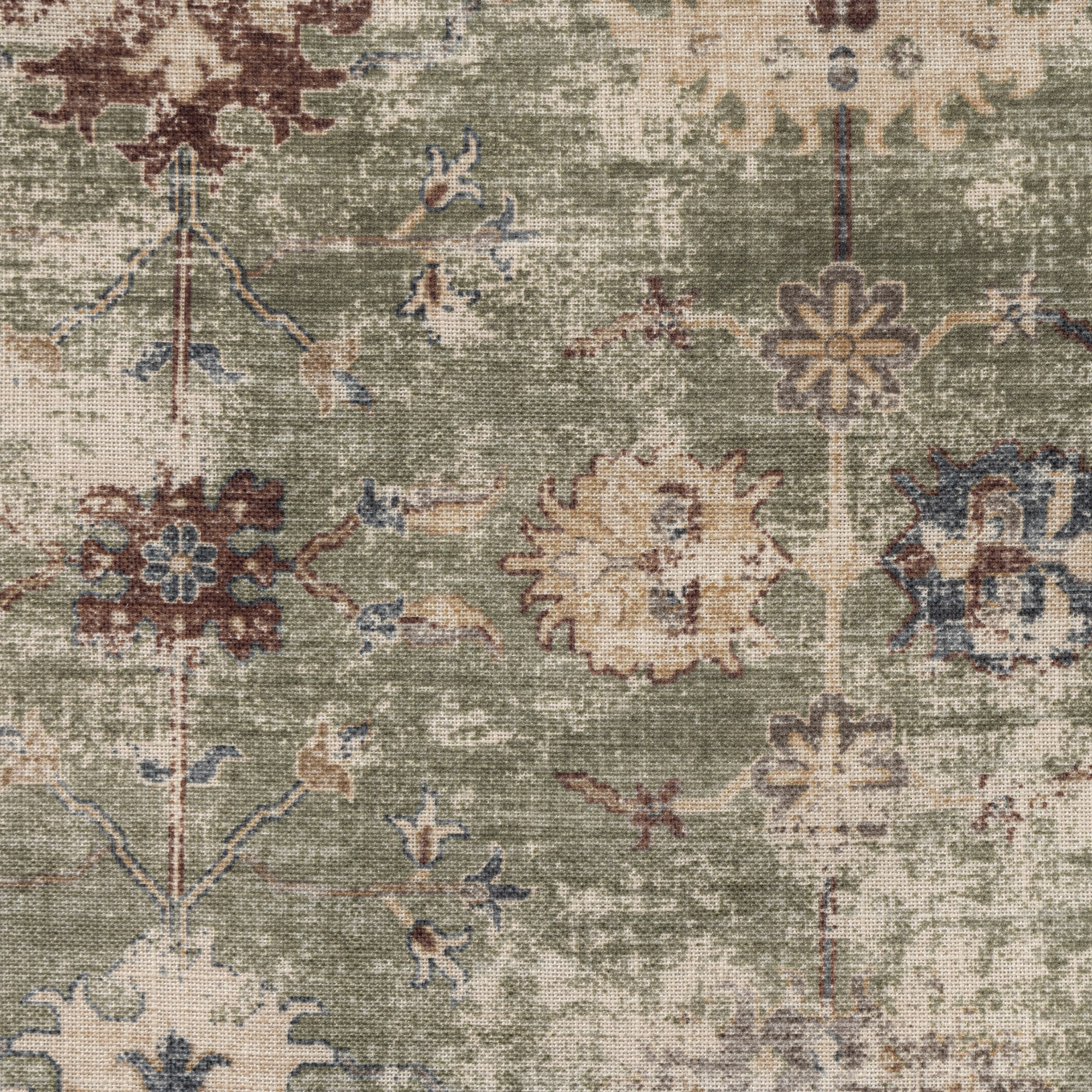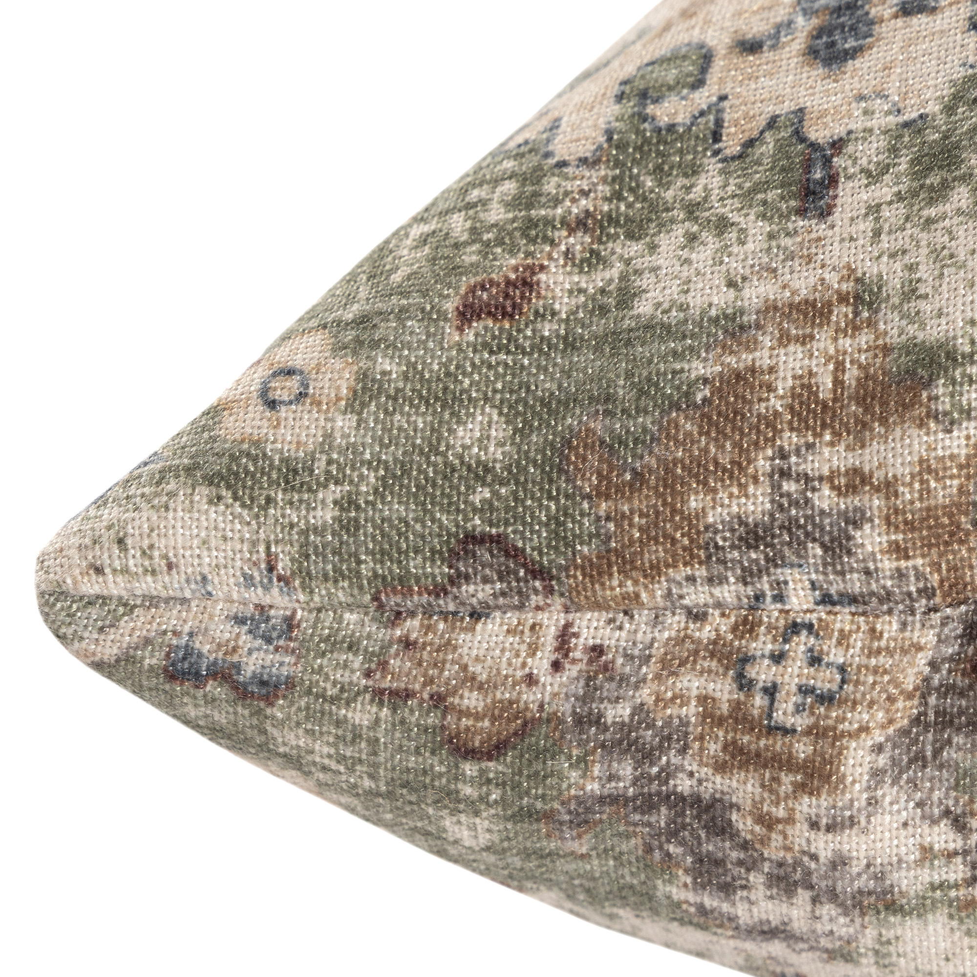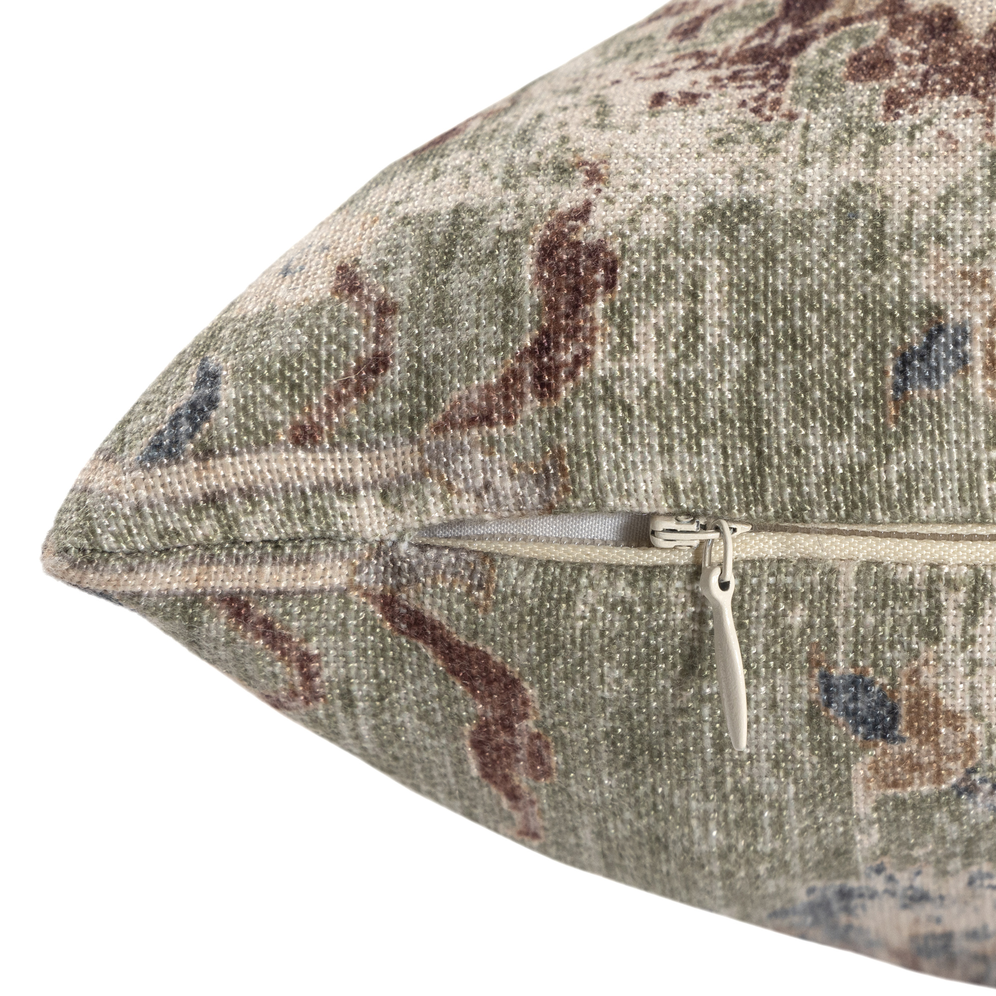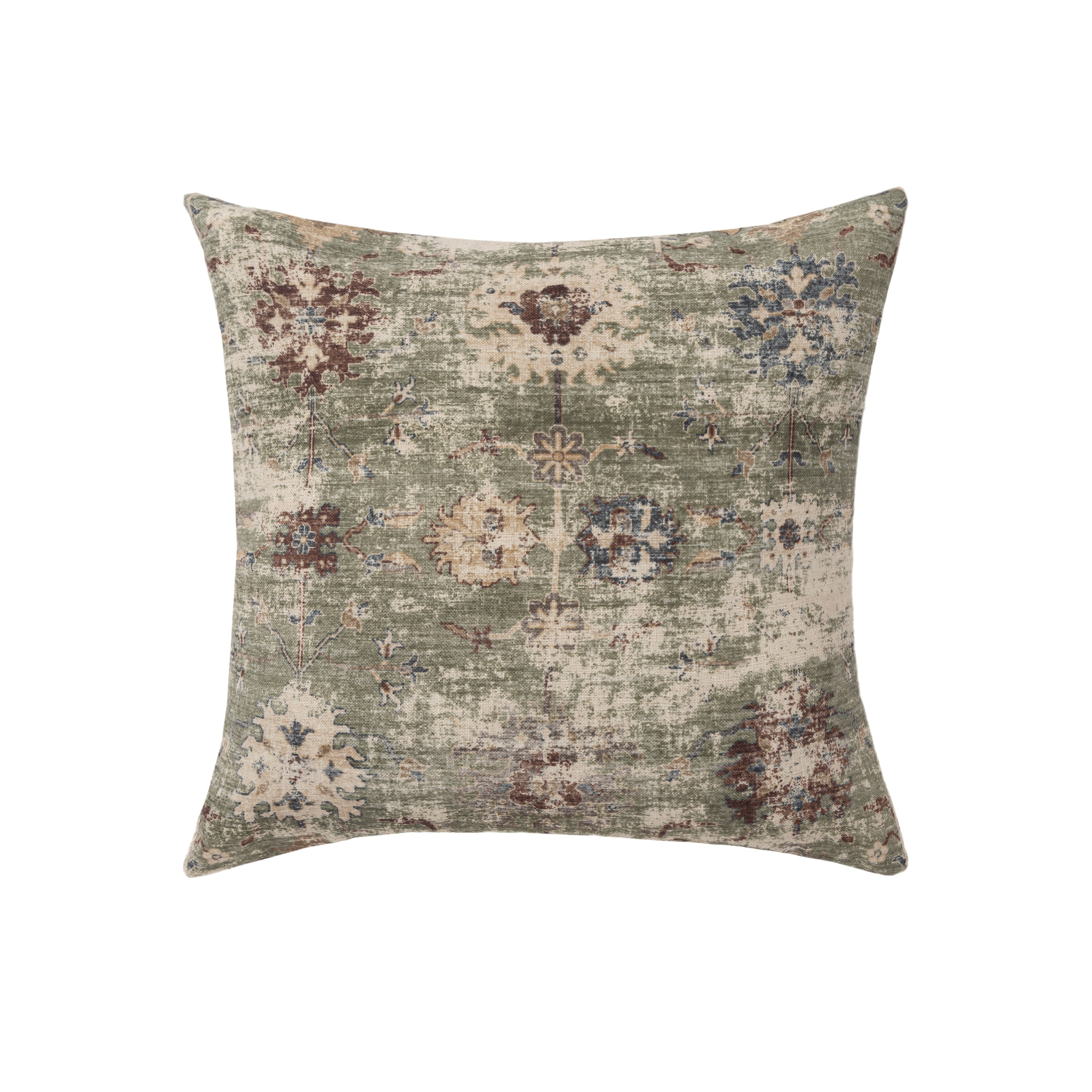 This reversible power-loomed polyester pillow cover features a distressed classic floral design in gray, green, and beige that complements rustic, traditional, and bohemian decor styles. The natural durability of the polyester construction ensures longevity, while the zipper closure allows for easy insert placement (insert not included).