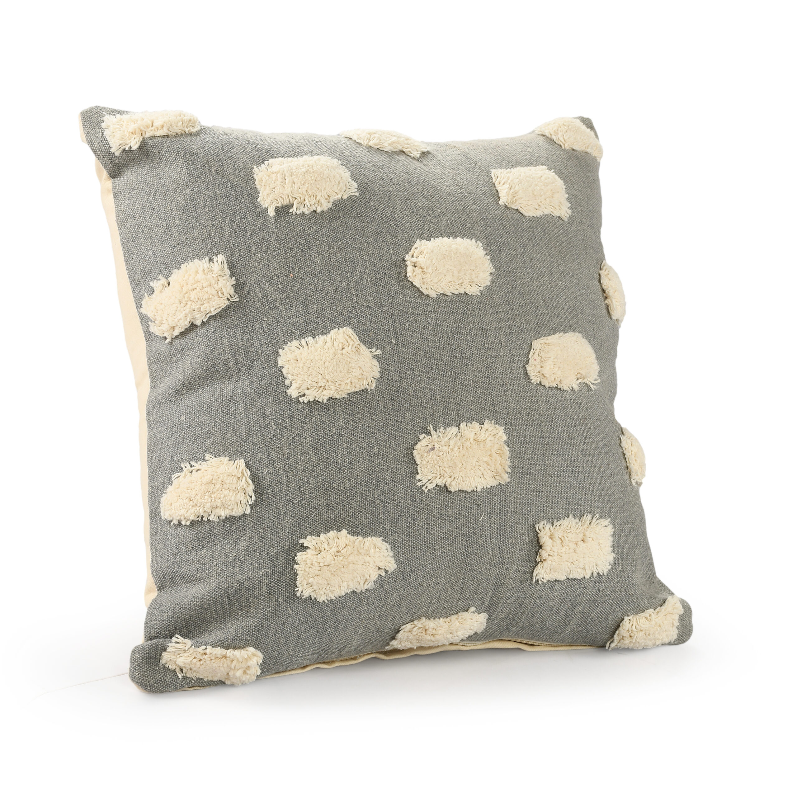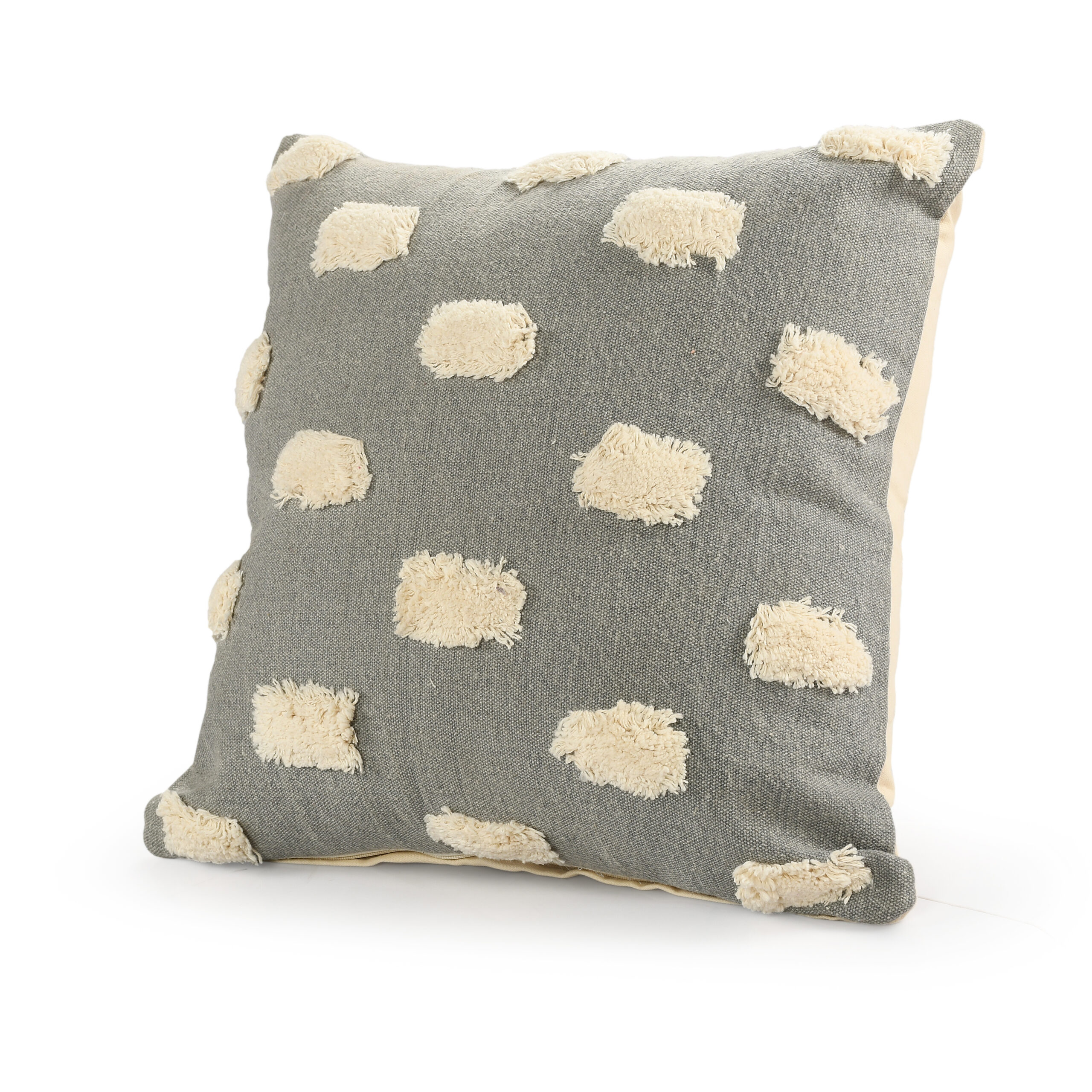 Designed with a balance of leisure and luxury in mind, this everyday Textured Pom Pom Polka Dot Throw Pillow merges well with multiple decor styles from modern to glam to boho-chic. This versatile pillow is a durable yet stylish neutral addition with its distressed solid stonewash cotton canvas fabric front and textured dot design. Set a fashionable foundation while maintaining philosophies of affordability and hand-crafted quality.