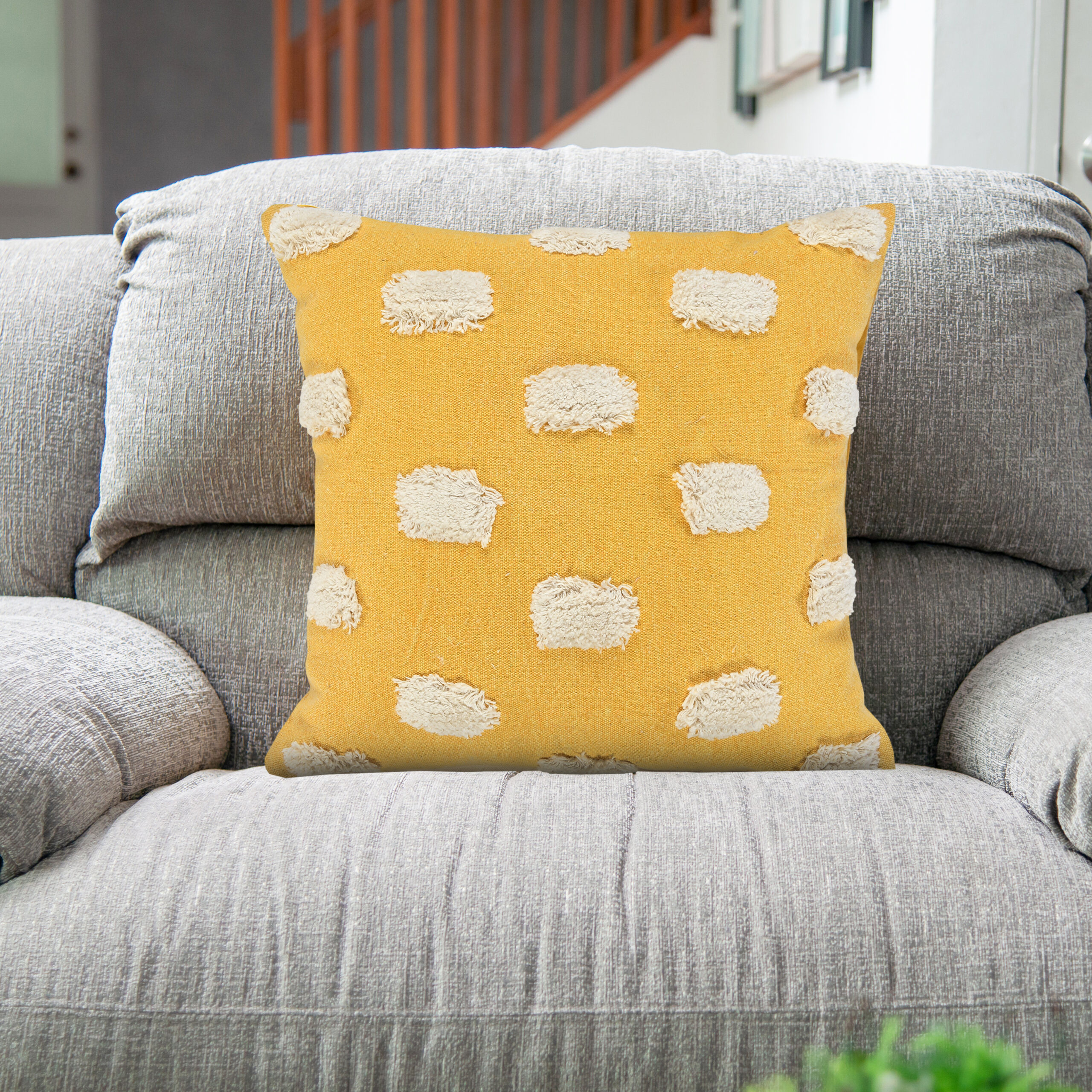 Designed with a balance of leisure and luxury in mind, this everyday Textured Pom Pom Polka Dot Throw Pillow merges well with multiple decor styles from modern to glam to boho-chic. This versatile pillow is a durable yet stylish neutral addition with its distressed solid stonewash cotton canvas fabric front and textured dot design. Set a fashionable foundation while maintaining philosophies of affordability and hand-crafted quality.
