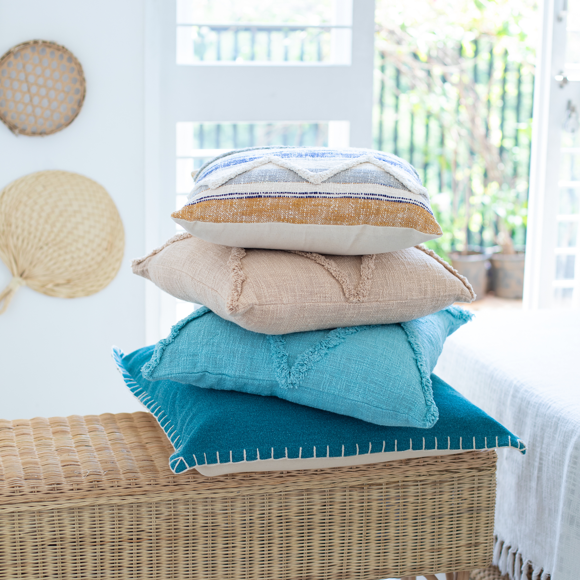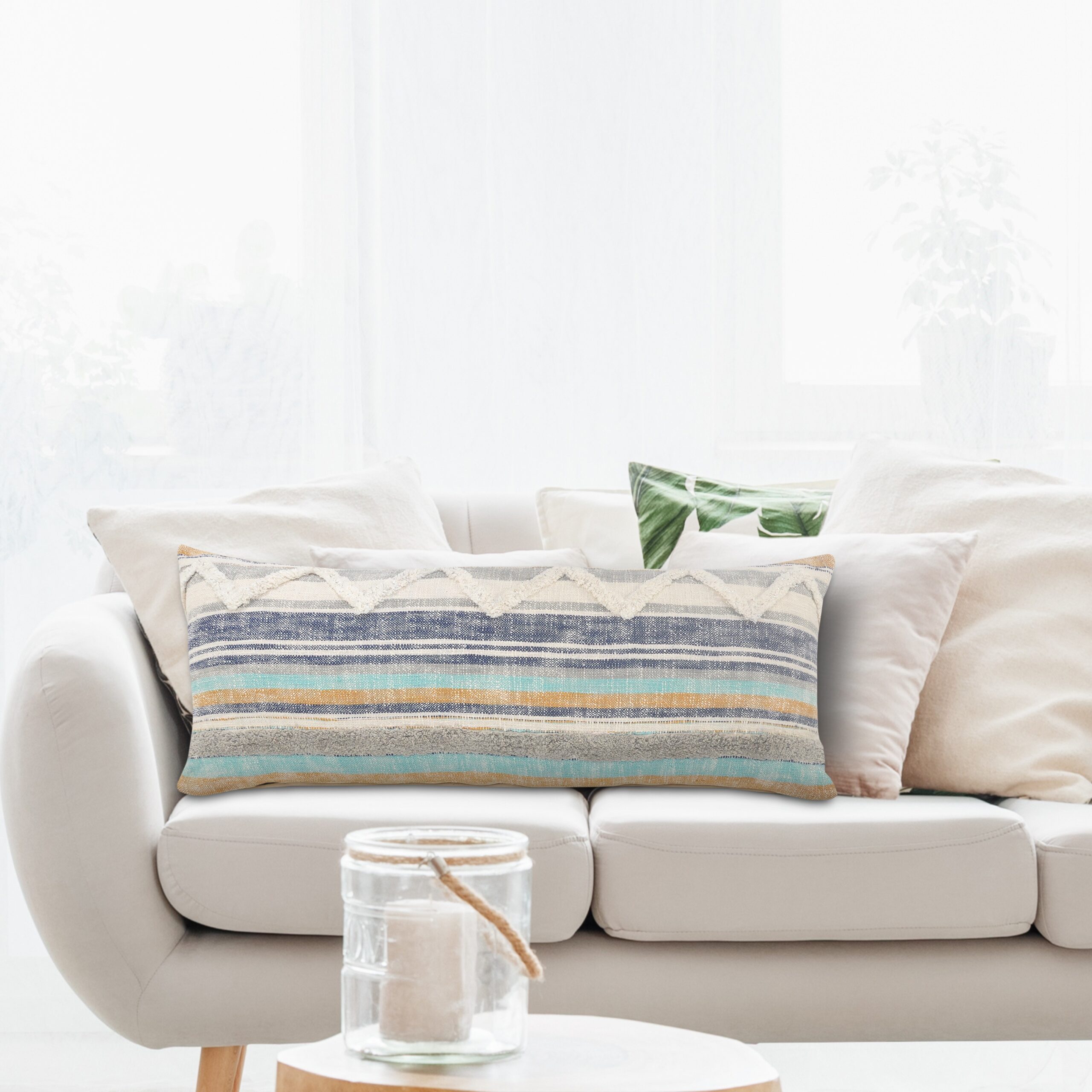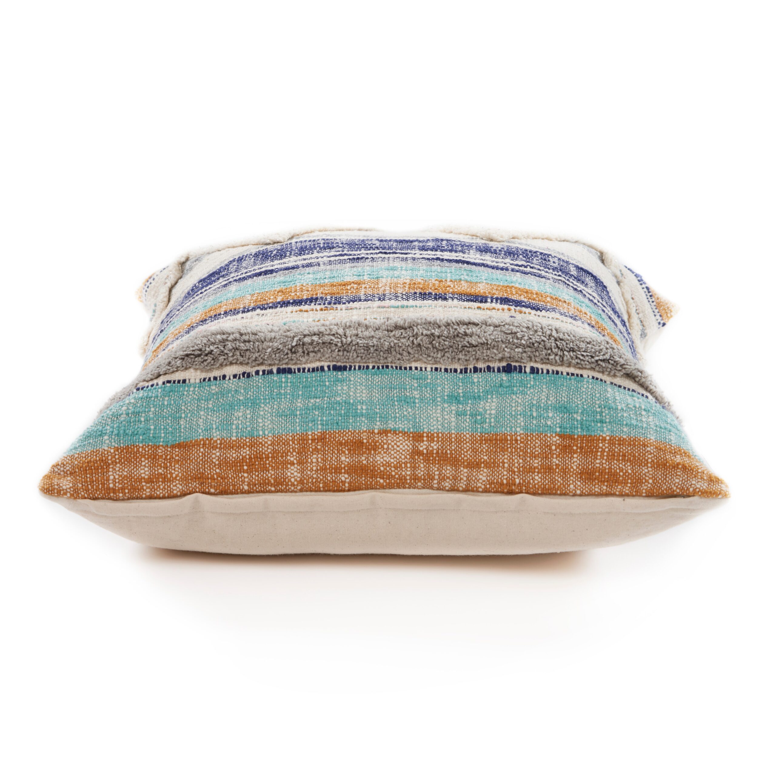 Designed to thrill, our pillow cover will add intricate mastery and eye pleasing designs to any room. Bring this coastal classic home to add an eye catching centerpiece to your pillow cover. Whether on a bed, couch, bench, or chair, the possibilities are endless with this unique multicolored striped piece. Handcrafted with the customer in mind, there is no compromise of comfort and style with this easy to use pillow cover.