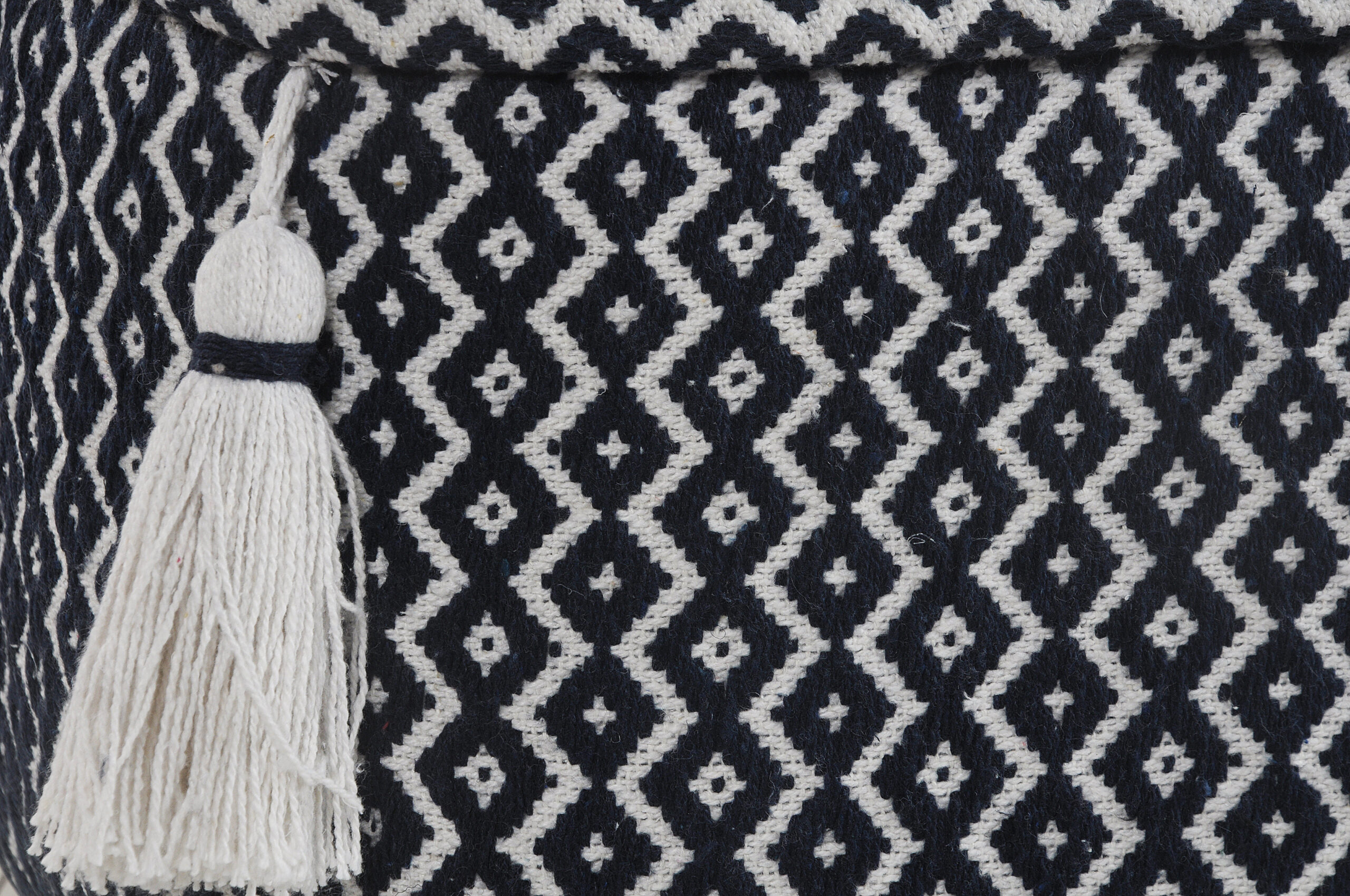 This classic coloring and geometric design is sure to thrill! Bring the versatility of our pouf collection home with you today. An easy addition to a variety of spaces with its functional storage, it’s amazing all the things this piece can do from being a quick seat, ottoman, or foot-rest. Flat-woven in India, this piece features delicate craftsmanship that will last for years to come. At LR Home, we believe in creating and making good energy. That’s why we deliver a trustworthy and sustainable product to our customers while also providing fair-trade and pay to our makers and their communities.