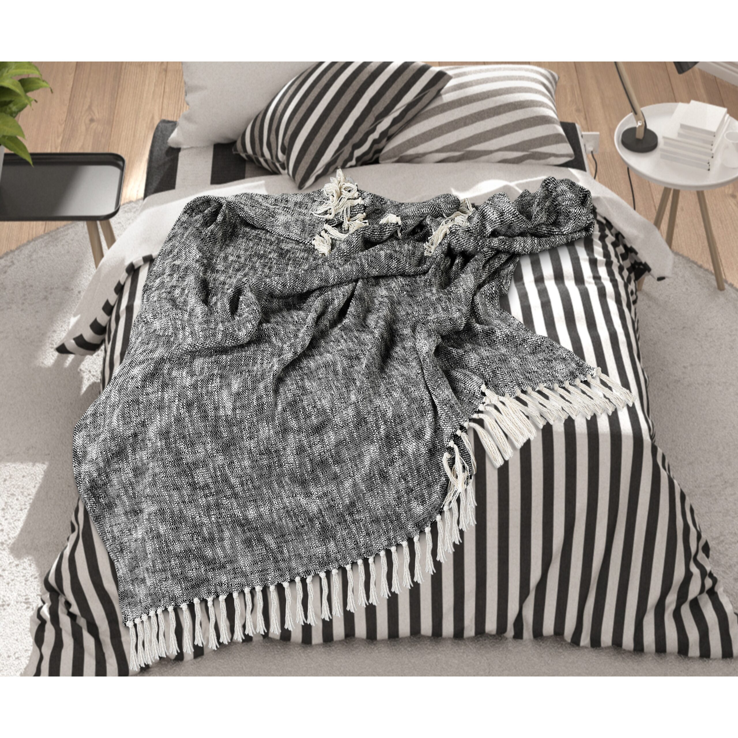 Designed with a balance of leisure and luxury in mind, this textured accent merges well with multiple decor styles from modern to bohemian to farmhouse. This piece is an easy addition to your home or office. Stand alone or layer with other accents, this throw brings comfort and style to your space with a distressed solid design finished with fringe for a touch of texture. Bring fashion and function into your home by cozying up or draping over a chair, sofa, couch, or bed.
