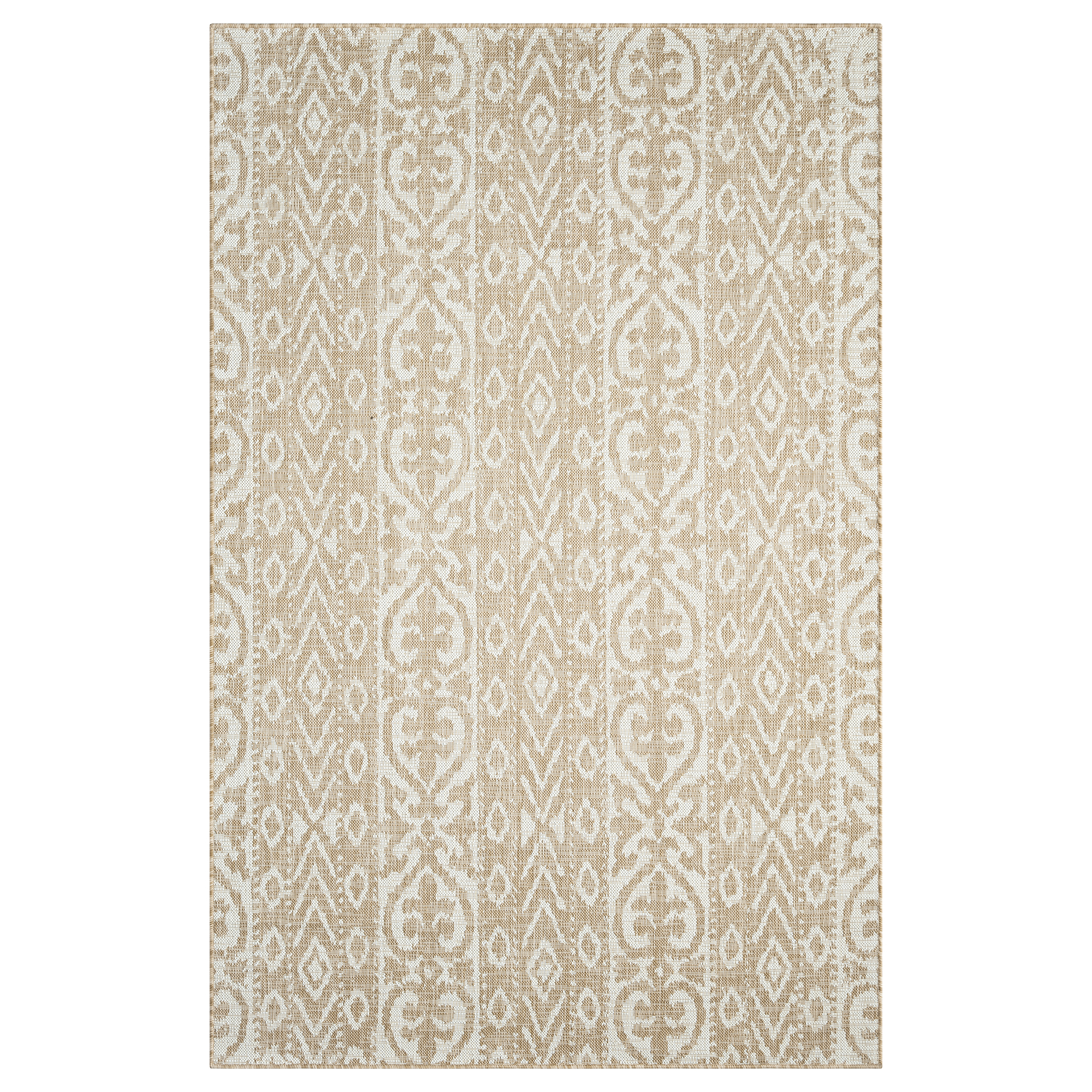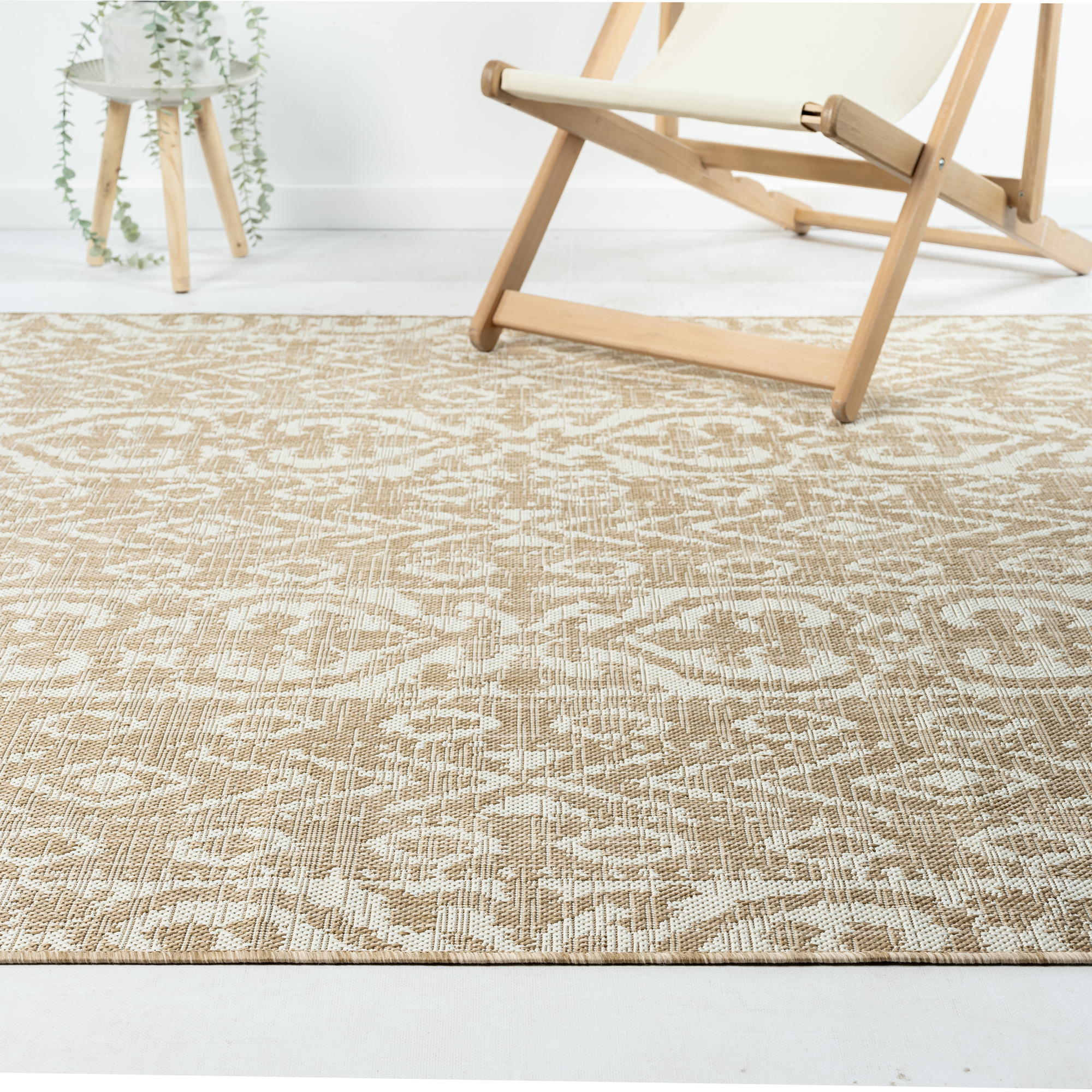 This indoor/outdoor area rug is the perfect addition to any home decor. It is powerloomed in Turkey using 100% Polypropylene, ensuring its durability and resistance to outdoor elements. Its intricate Ikat pattern in calming beige and ivory tones adds a sophisticated touch to any space. Whether it’s your living room, patio, or deck, this rug serves as a stylish centerpiece that complements contemporary, transitional, and eclectic interiors. With the combination of attractive look and practical features, this area rug is a must-have for any home.