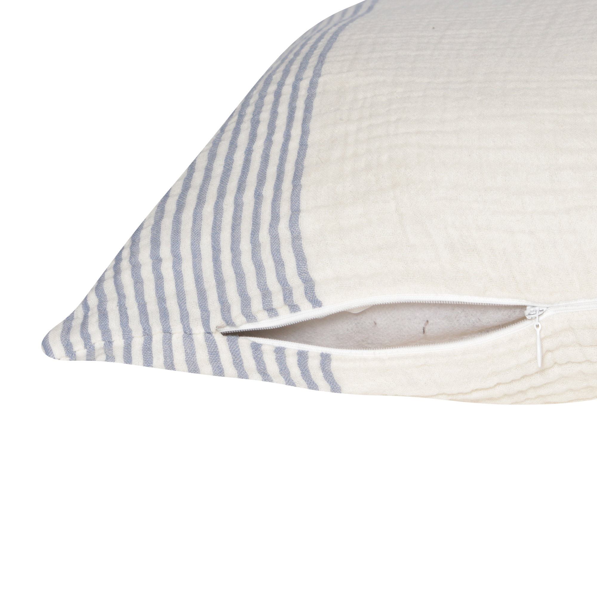 Transform your space with this cozy and stylish throw pillow cover, designed to enhance any home decor. Expertly machine-made for lasting quality and durability, it is crafted from 100% cotton for a soft and comfortable feel. The classic striped pattern adds a timeless touch, while the versatile design complements farmhouse, transitional, and casual interiors. Featuring soothing blue and ivory hues, this decorative pillow cover is perfect for adding charm and comfort to your living room, bedroom, or lounge area.