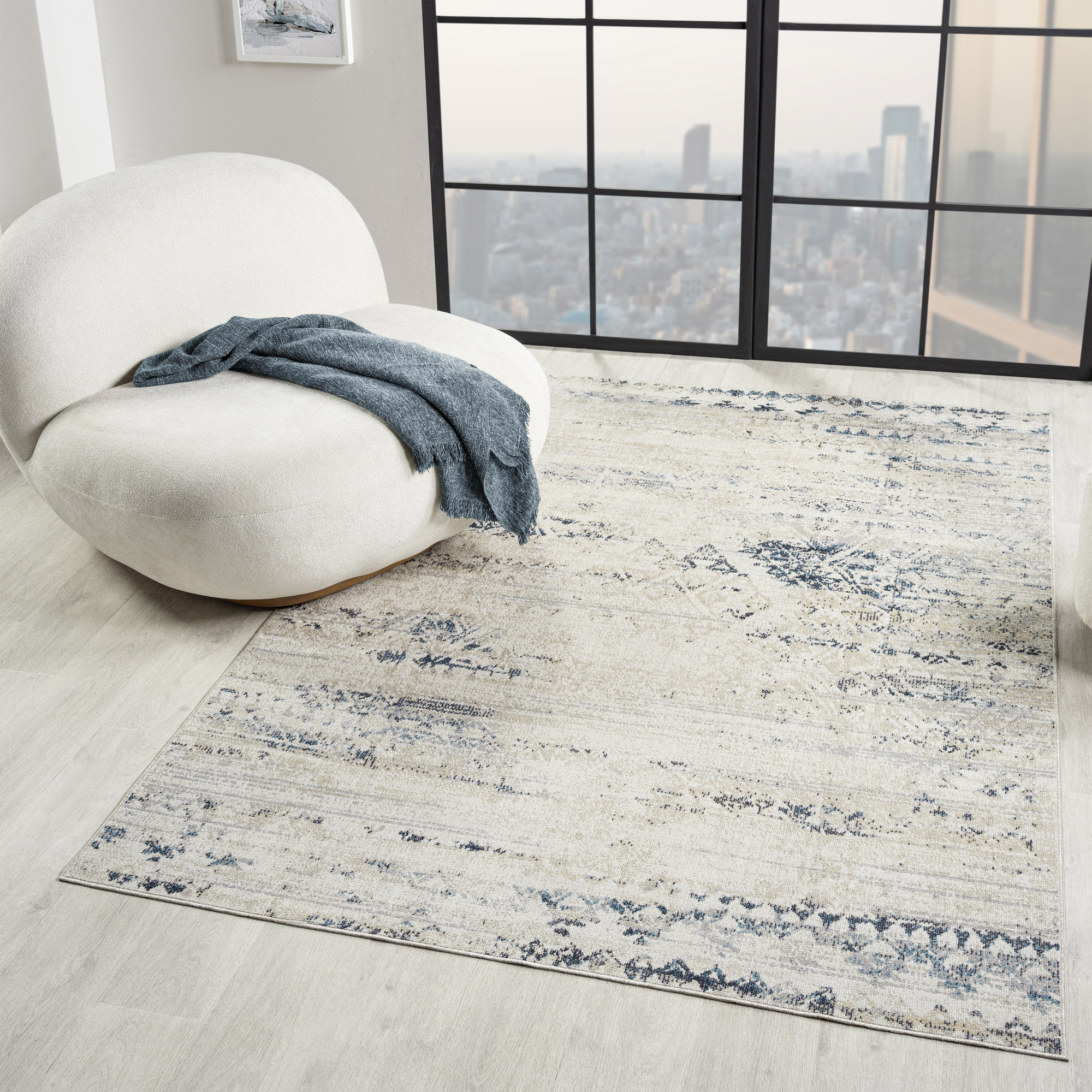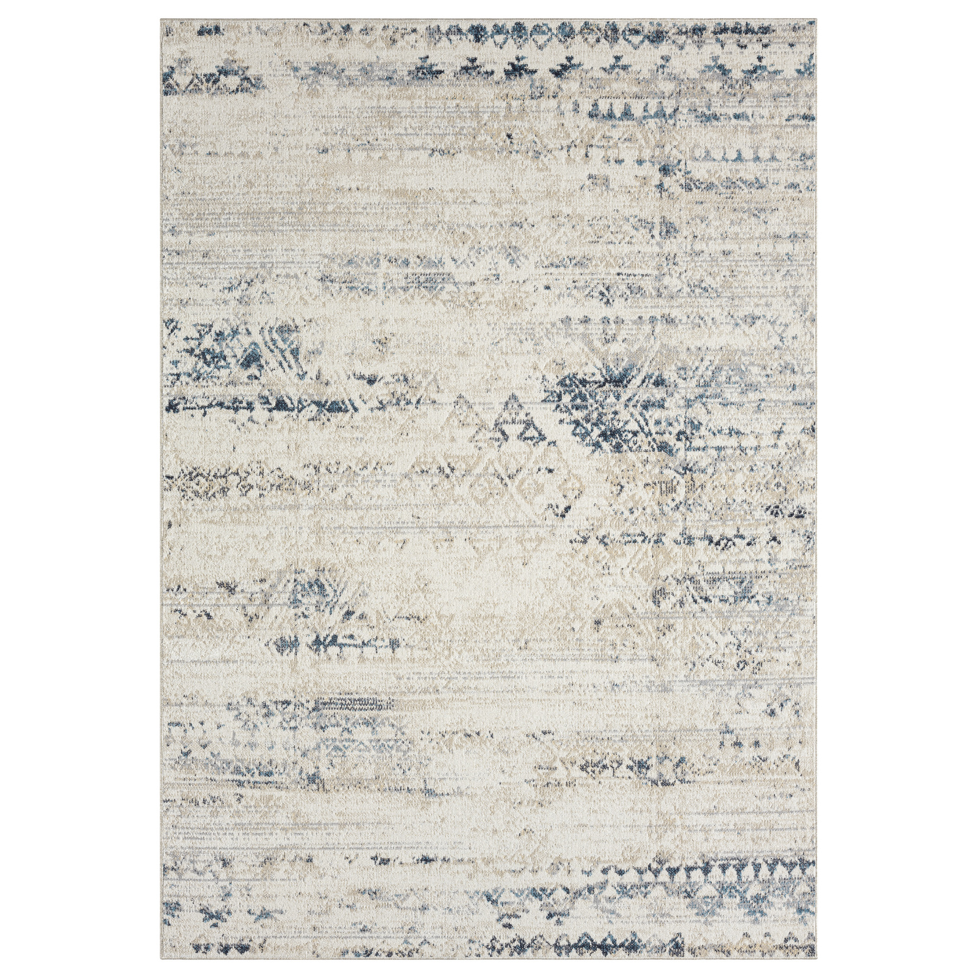 Introduce timeless elegance to your home with the Ivory/Blue Polyester Indoor Area Rug. Skillfully crafted by expert artisans in Turkey, this rug features a geometric and distressed pattern, blending classic and contemporary styles. Made from 100% polyester, it offers durability and a soft touch, perfect for any living space. The jute backing ensures stability, while the machine-washable design in cold water provides ease of maintenance. Ideal for traditional and transitional interiors, this versatile rug effortlessly enhances your decor with its intricate details and high-quality craftsmanship.