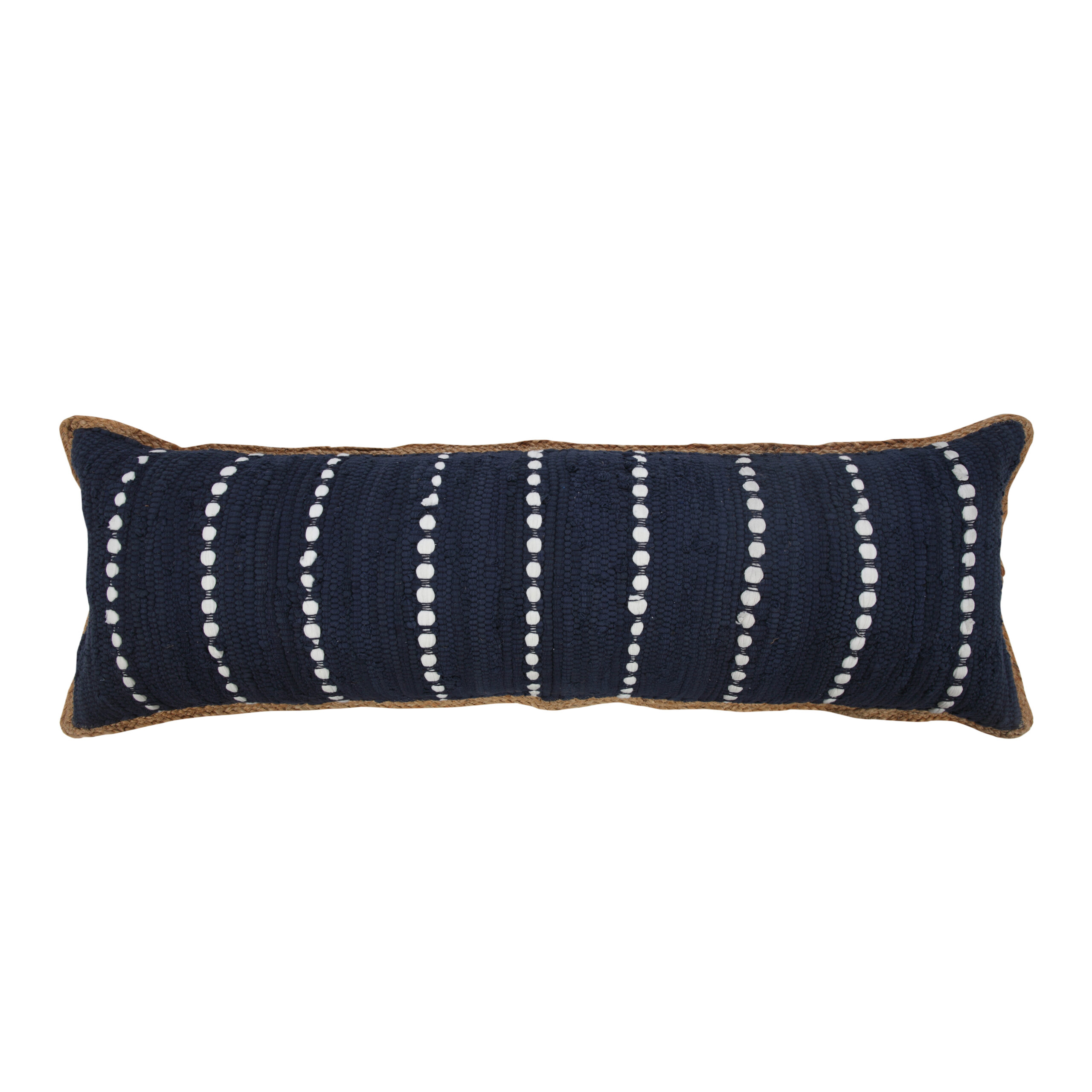 Designed to stand alone or layer with other accents, this throw pillow cover brings a new dimension of style to your space. This versatile accent merges well with multiple home decor styles from boho to modern to coastal to country chic. The natural jute trimmed border and classic interwoven stripe cotton center combine to be a textured treasure with a pop of color. Crafted with care in India, each throw pillow cover is unique with its very own individuality.