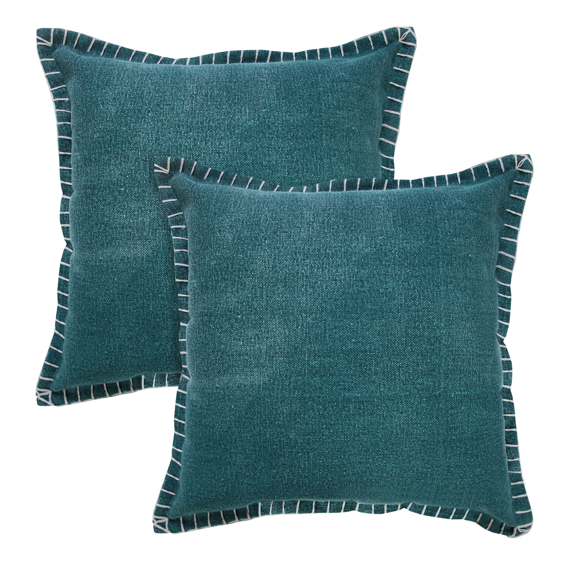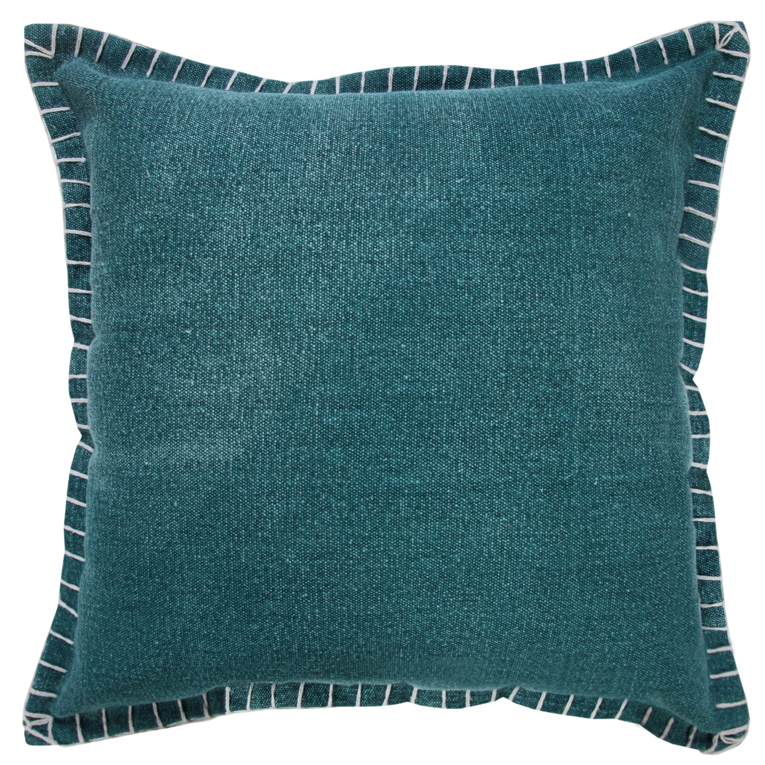 Designed with a balance of leisure and luxury in mind, this everyday embroidered edge throw pillow cover merges well with multiple decor styles from modern to farmhouse to bohemianism. This versatile pillow is a simple statement piece and an easy addition to any collection with its distressed solid stonewash fabric front and detailed whipstitch embroidered border. Set a fashionable foundation while maintaining philosophies of affordability and hand-crafted quality.