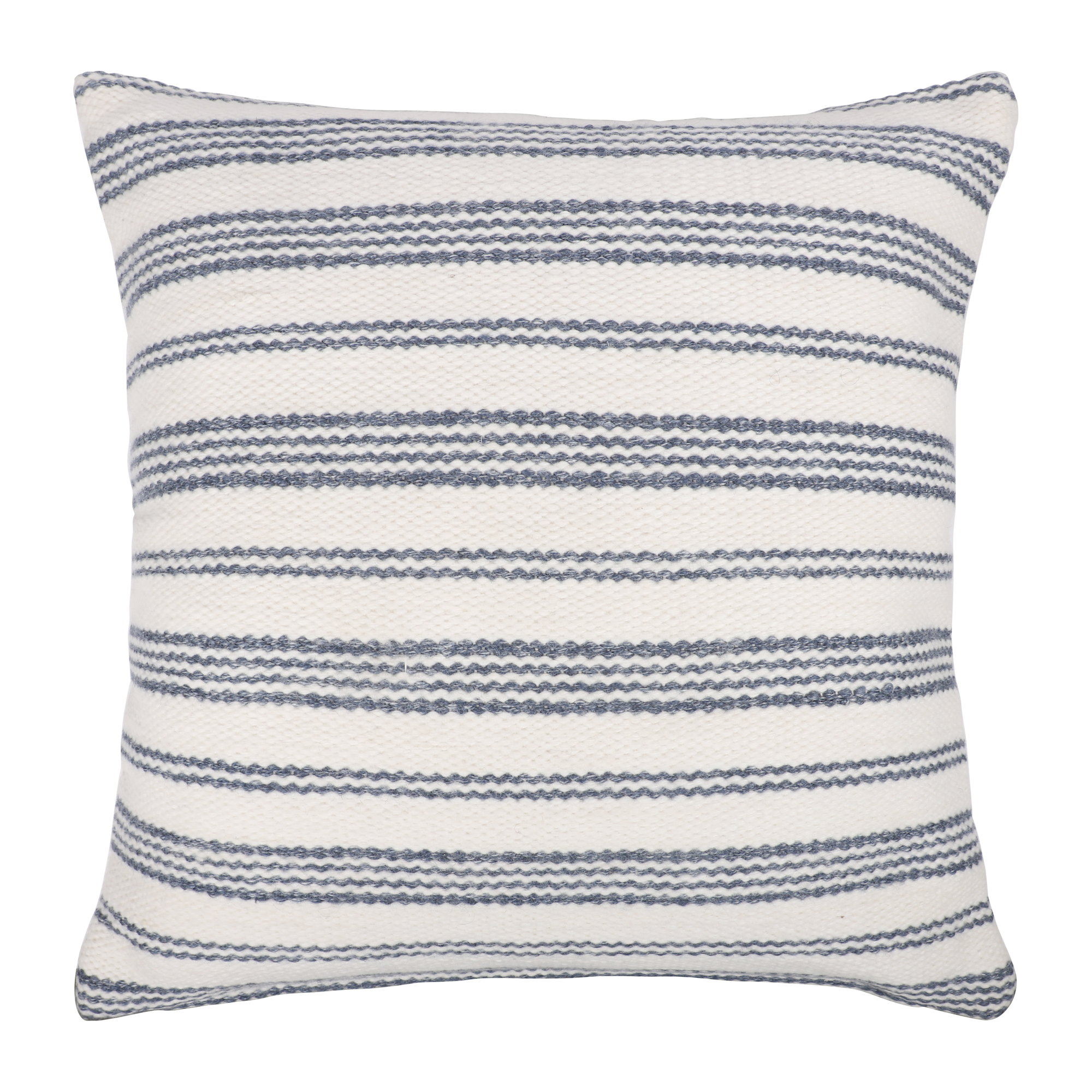Meticulously hand-woven in India, this cover embodies both craftsmanship and environmental responsibility. Crafted from 100% recycled P.E.T., it not only reflects eco-friendly practices but also provides a durable and weather-resistant solution for both indoor and outdoor use. The striped design in navy and white hues seamlessly fuses farmhouse and coastal aesthetics, adding a touch of nautical charm to your surroundings. This versatile throw pillow cover, originating from India, serves as a decorative and accent piece, enhancing the appeal of your living space.