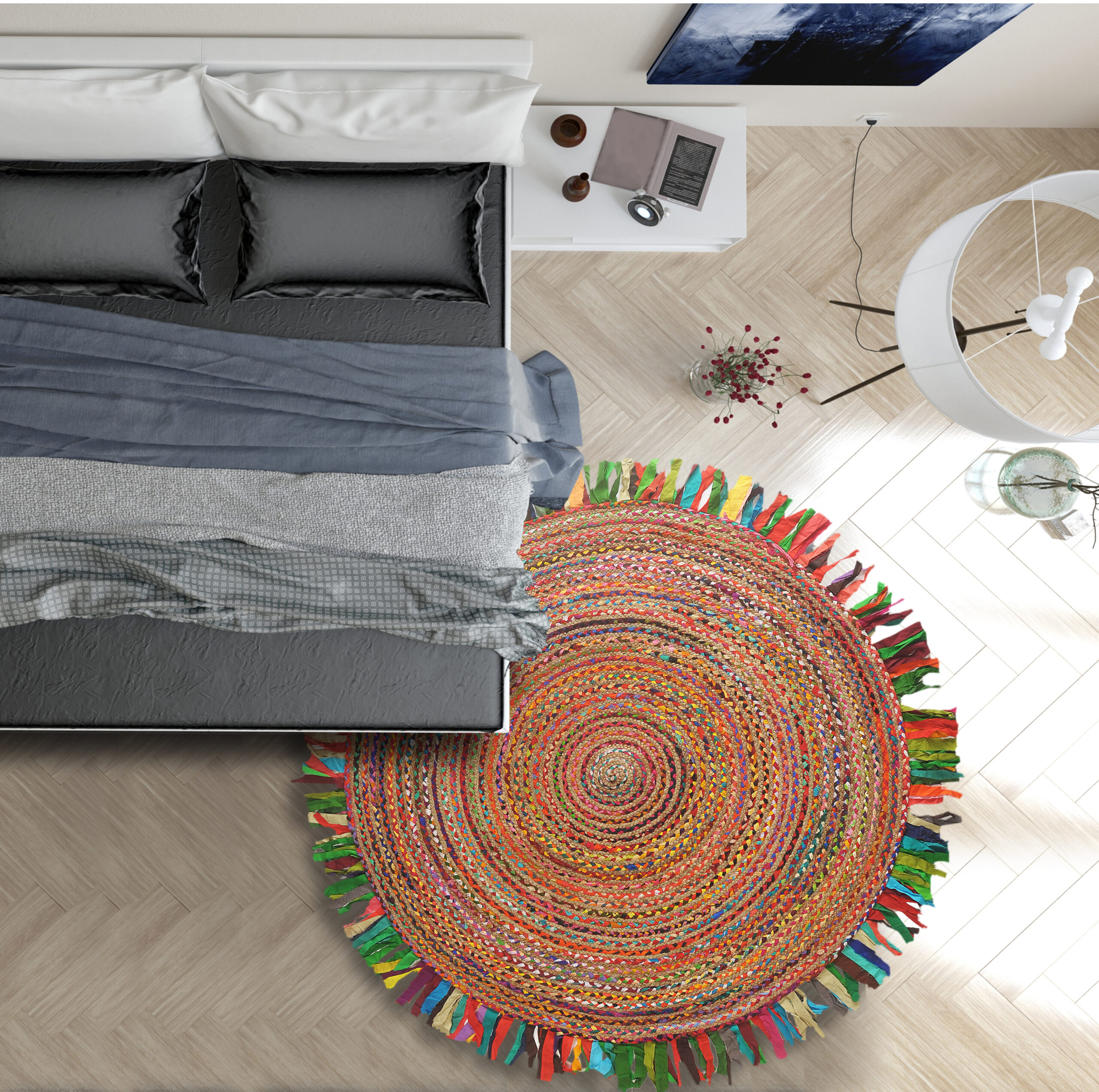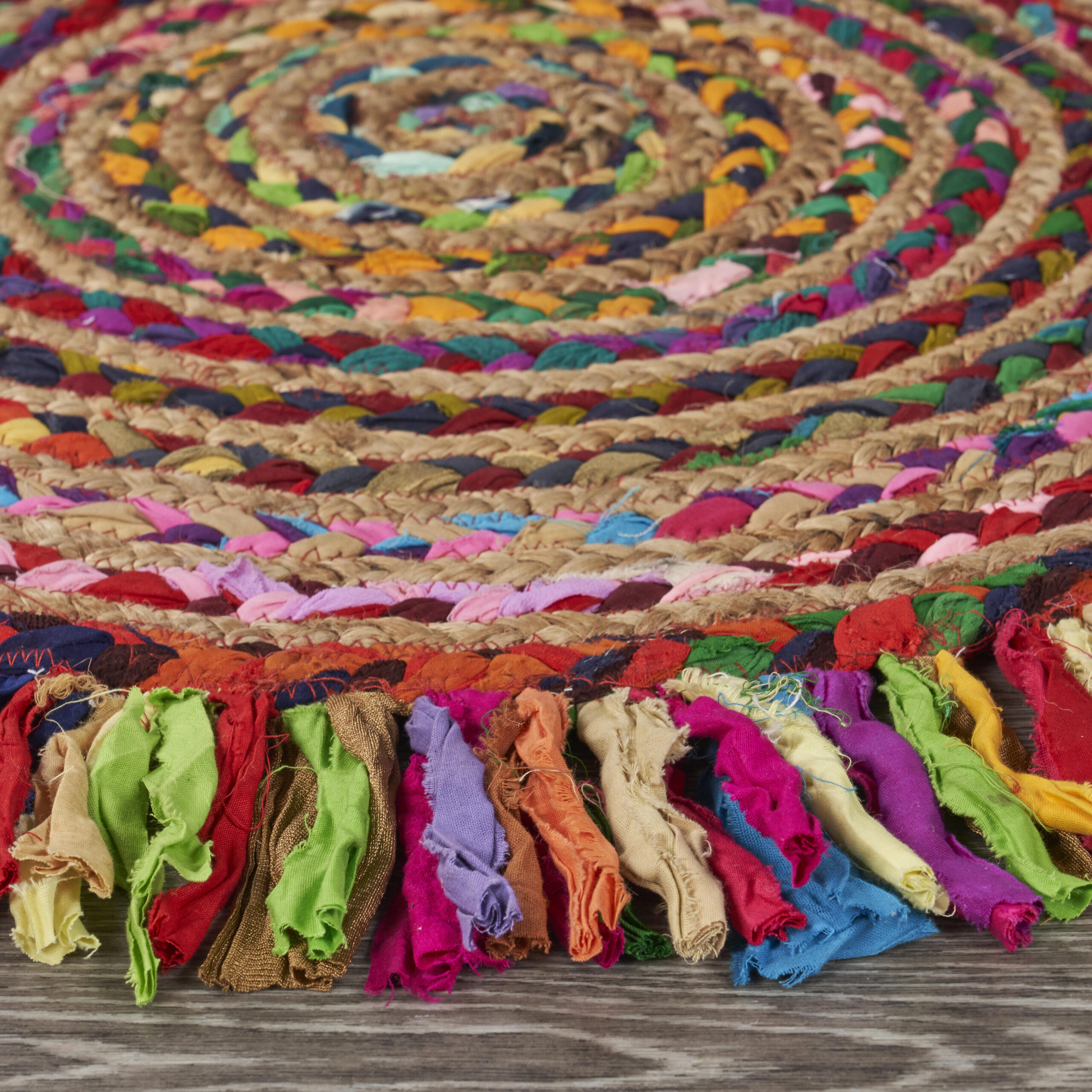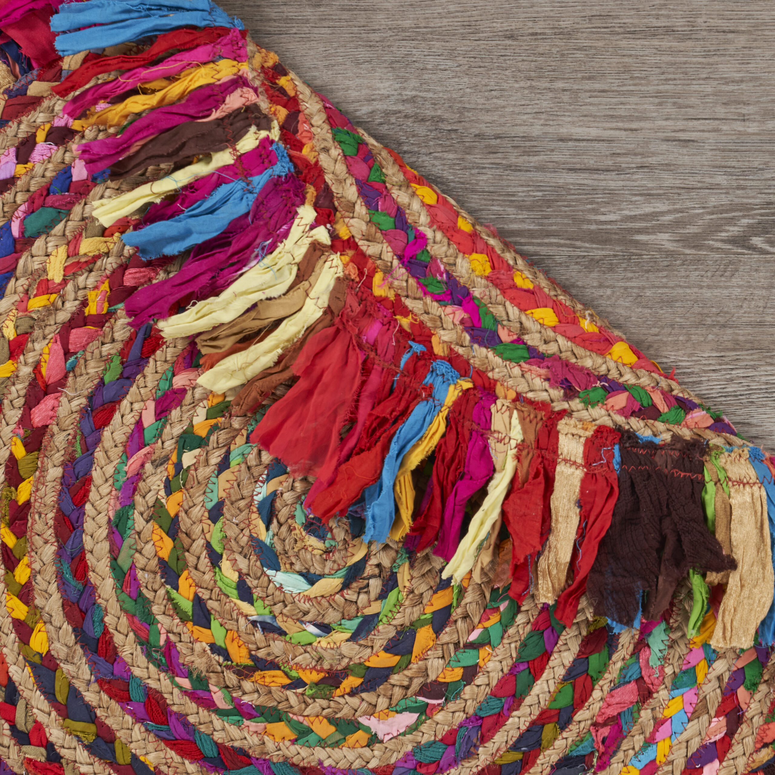 Bring a pop of color to your bohemian-themed space with this handwoven area rug. Made by skilled artisans in India, this rug features a blend of 60% cotton and 40% jute. The cotton fibers come in vibrant, eye-catching colors, while the natural brown jute fibers provide a contrasting earthy look. The weaving technique used in the creation of this rug adds texture and depth to its design, making it a unique and beautiful addition to your home. Soft underfoot, this rug provides a comfortable and cozy surface for your feet.