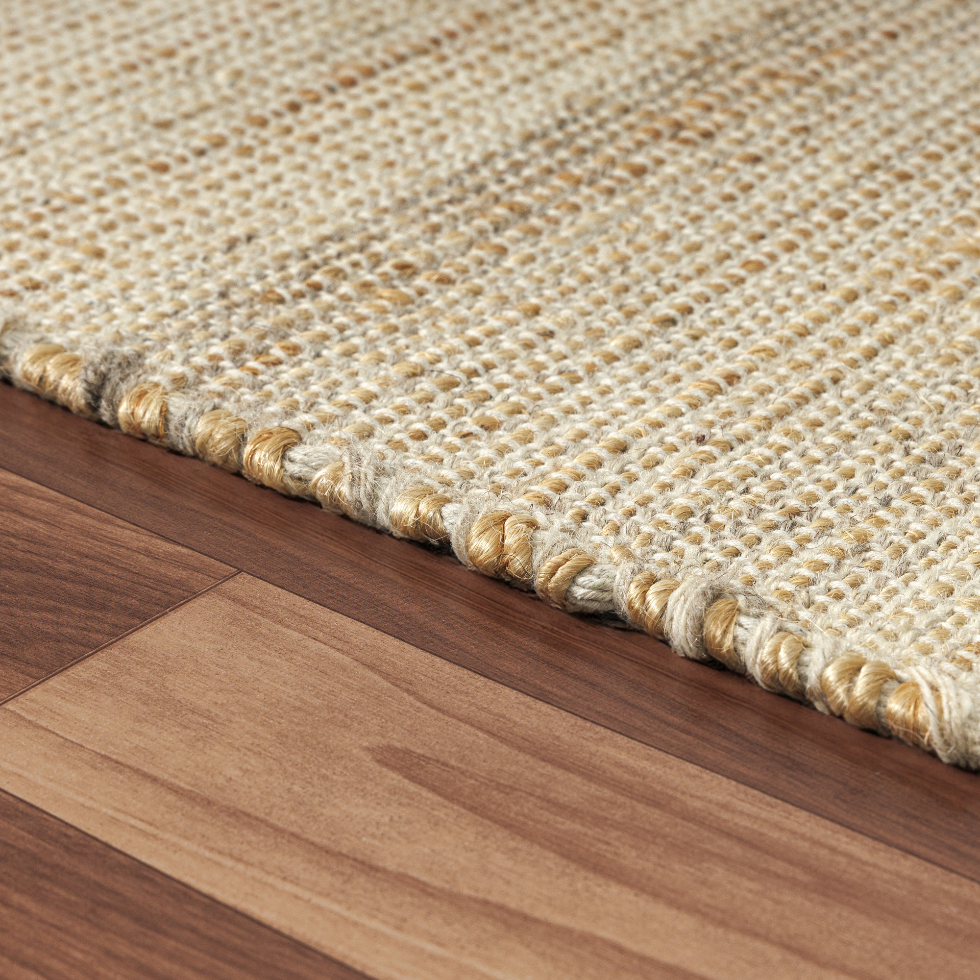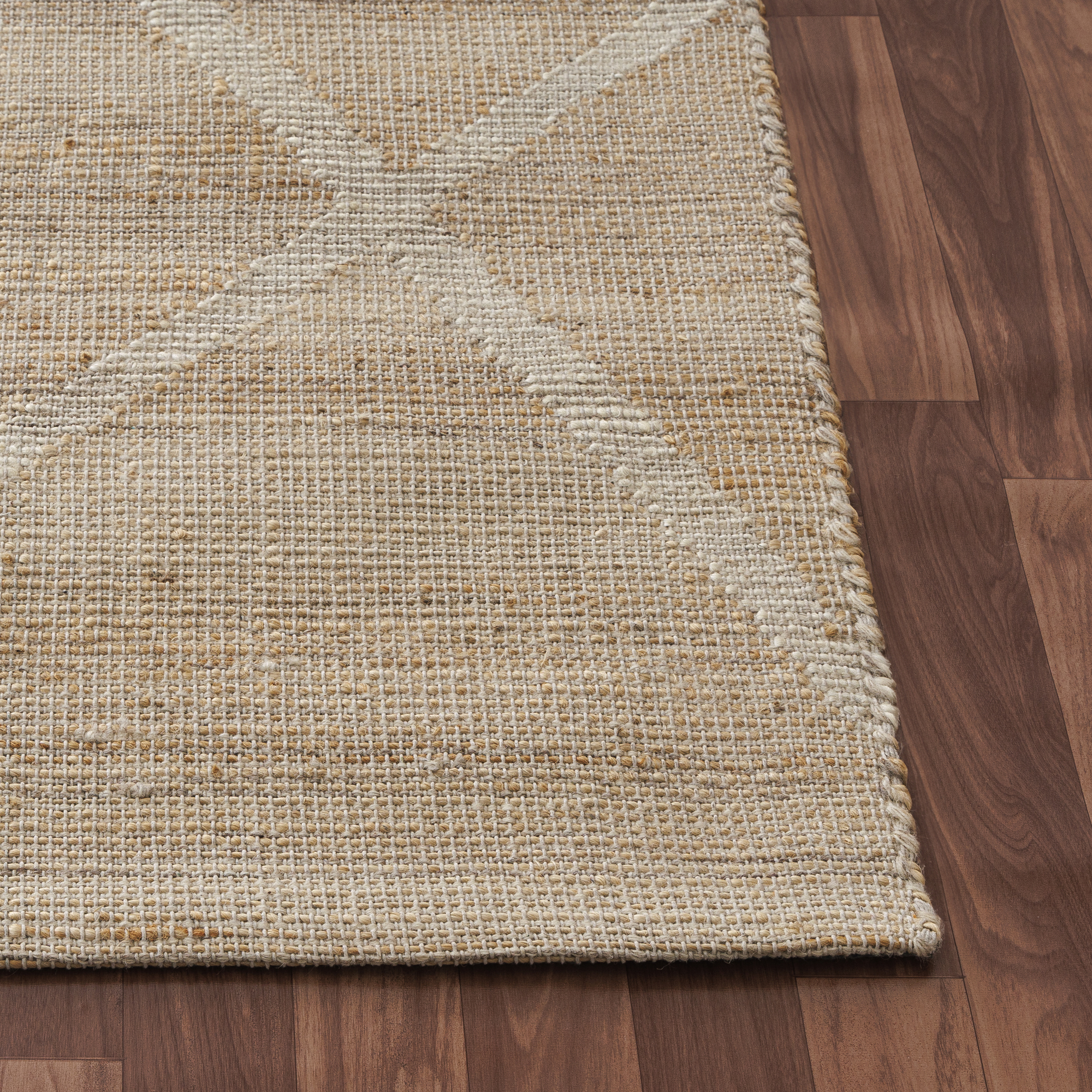 Elevate your home decor with the Hand-Woven Indoor Area Rug. Expertly crafted in India, this rug features a luxurious blend of 65% jute, 15% wool, and 20% cotton, with a durable cotton backing. The hand-woven construction ensures quality and uniqueness in every piece. Its transitional and casual modern style, adorned with an abstract geometric pattern, seamlessly fits any contemporary setting. Ideal for indoor use, this versatile rectangular rug combines beauty and functionality. Spot clean as needed to maintain its pristine look. Perfect for adding texture and warmth to your living space, this rug is a must-have for those seeking a blend of elegance and comfort.