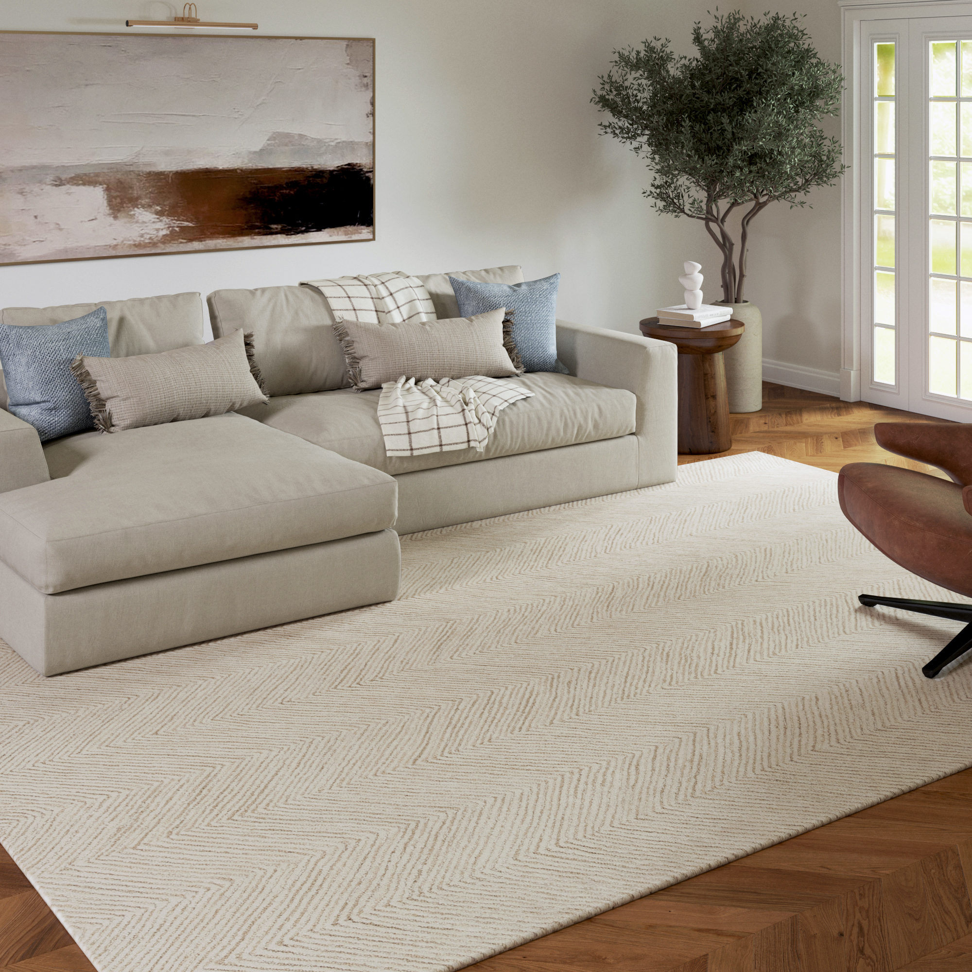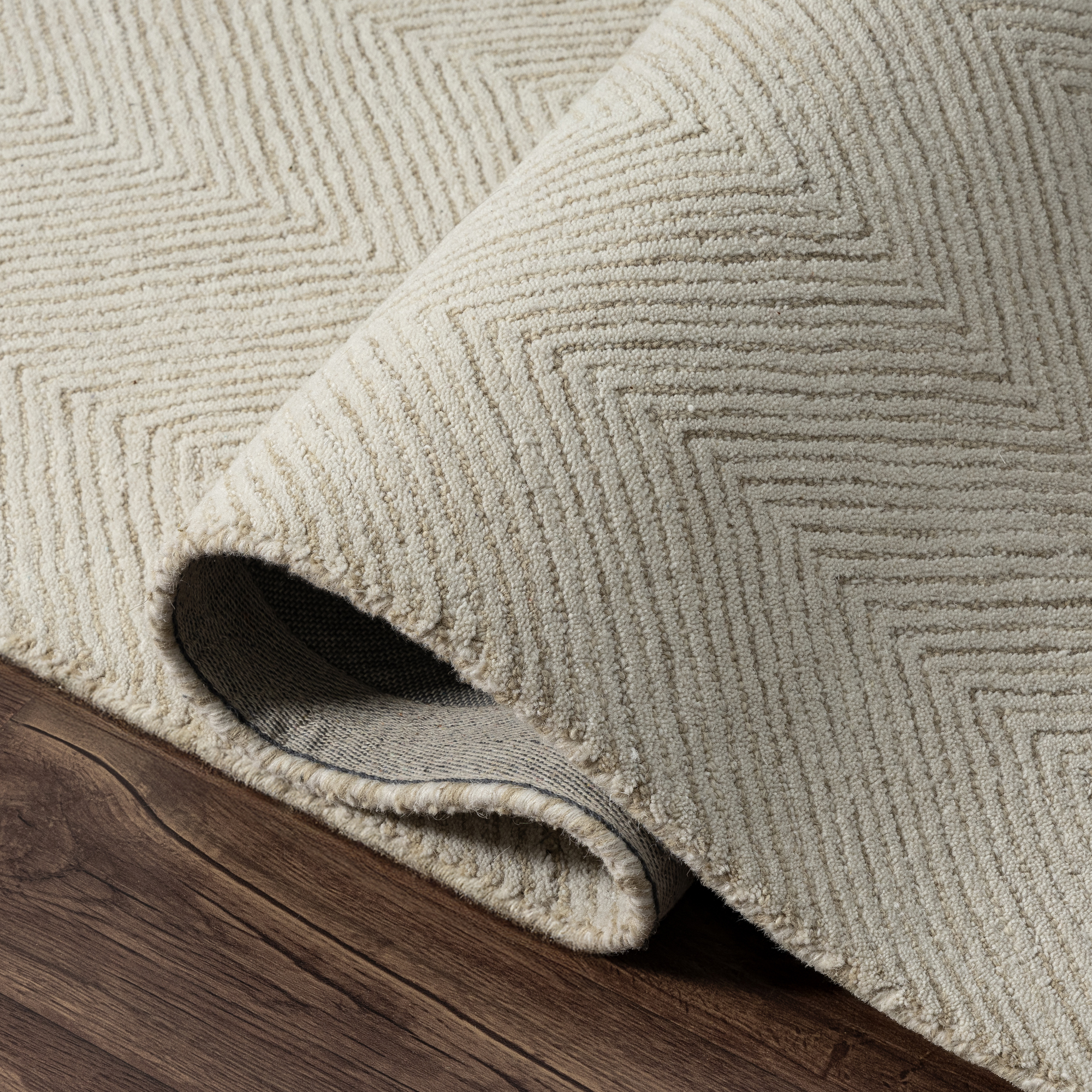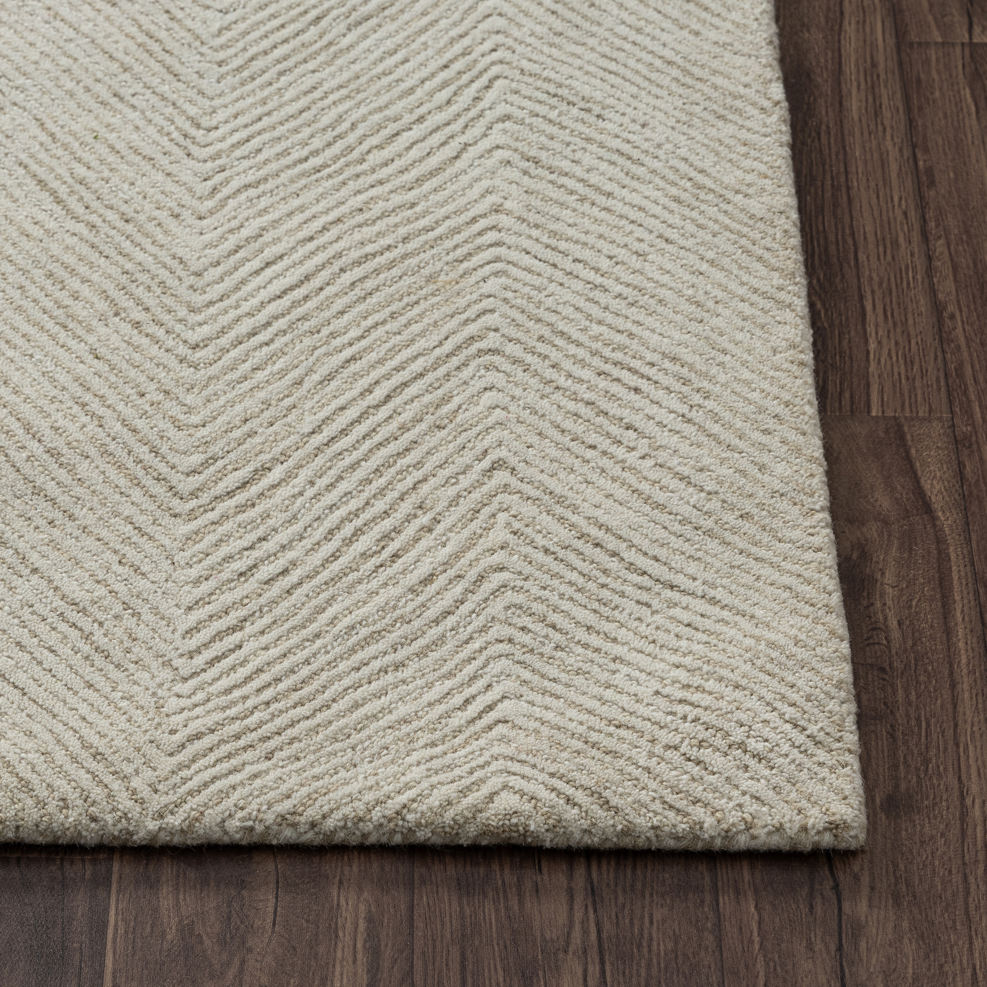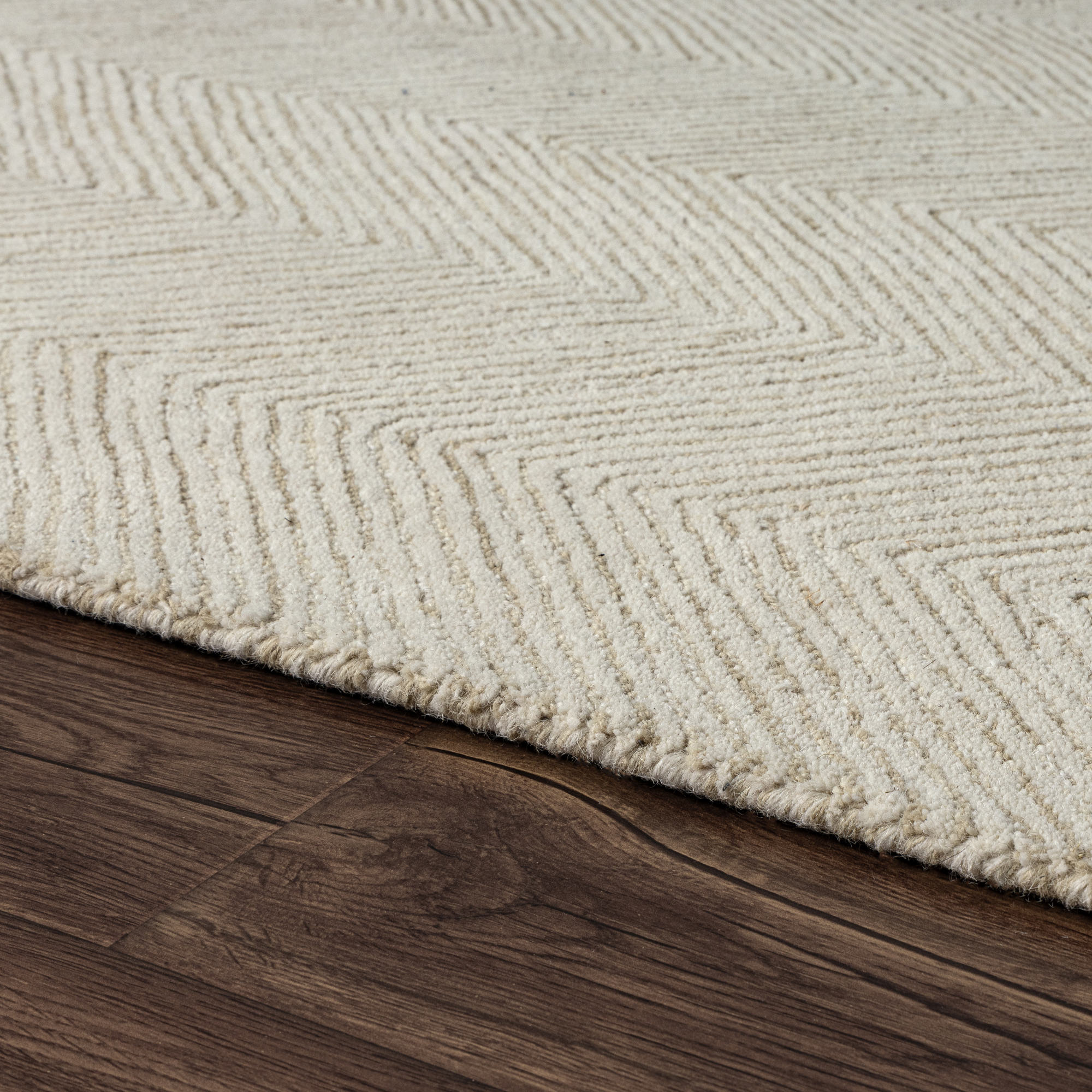 A bold chevron stripe design in shades of blue and ivory adds visual movement and coastal charm to this rug, making it a standout foundation for farmhouse, transitional, or contemporary interiors. Each rug is handmade using traditional techniques out of 100% wool fibers with a cotton backing, creating a high-end design without sacrificing comfort or durability. The 5′ x 7’9″ size makes it ideal for living rooms, home offices, or bedrooms and all ages for kids and adults alike. The resilient wool and hand-tufted construction ensure that this rug maintains its shape and appearance for years to come. Perfect for anyone seeking a durable, elegant, and versatile indoor rug for your home, apartment, or dorm.