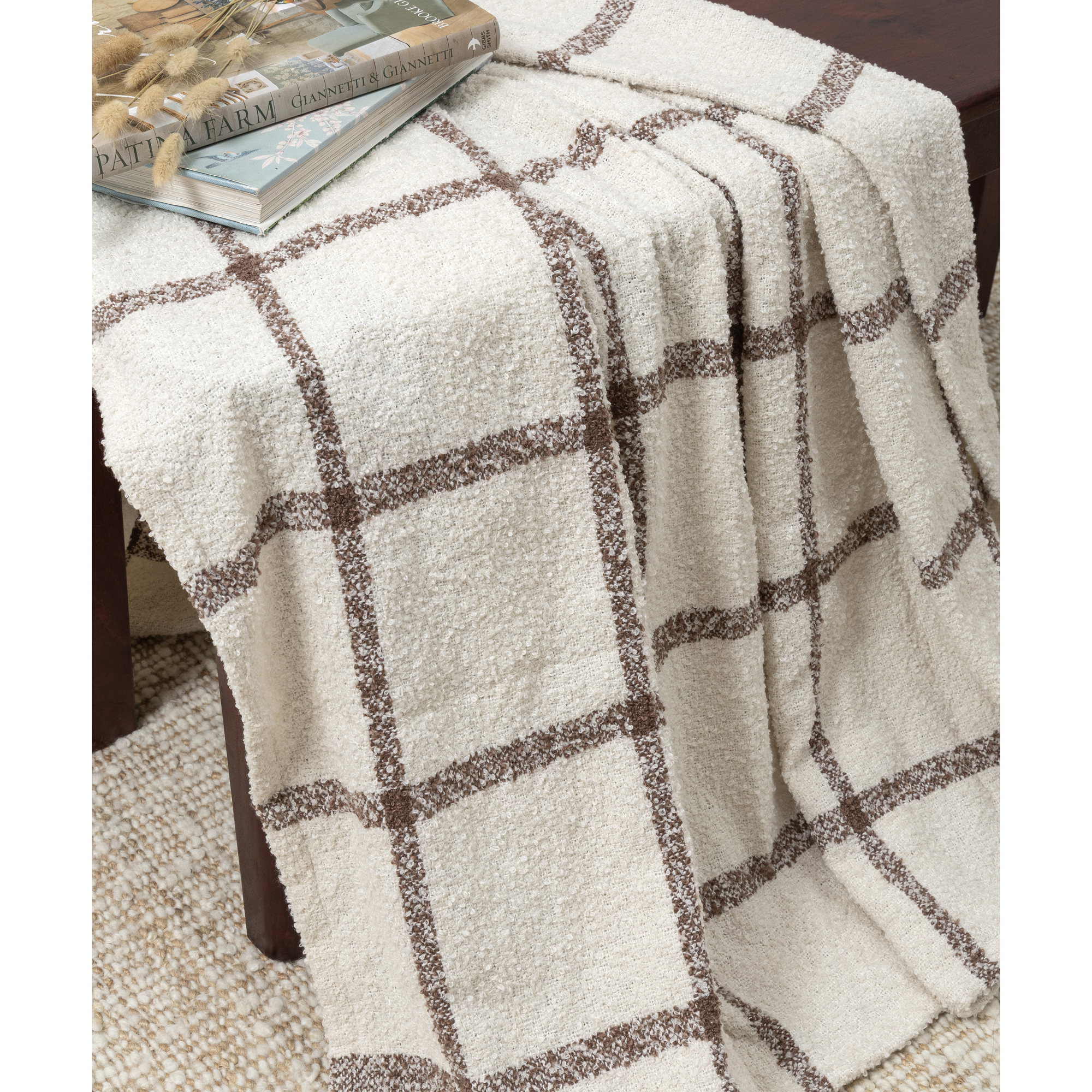 A classic checkered lattice design adds a timeless yet contemporary touch, making it a perfect accent for sofas, beds, and cozy reading nooks. Expertly crafted in India from 100% polyester, this throw is soft to the touch, durable, and designed for everyday comfort. Suitable for all ages, from kids to adults, this versatile piece enhances any transitional, casual, or farmhouse-style decor. The reversible design and delicate fringe detailing add an extra layer of charm, while its machine-washable construction ensures effortless maintenance.