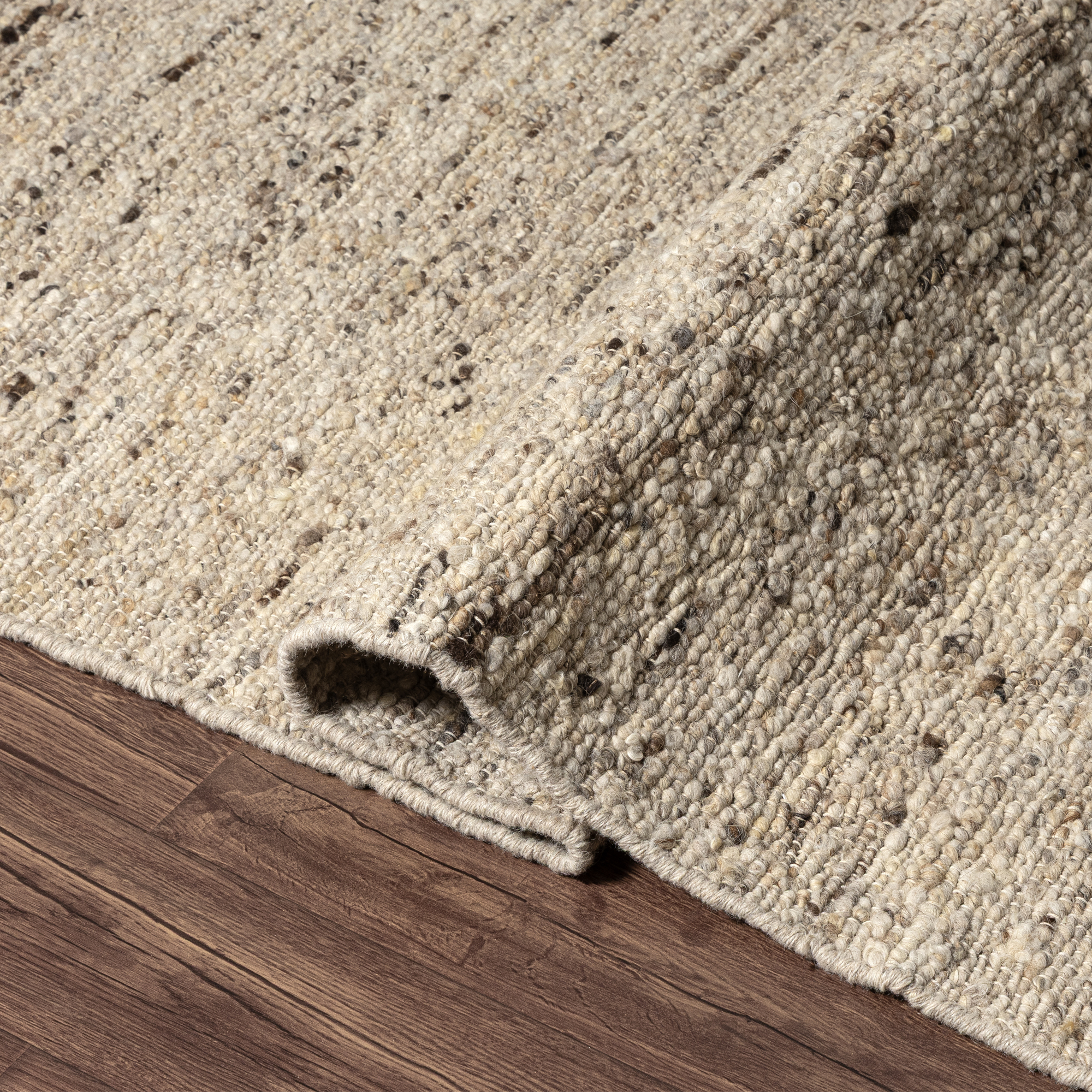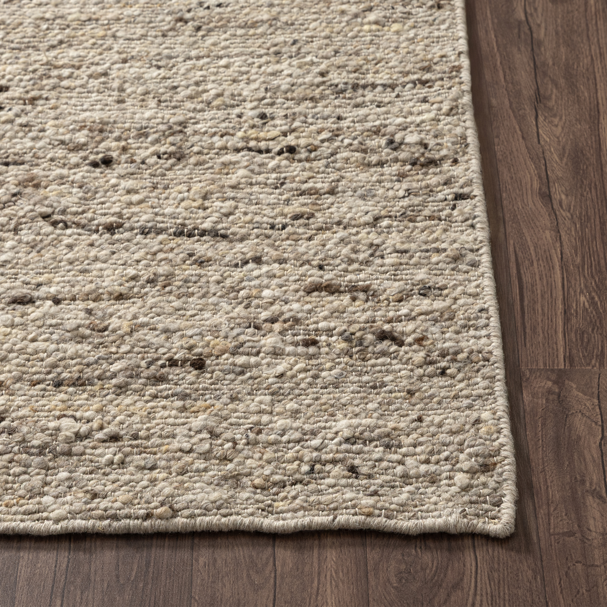 Transform your space with this hand-woven area rug that blends natural warmth with timeless sophistication. Woven with an abstract pattern of natural beige and brown that enhances its rustic appeal. The soft wool pile ensures both comfort underfoot and durability for everyday use in high-traffic areas. Perfect for adding a refined touch to living rooms, bedrooms, or home offices, this 5′ x 7’9″ rug blends rustic charm with lasting quality.