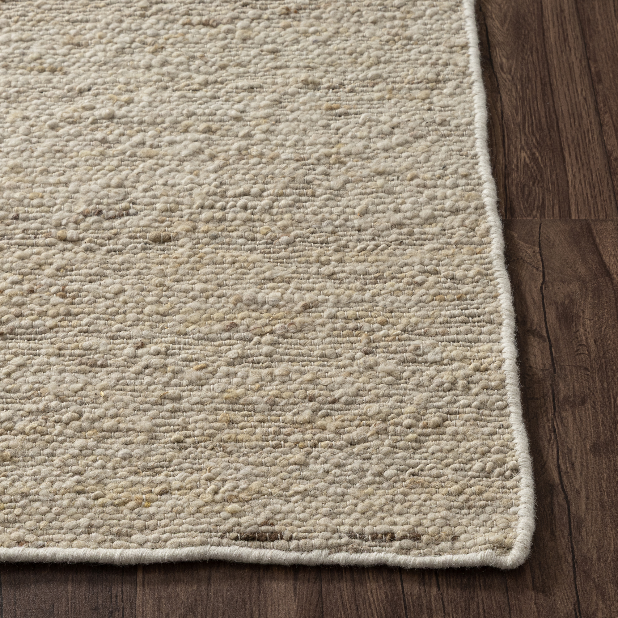 Transform your space with this hand-woven area rug that blends natural warmth with timeless sophistication. Woven with an abstract pattern of natural beige and brown that enhances its rustic appeal. The soft wool pile ensures both comfort underfoot and durability for everyday use in high-traffic areas. Perfect for adding a refined touch to living rooms, bedrooms, or home offices, this 5′ x 7’9″ rug blends rustic charm with lasting quality.